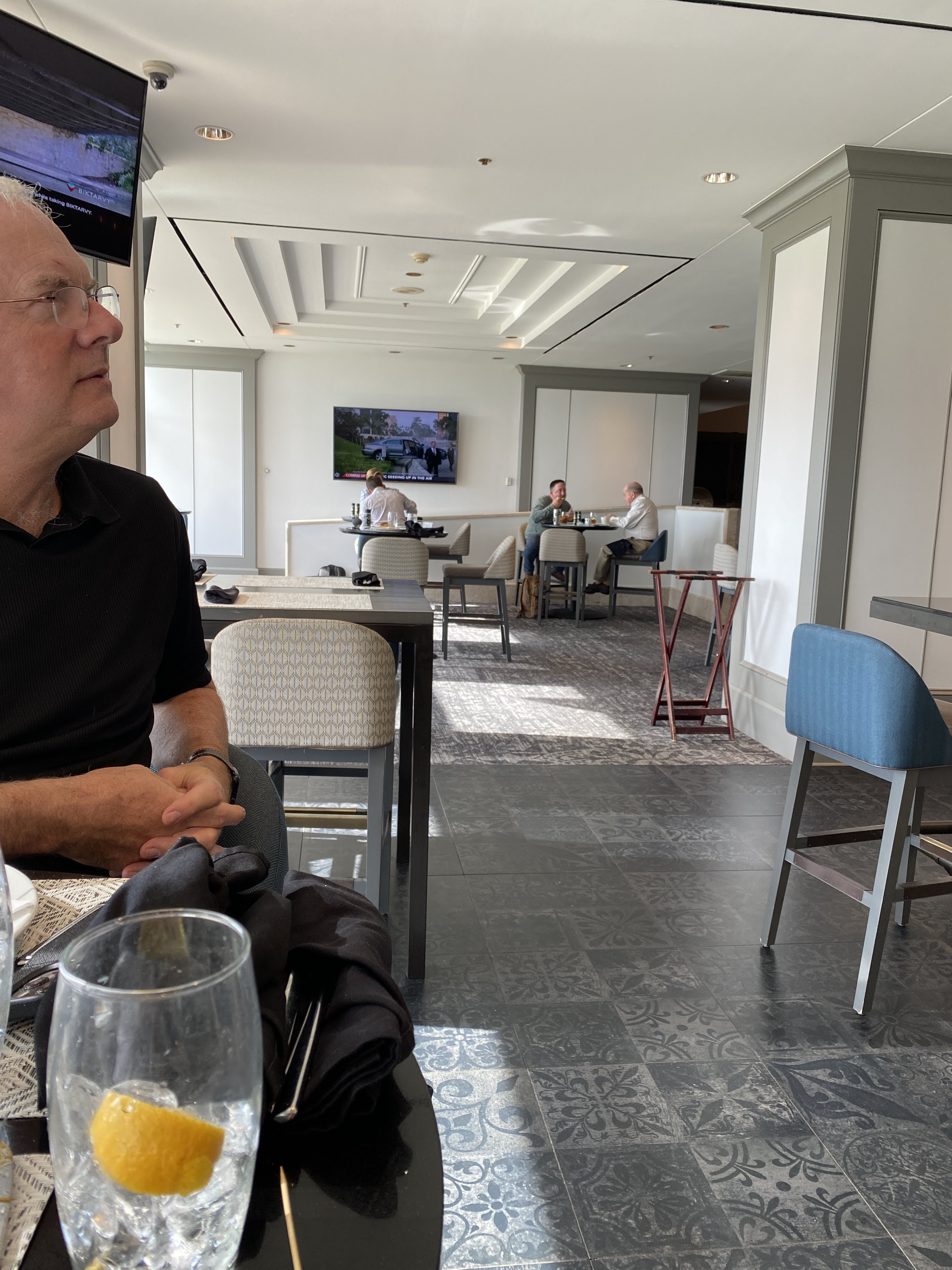 We arrived in Atlanta at 11am, got our luggage and took a taxi to the Renaissance Hotel, facing the tarmac. We thought we would just stay in the room until our flight the next day and order room service. They told us that they had stopped room service since Covid started. We had to go have lunch and dinner downstairs surrounded with people with no masks. We found a quiet spot to eat and went back to our room.