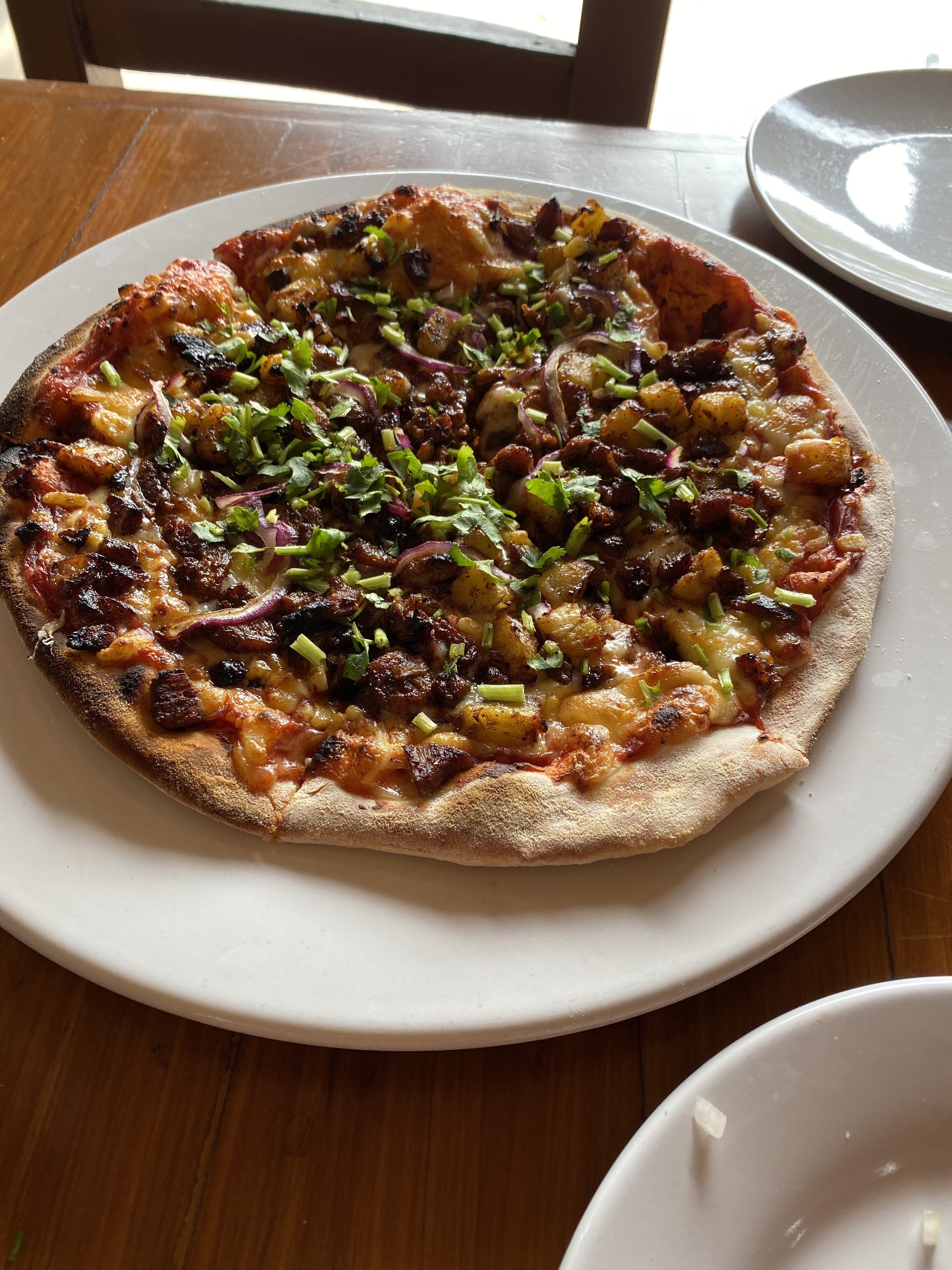 It wasn’t on the menu or being advertised but she told us that they would make some for us. They had to attach a huge propane tank to the pizza oven. We picked a pastor pizza made with marinated adobo pork, pineapple, onions and fresh cilantro. So so good! The other was margherita which was also really good. As our eyes were bigger than our stomach, we had enough leftovers for dinner.