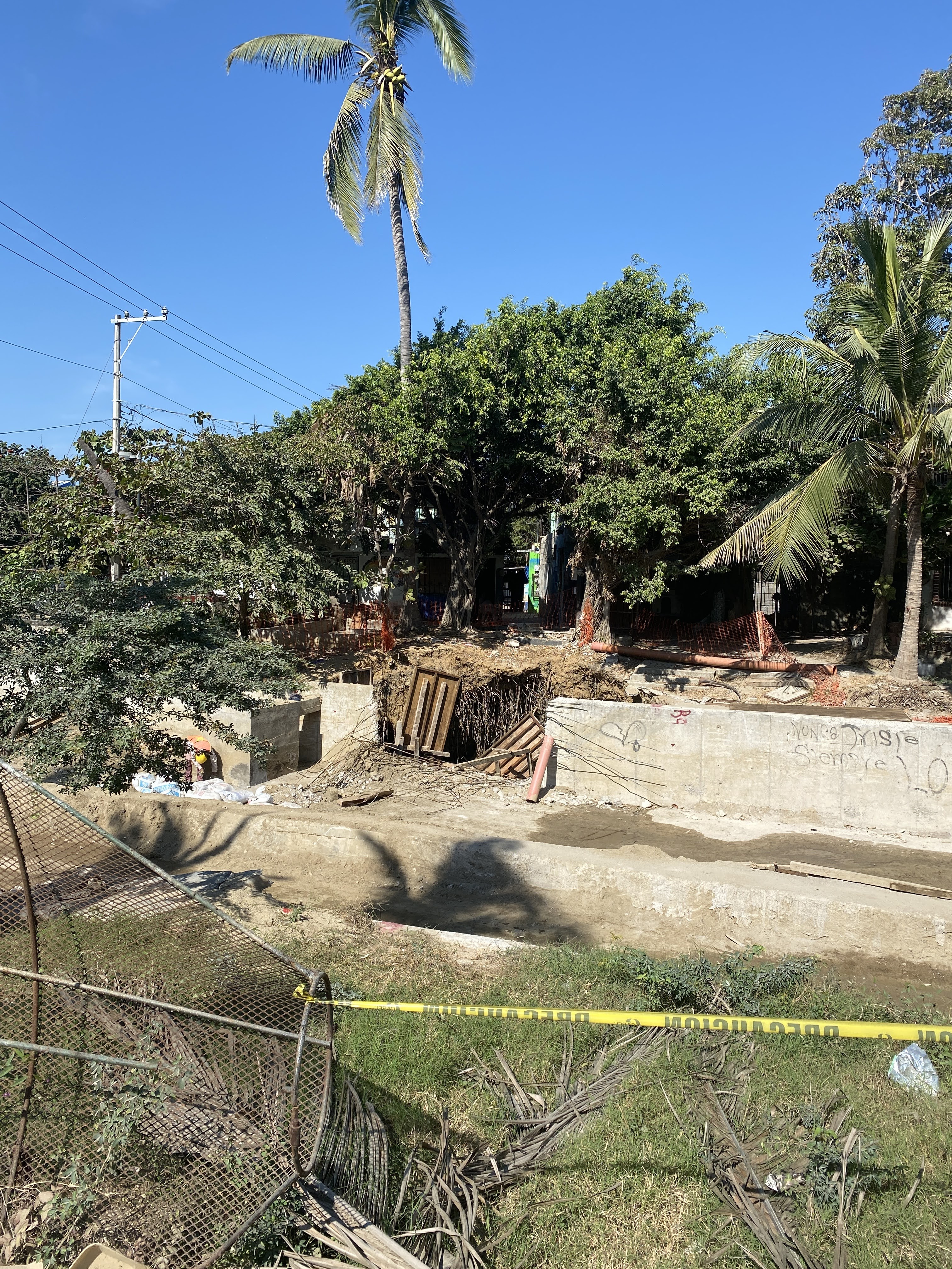 The kissing bridge which crossed from the new to the old side of Bucerias is also gone. They are working on the river bed and putting walls to contain the water and debris from when it is the rainy season. I heard they will eventually build it back but no one knows when it will happen.