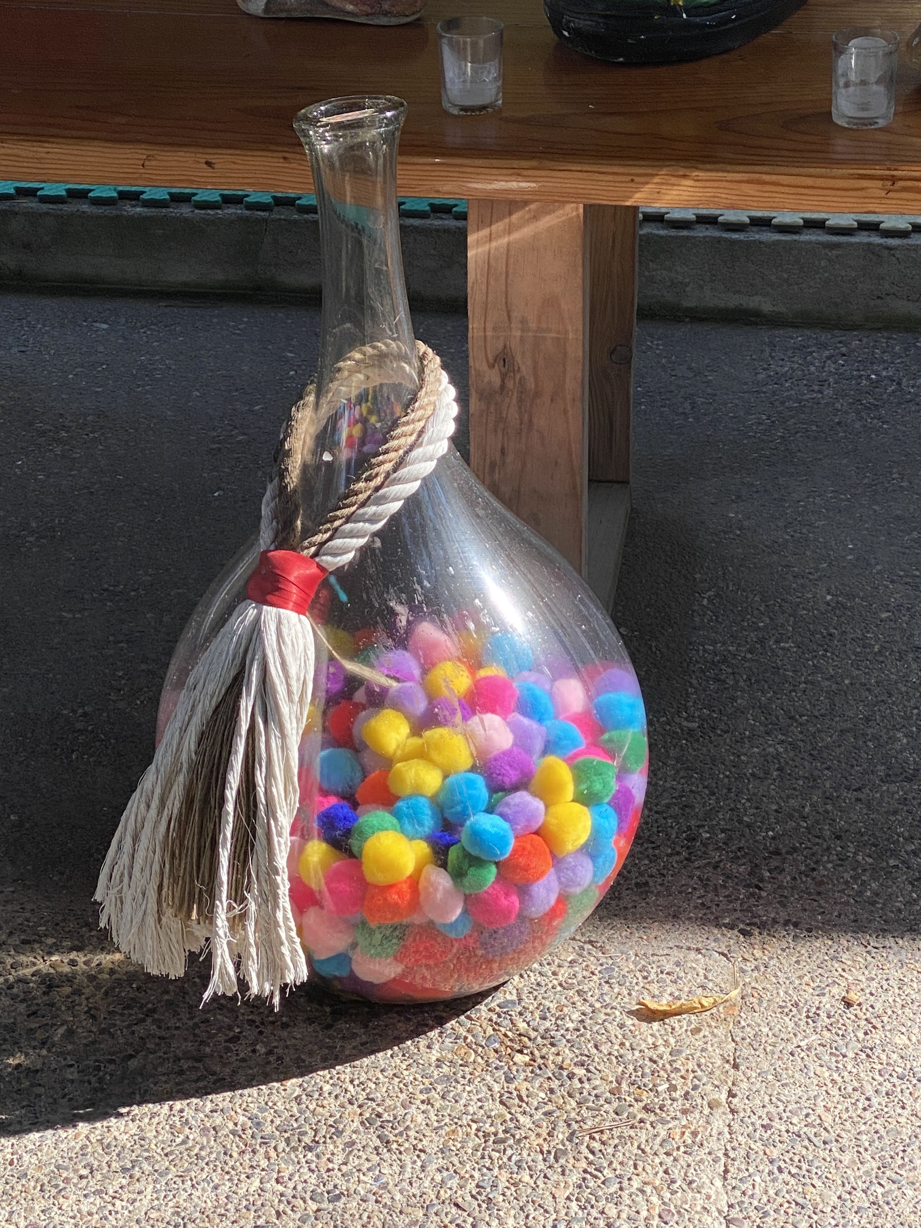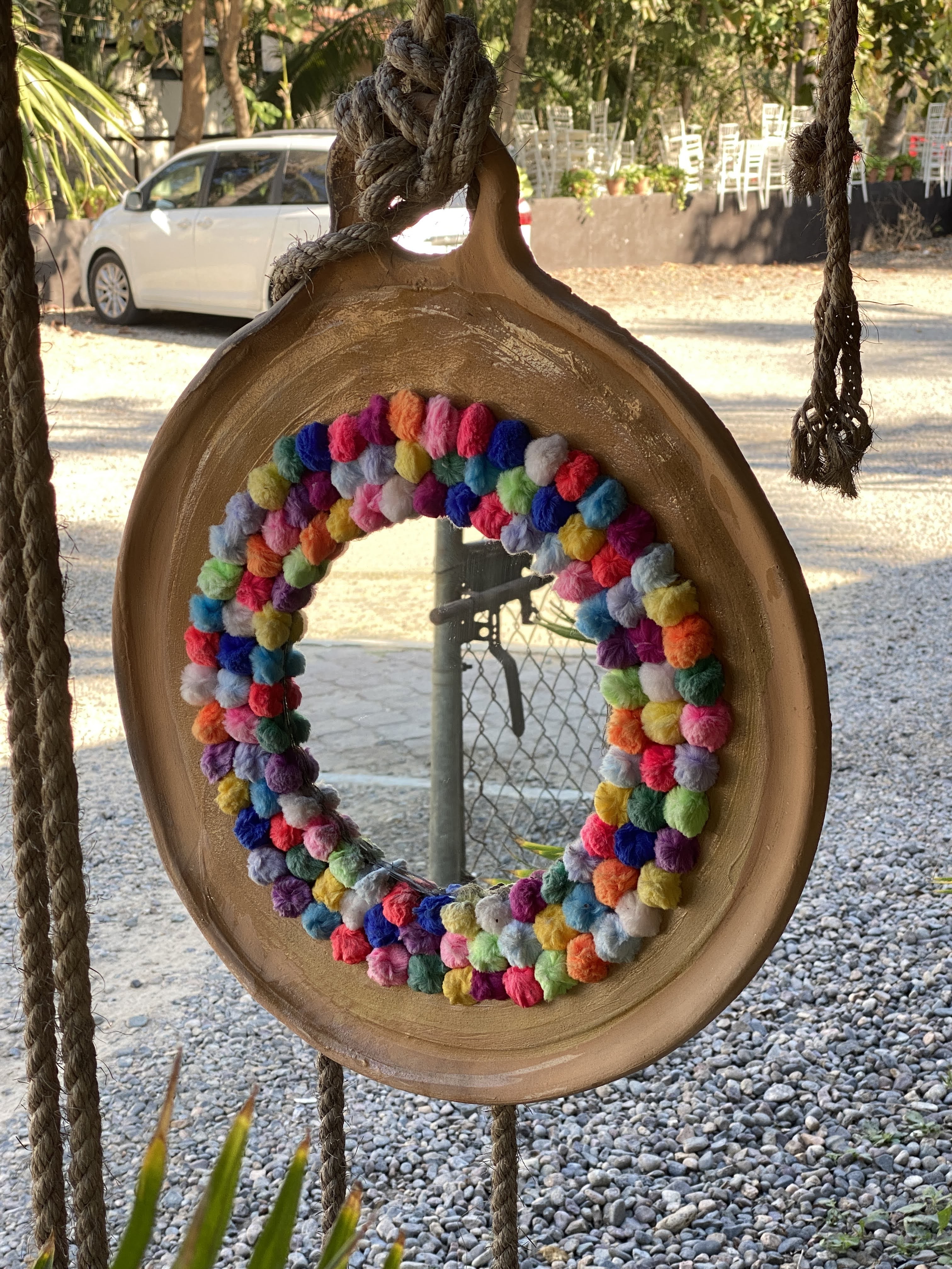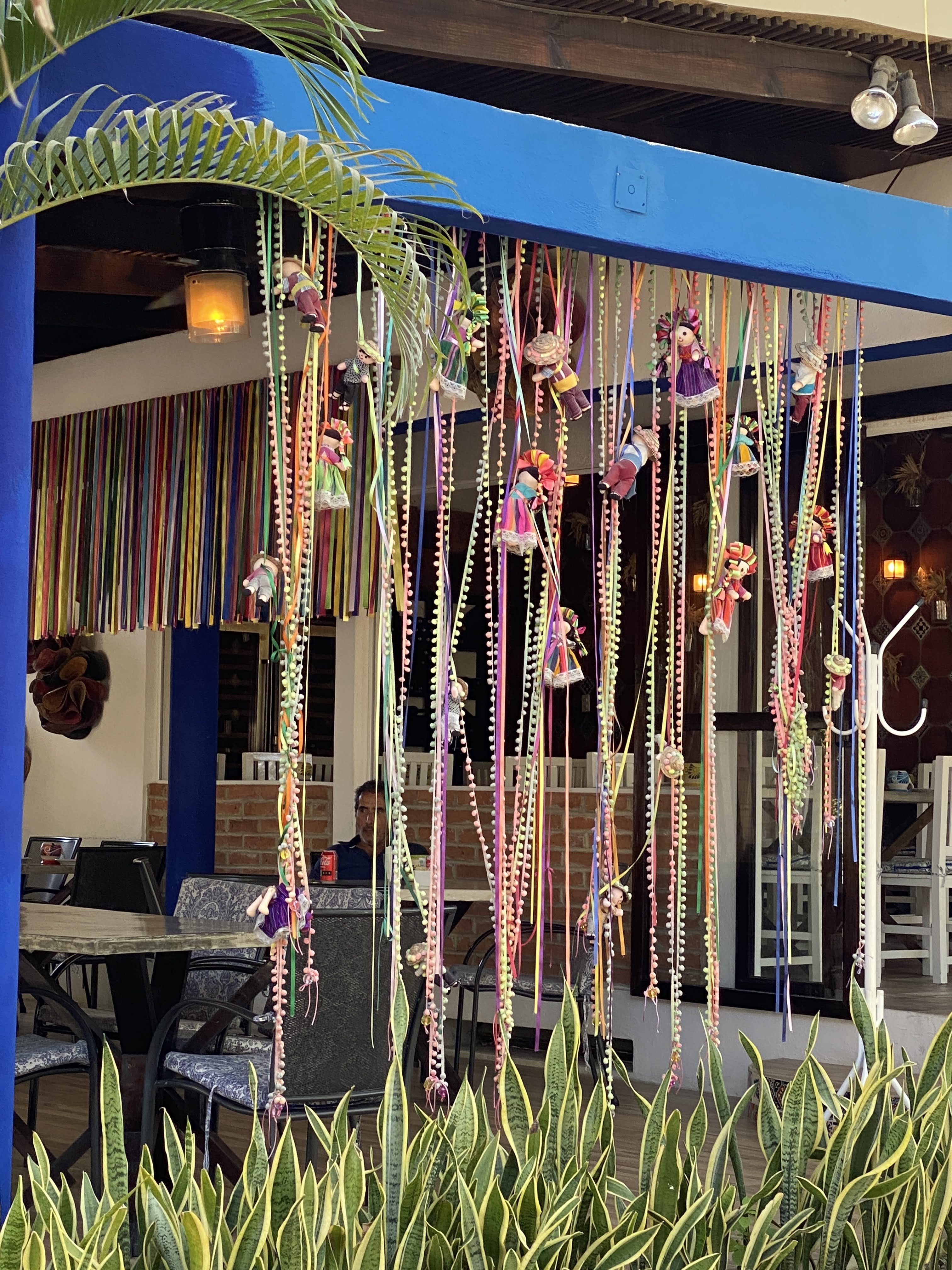 We continued our walk to Starbucks and stopped at Riviera Grill because I noticed their new decorations.  They had mirrors with pompoms, curtains with little Mexican dolls and big jars full of pompoms!  My faith is restored in humanity.