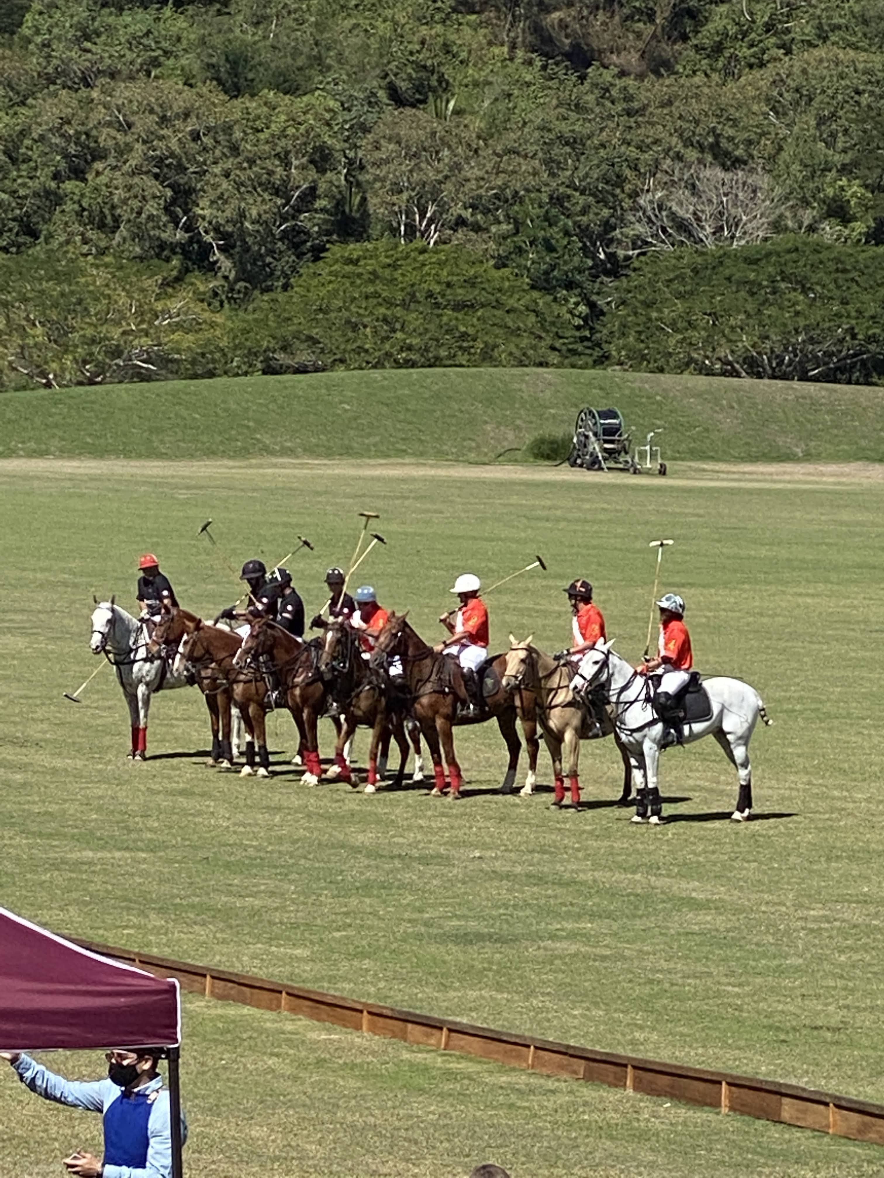 We took our friends to La Patrona Polo Club as they had never been. We arrived an hour earlier to show them the stables and also to have first pick at a table. Because of Covid, a few things had changed. They didn’t have the normal big buffet and bbq. Instead it was an à la carte menu. They also offered a new VIP section which consists of six canopies with a couch and 2 chairs, right by the field. For $175, normally $250, you get a bottle of champagne, cheese and meat, I assumed they meant charcuterie. The host told us that you still have a better view of the field by sitting on the 2nd floor of the building, which we did. The food was definitely not as good as before but the polo match was just as entertaining. At half time, we went on the field and we talked to a few polo players and learn a few more things about the game.
