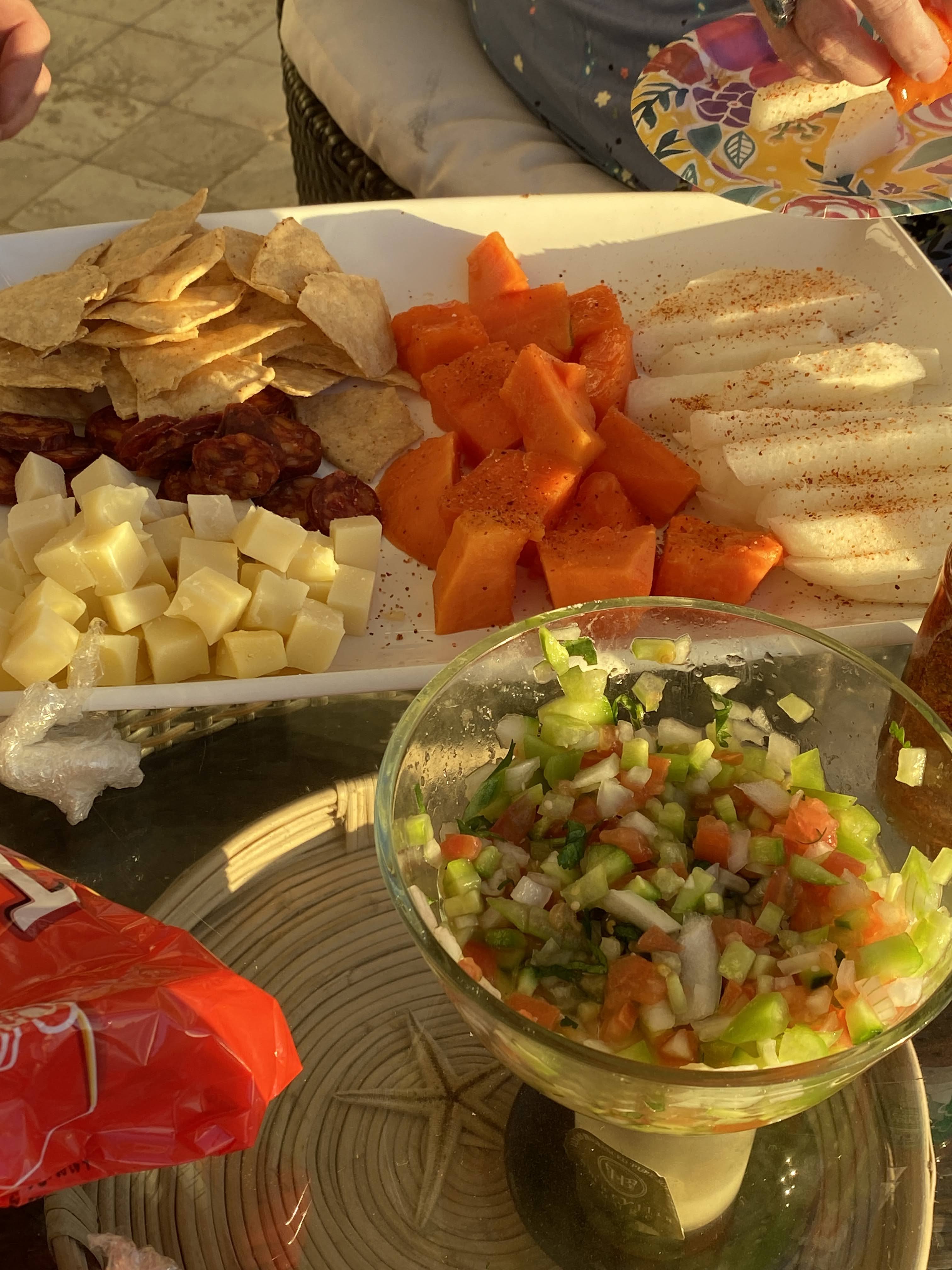 We got back home in time for the sunset. We caught up, had appetizers then dinner on the balcony.