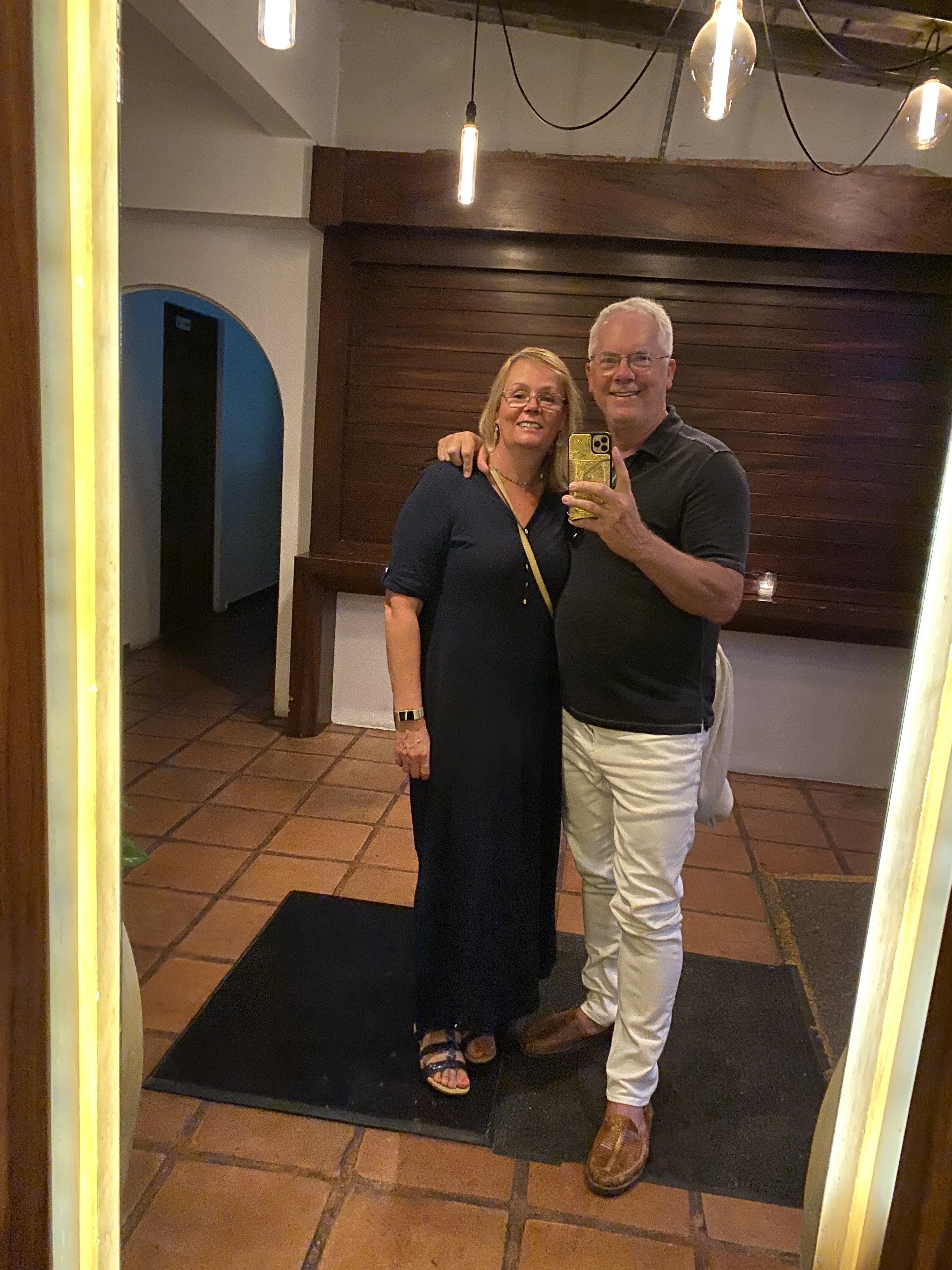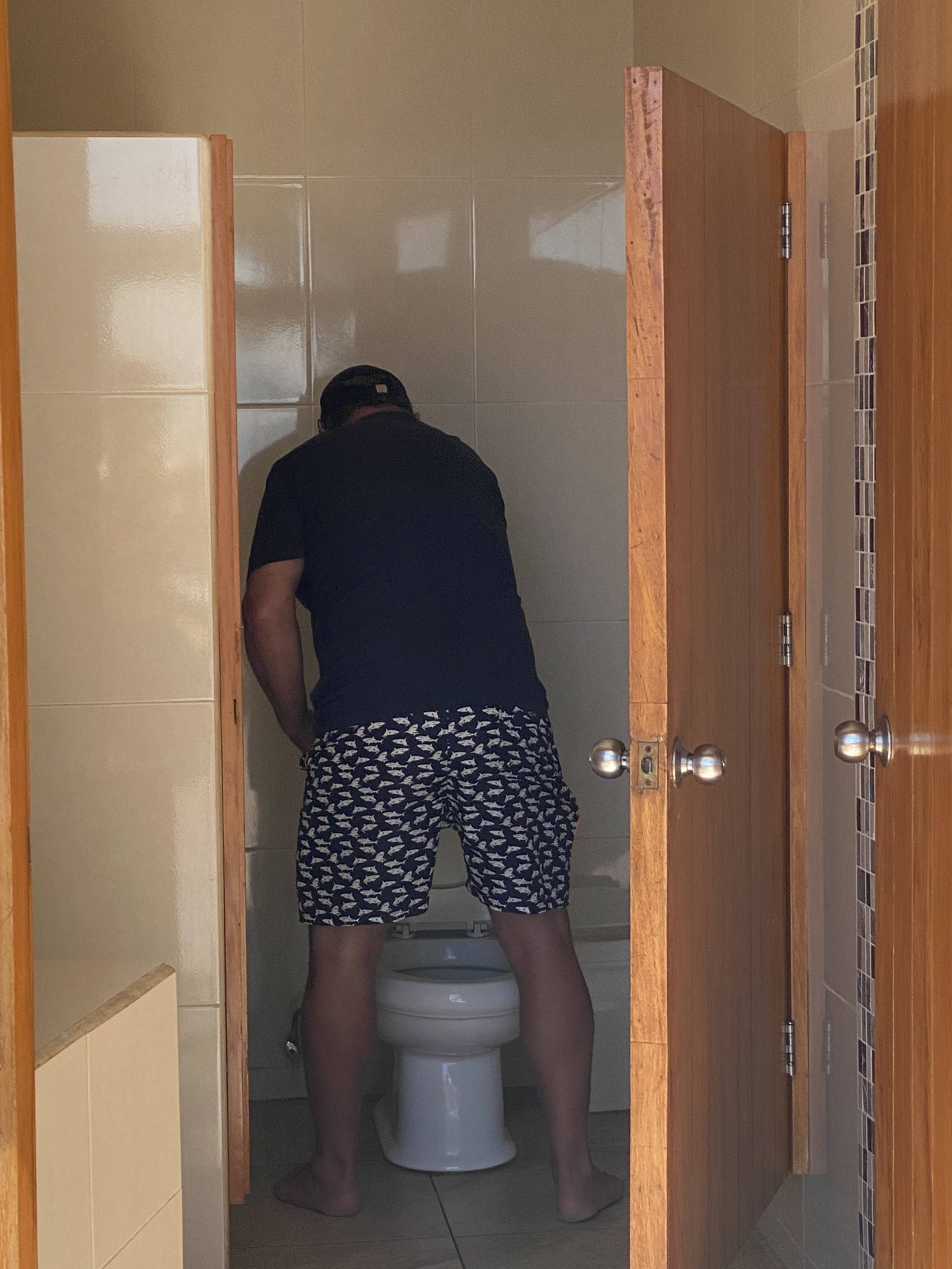 We joined our friends at La Gaviota for a shrimp taco lunch. A friend of ours, let’s just call him “Calin” for anonymity purposes, went to the bathroom and forgot to close his door. Mario grabbed my phone and took a few pictures. Since I tell my dear readers everything, and “Calin” isn’t one of them, I included a picture of that embarrassing moment….Sorry Alain! I mean “Calin”.