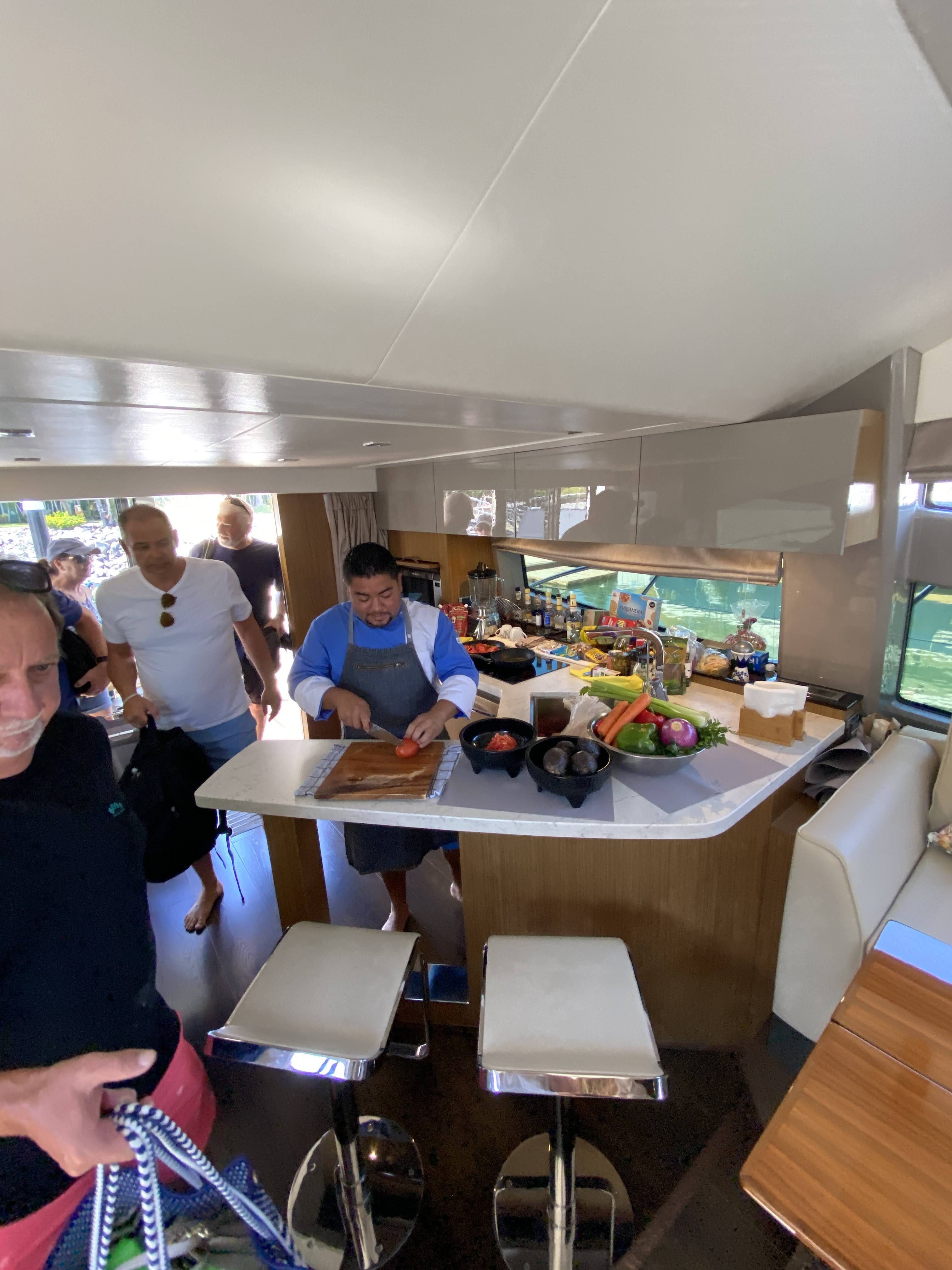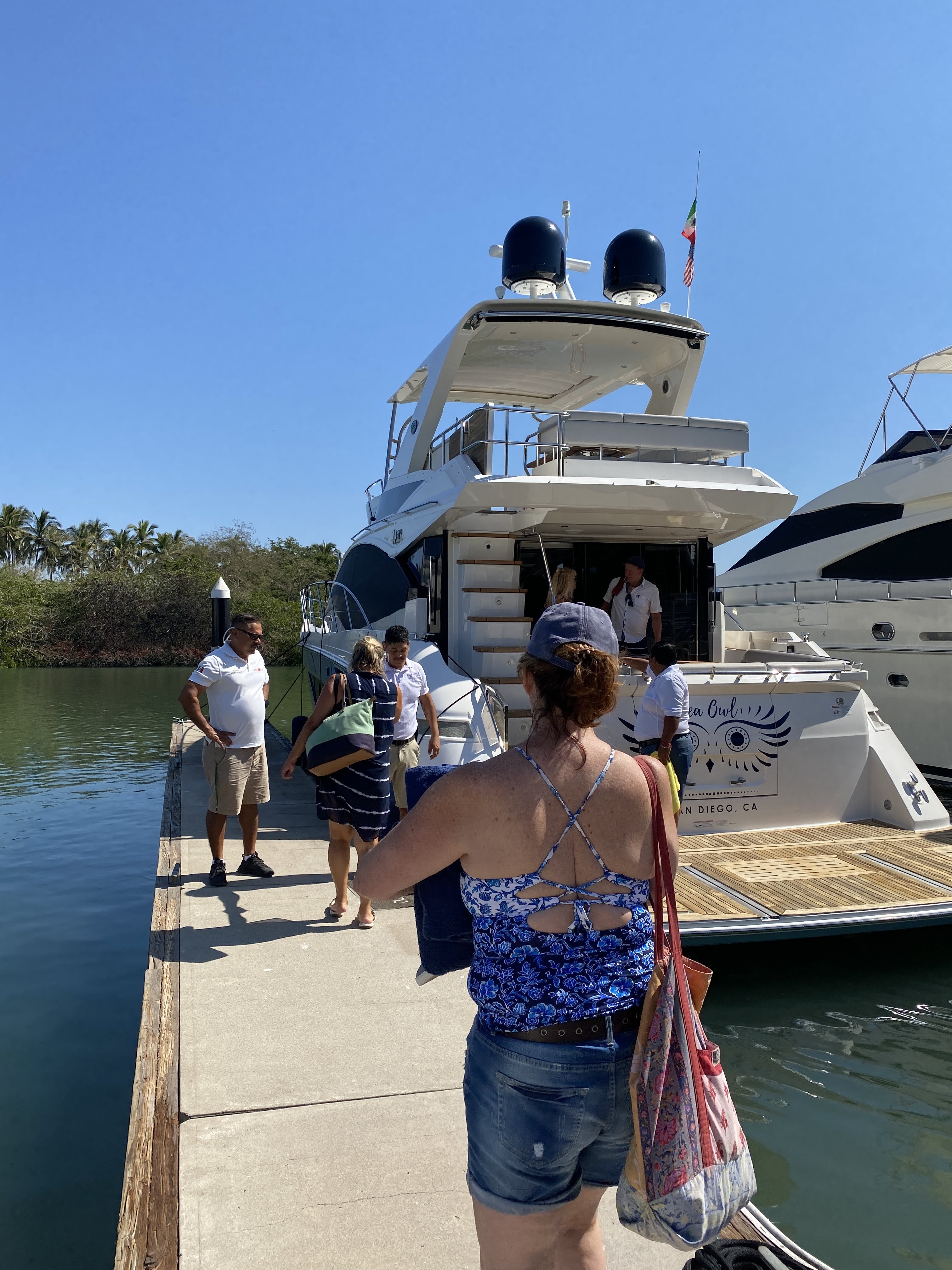 After packing our lotion, hats, towels, change of clothes, drone, dramamine and seasickness watch (just in case but I finally didn’t need them because the boat had a stabilizer), we met our friends at the parking lot at 11:30am and followed someone to the marina. Mario had made arrangements to rent a beautiful 55ft yacht for the day.