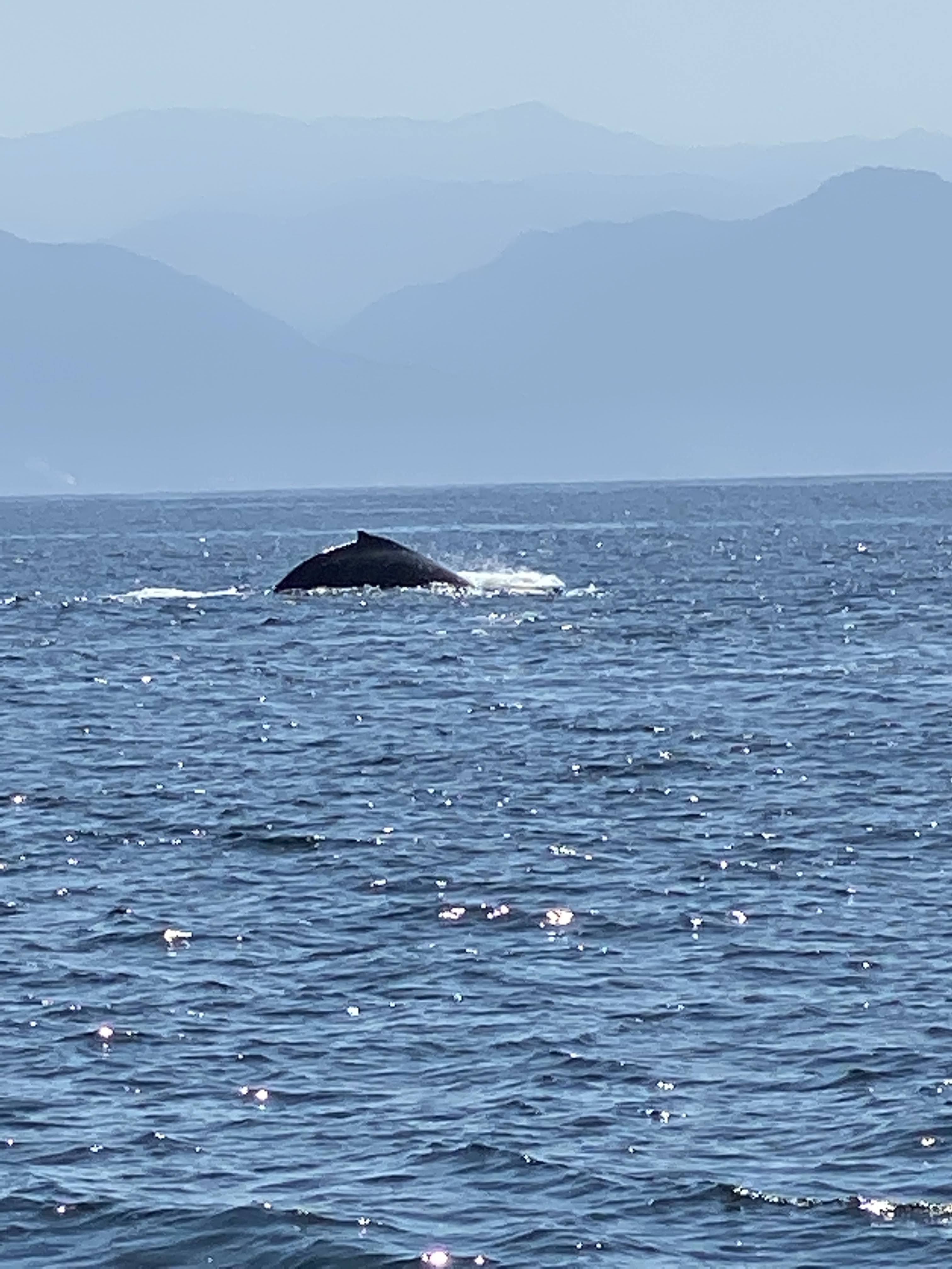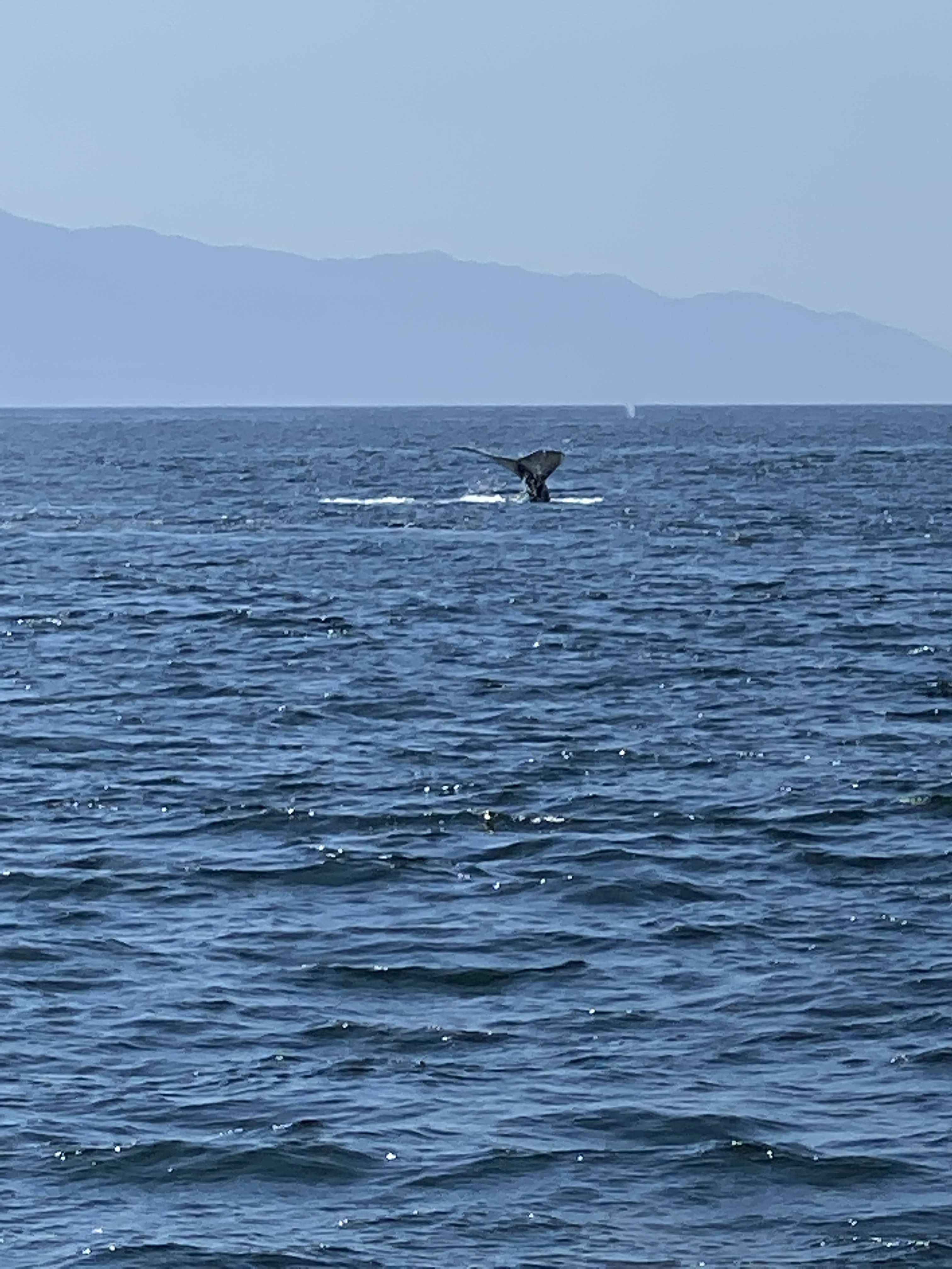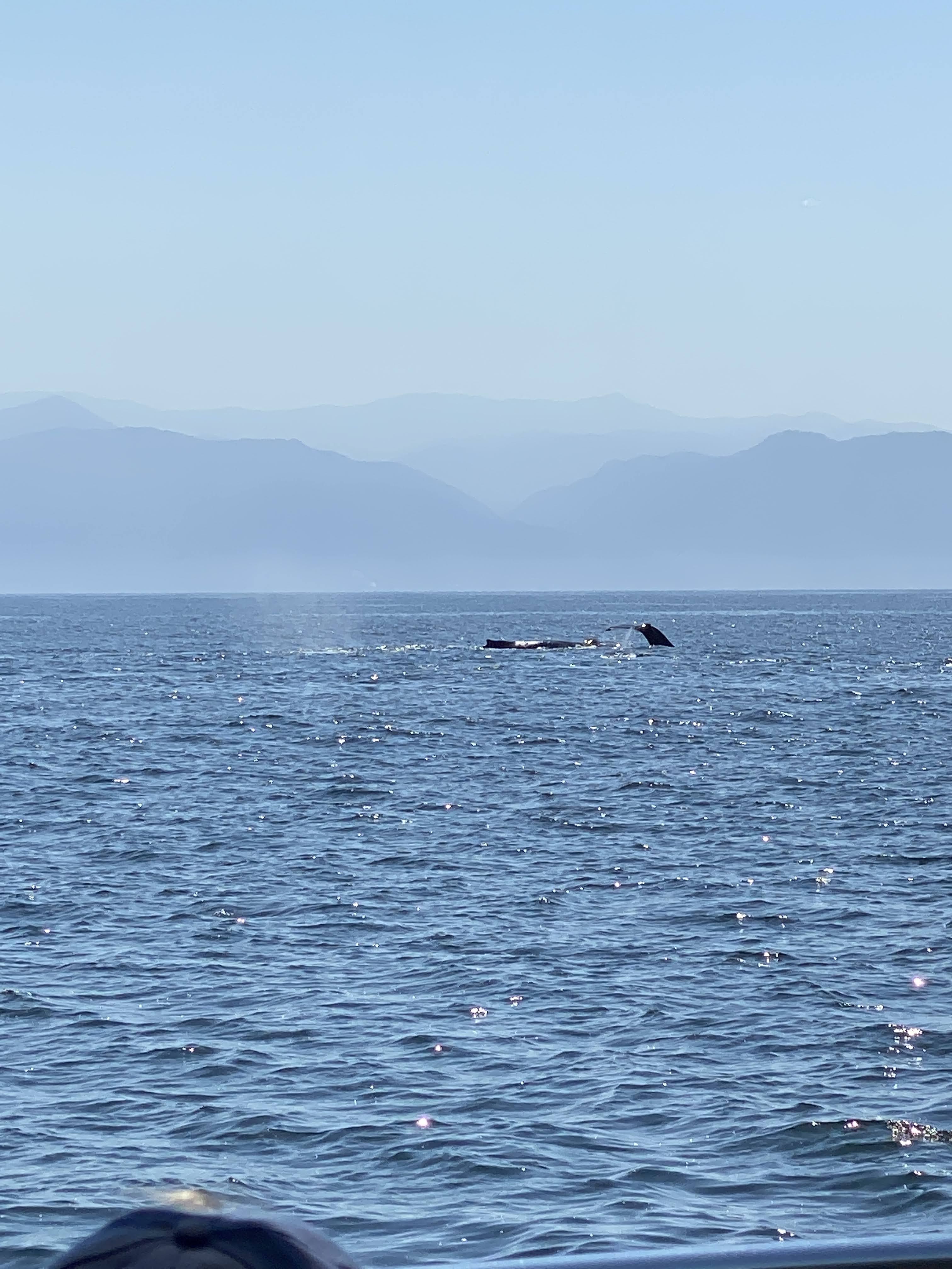 We took off at noon on a very calm day. We went west and saw a lot of whales, mostly from afar. I took hundred of pictures of tiny black dots but of course when a few popped up close to us, my camera wasn’t ready.
