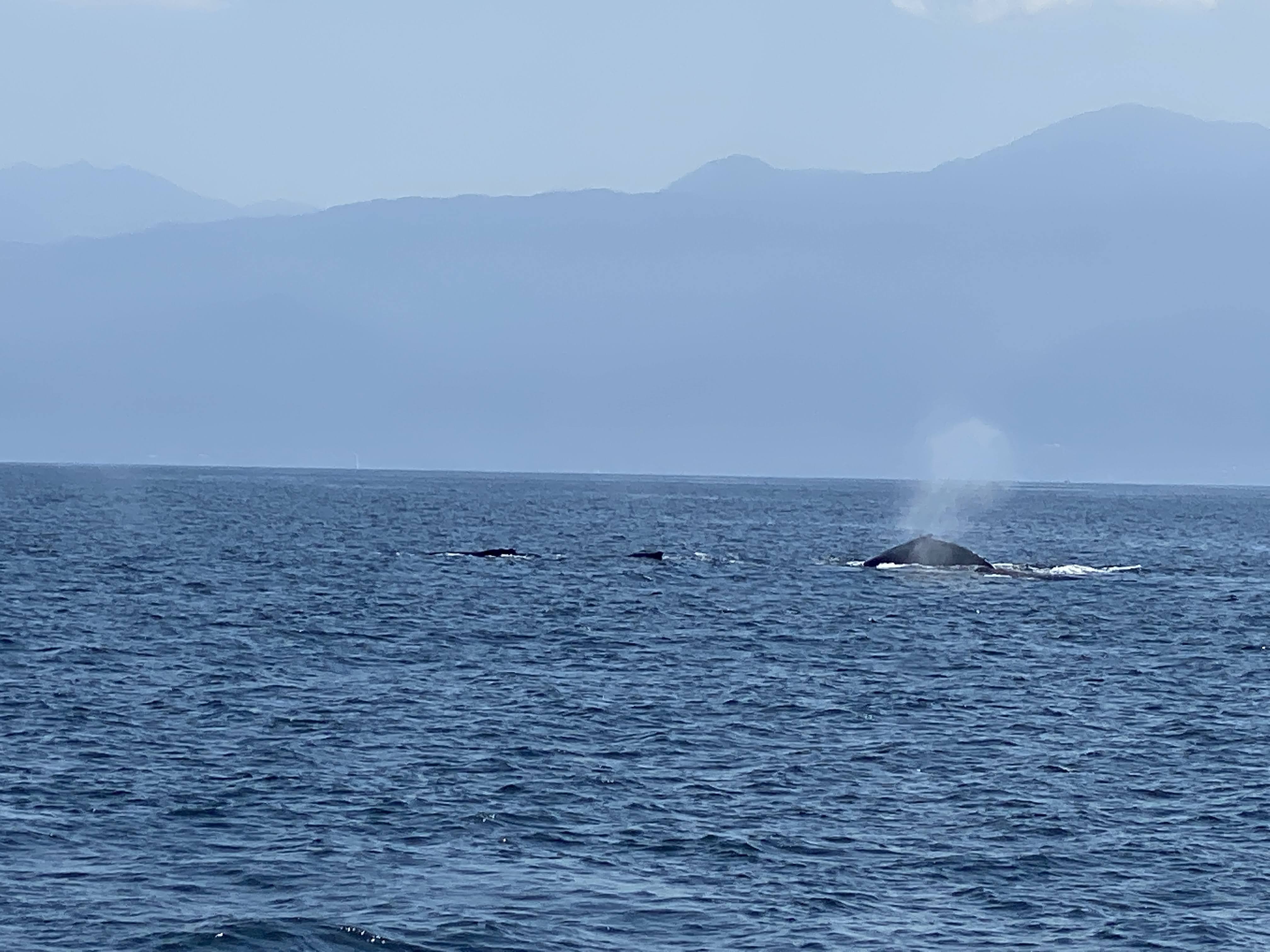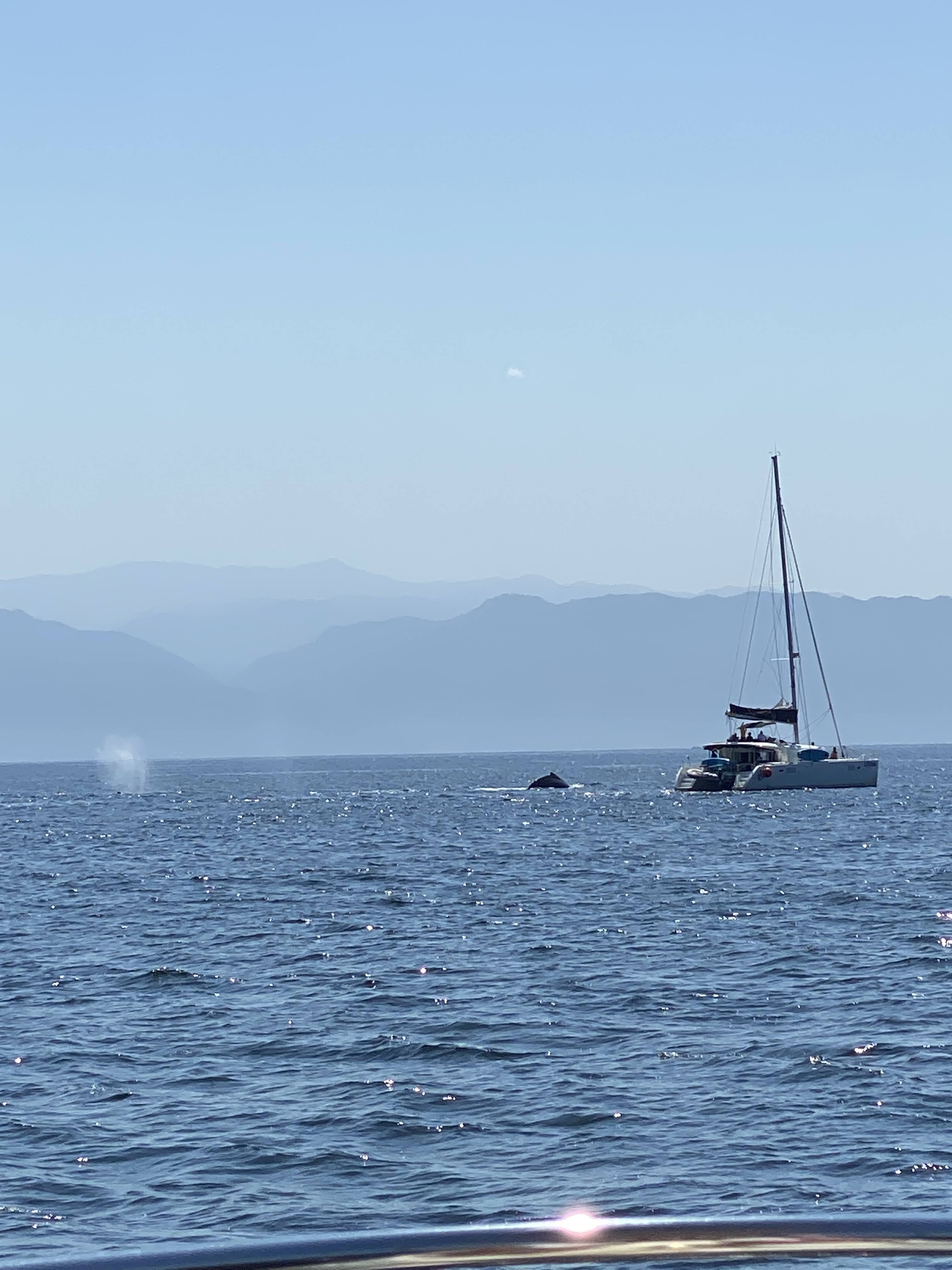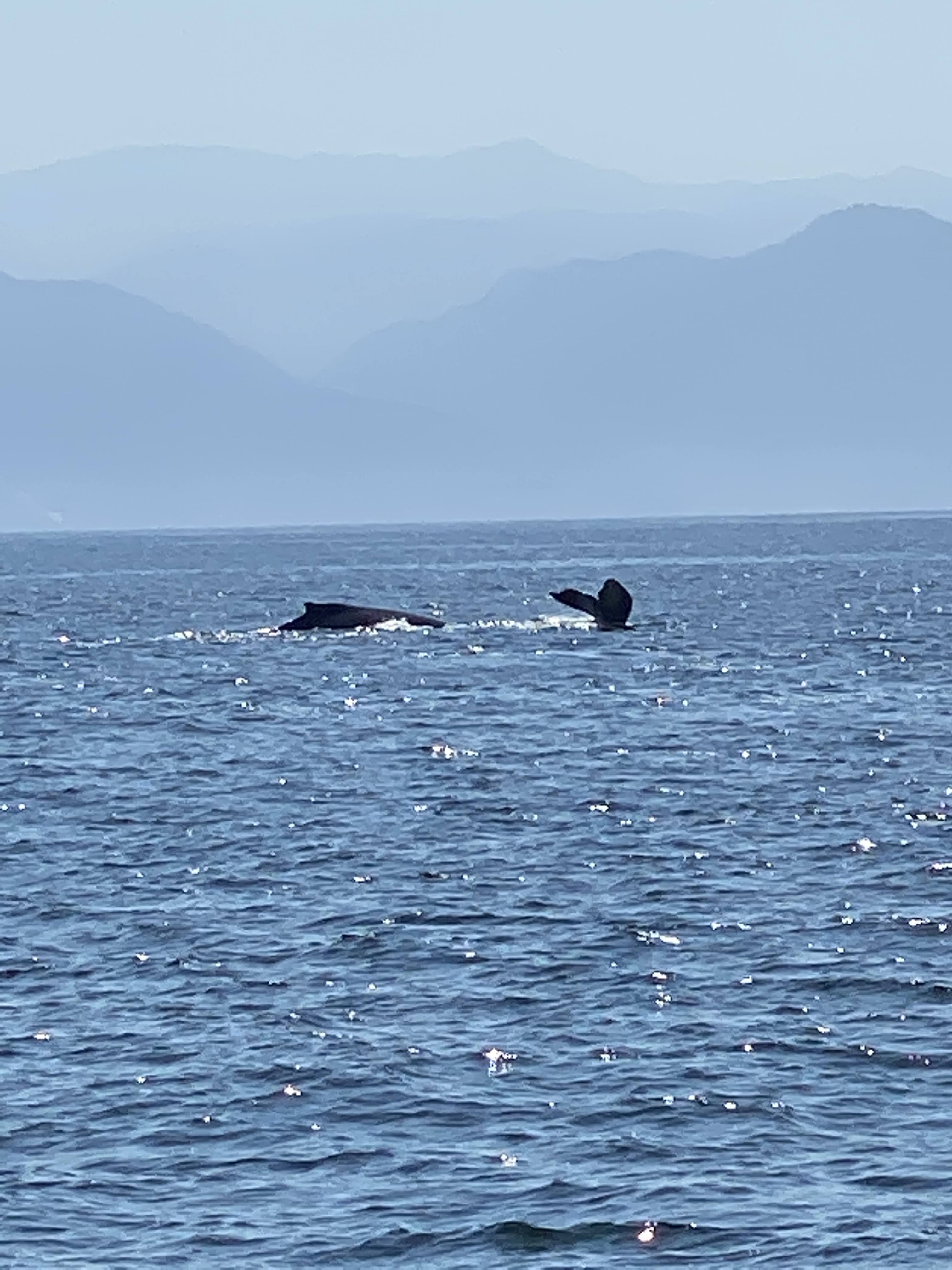 We took off at noon on a very calm day. We went west and saw a lot of whales, mostly from afar. I took hundred of pictures of tiny black dots but of course when a few popped up close to us, my camera wasn’t ready.