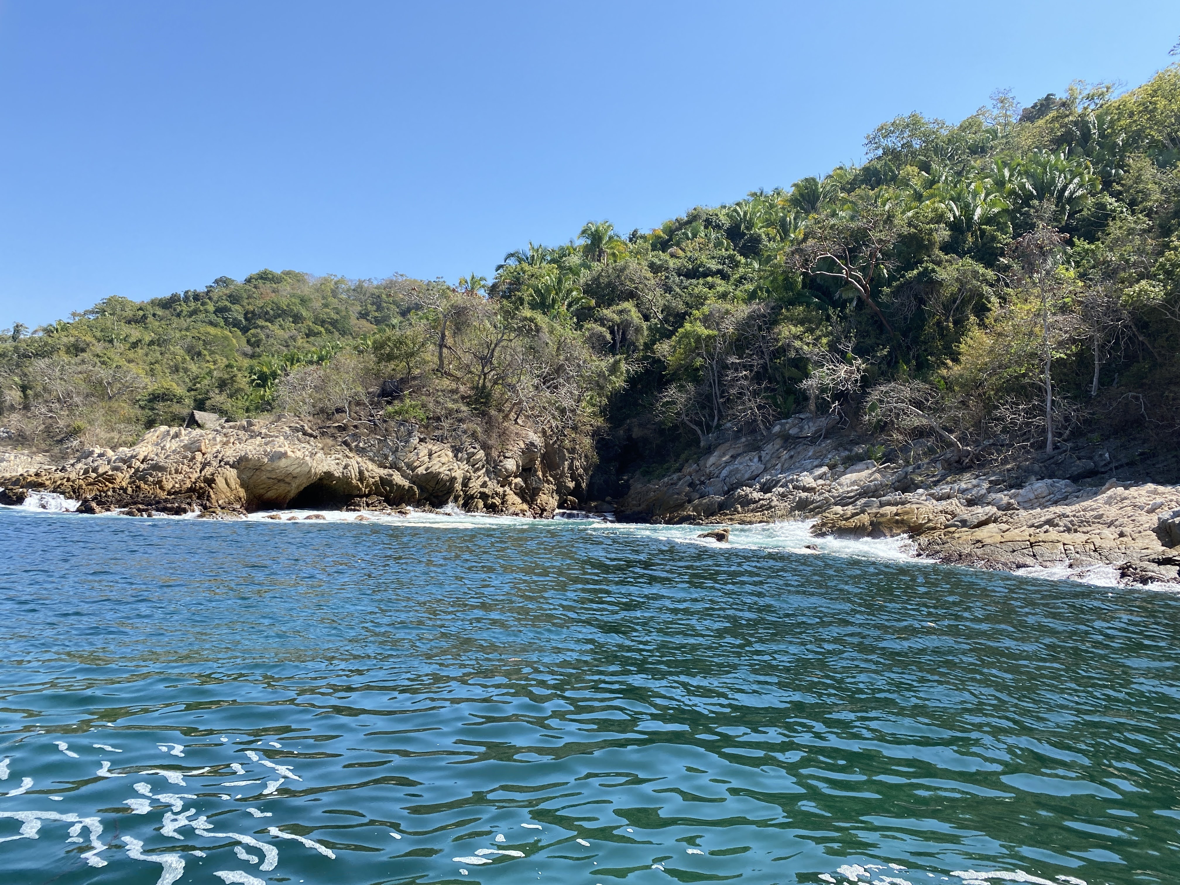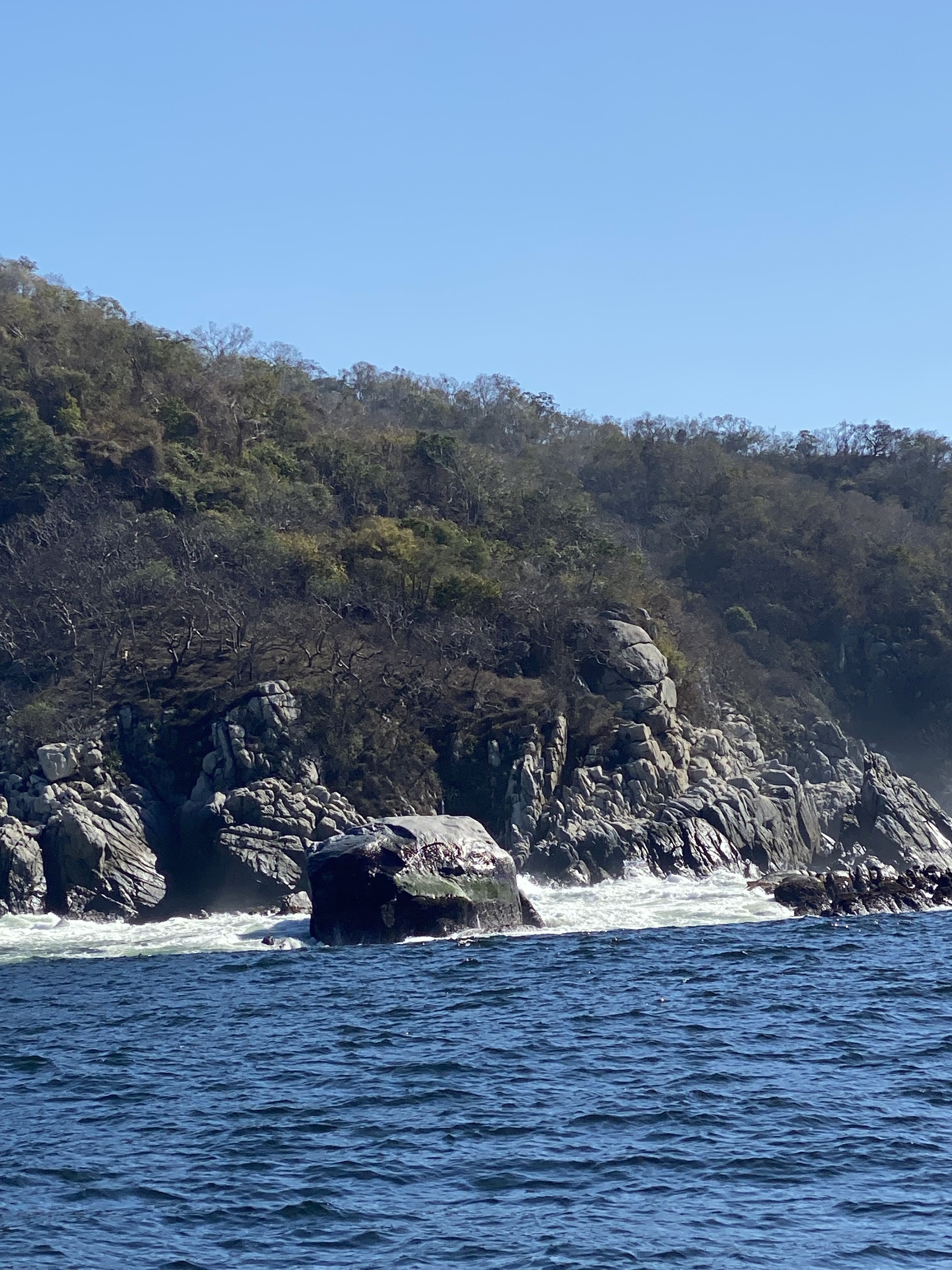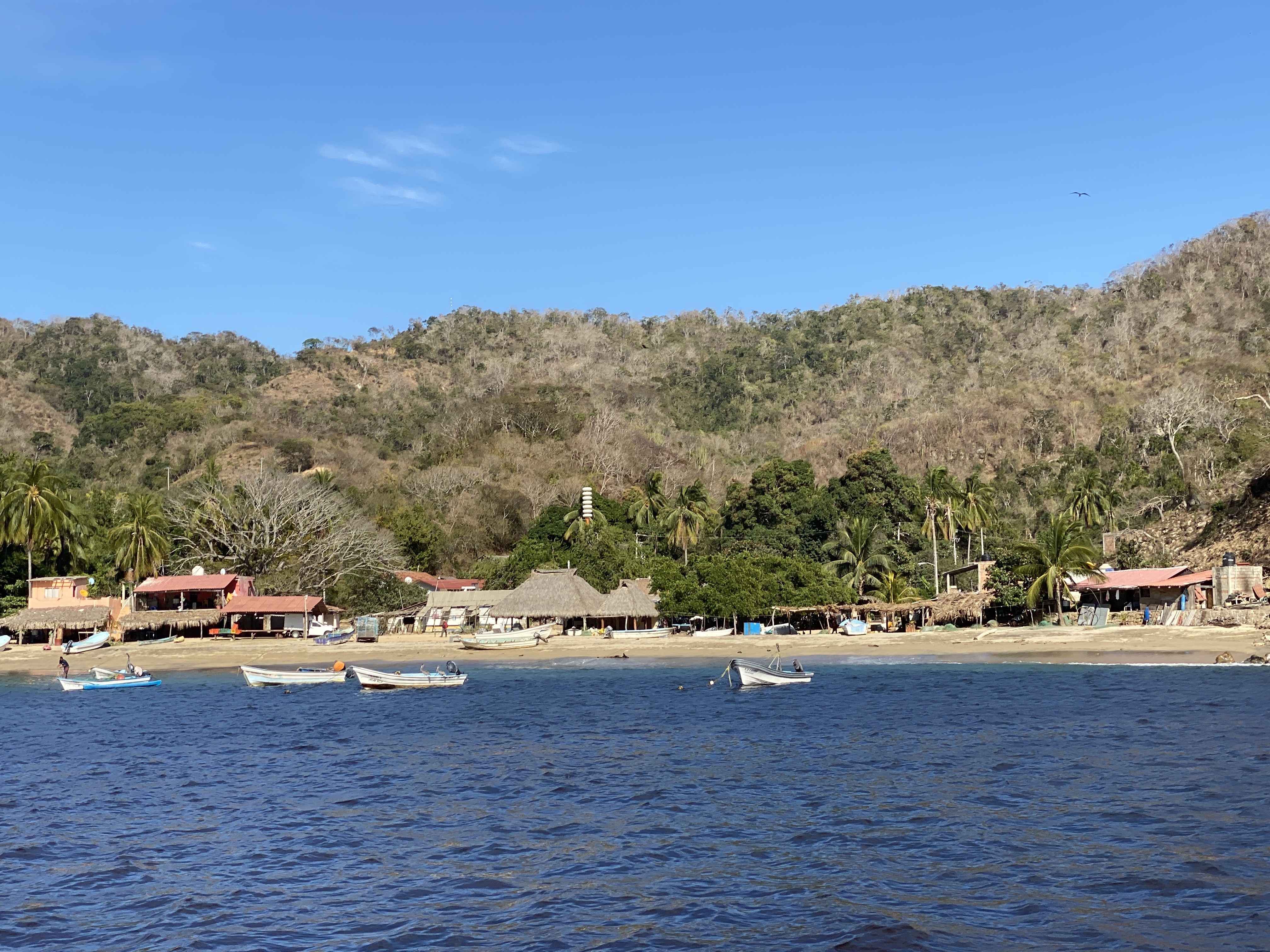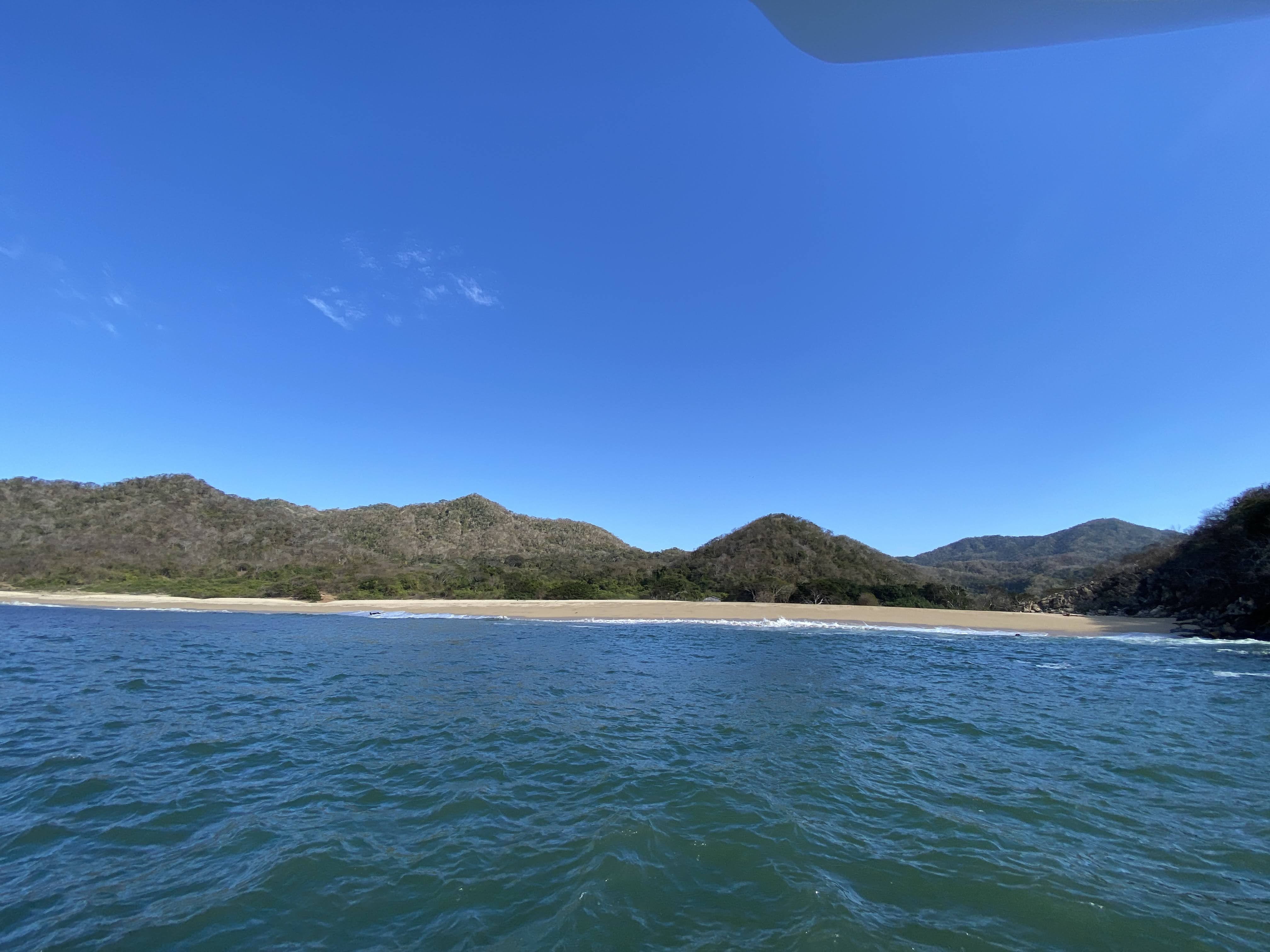 The Captain followed the coast and we saw gorgeous beaches and villages along the way. He stopped a few times for some of us to get a quick dip in the water and to snorkel. At the first stop, the waiter threw some bread in the water and gorgeous black and orange fish came to feed.