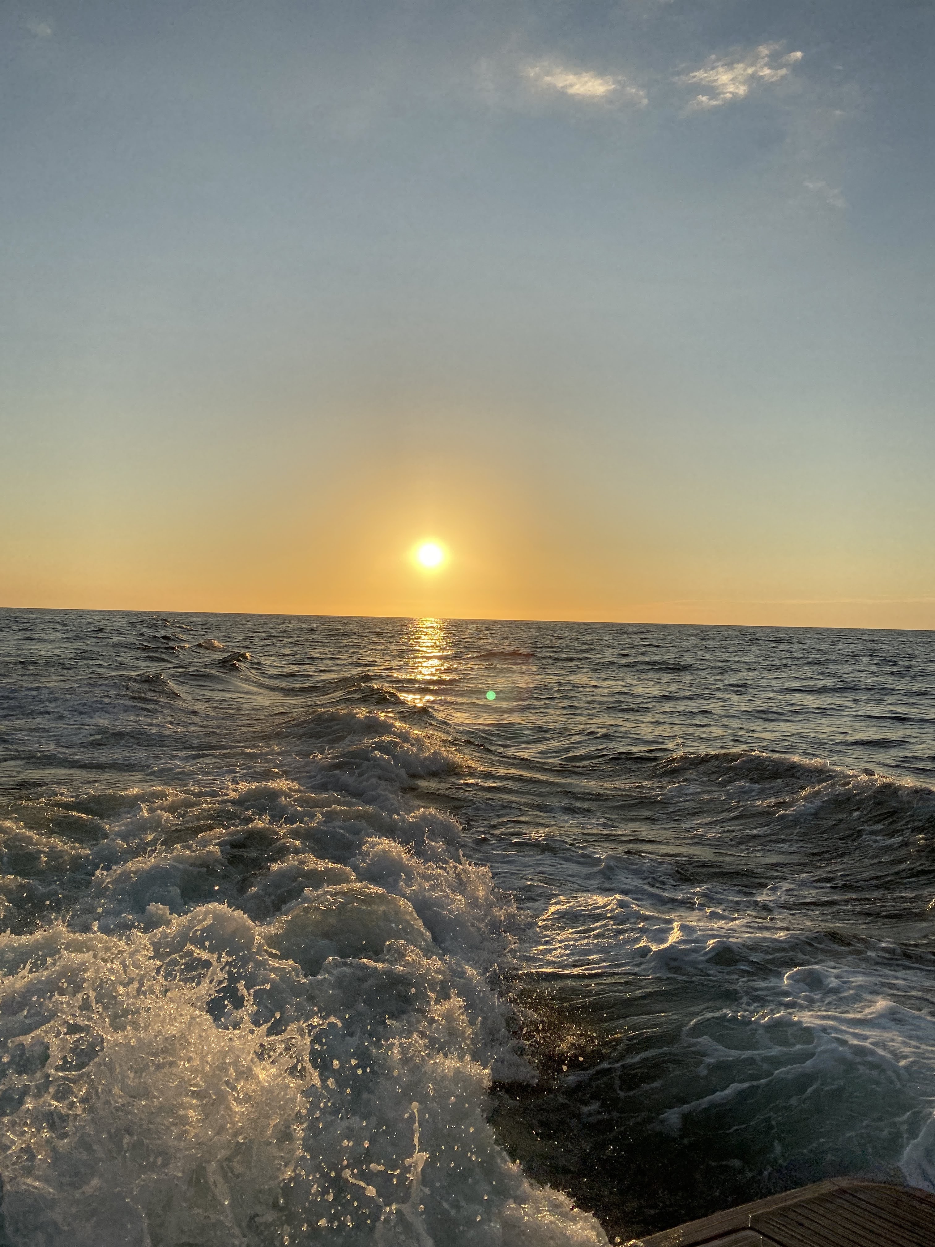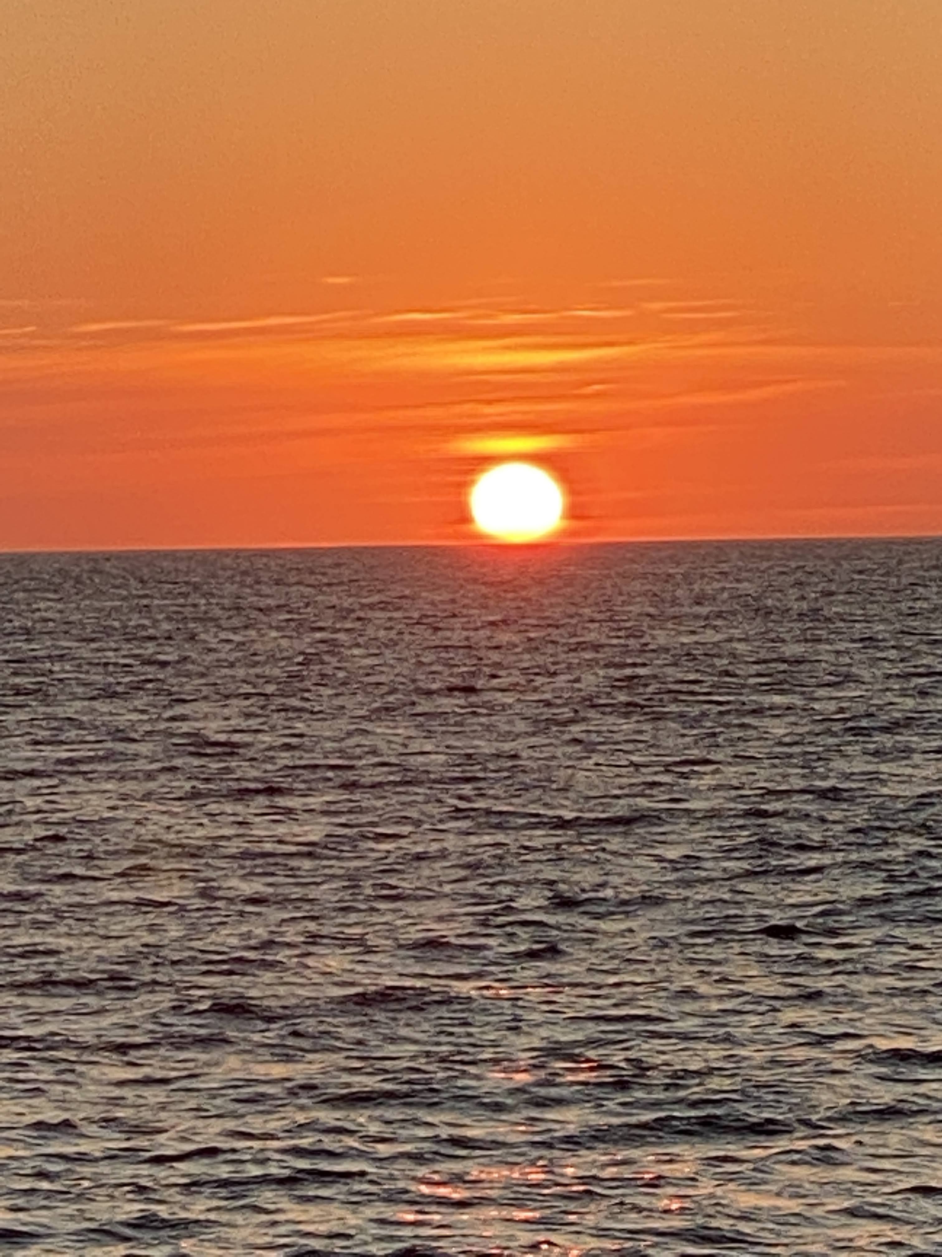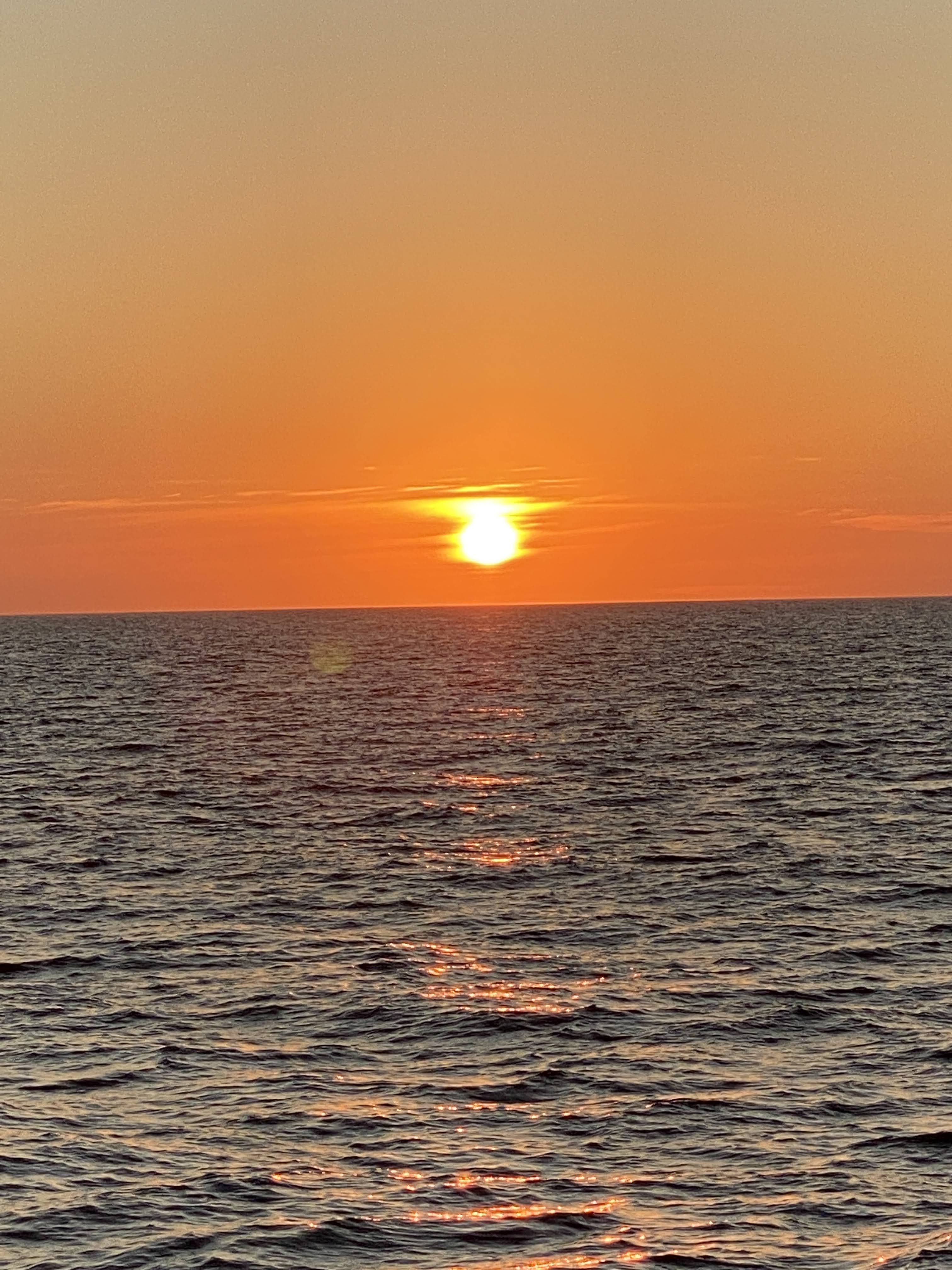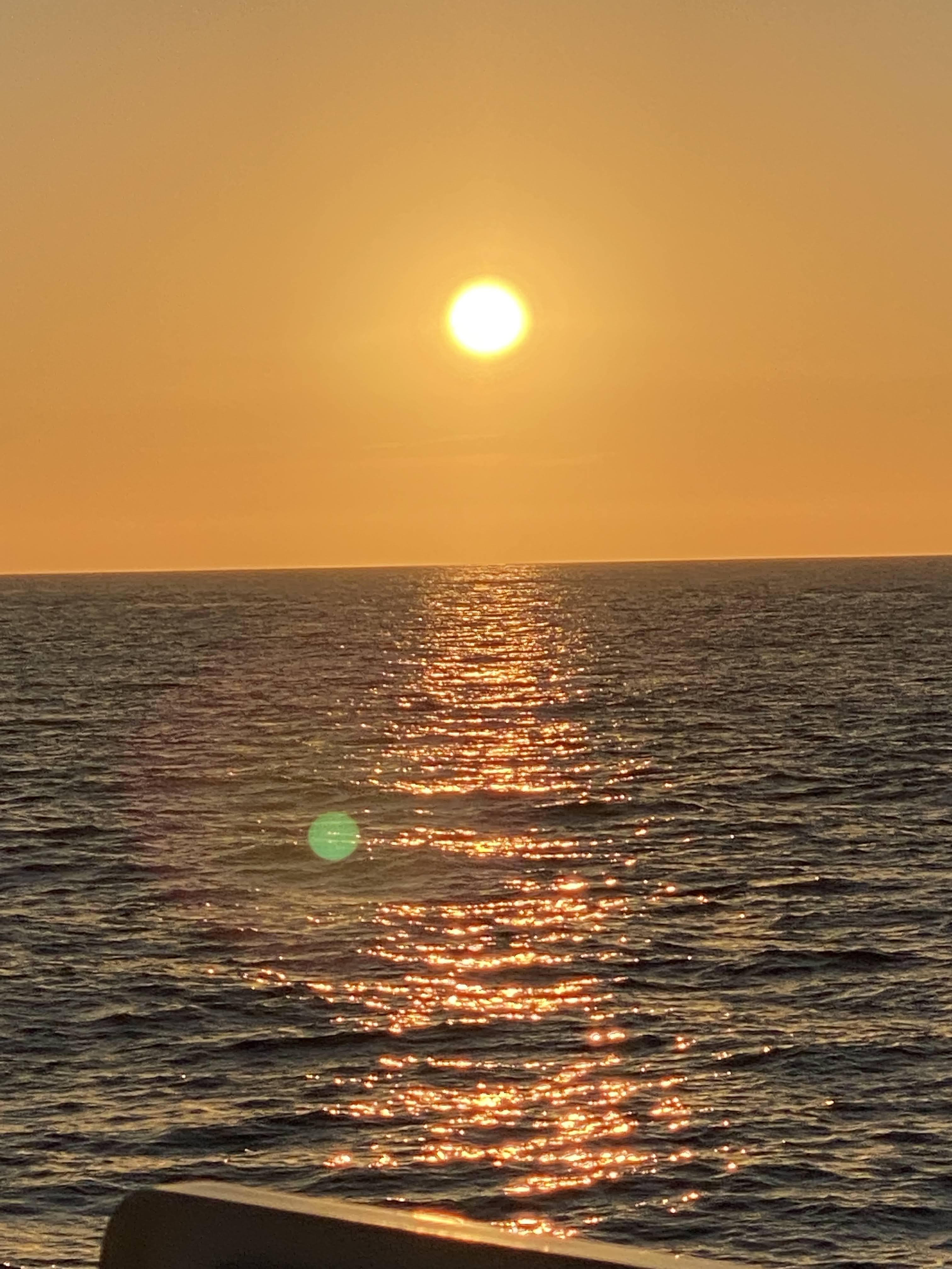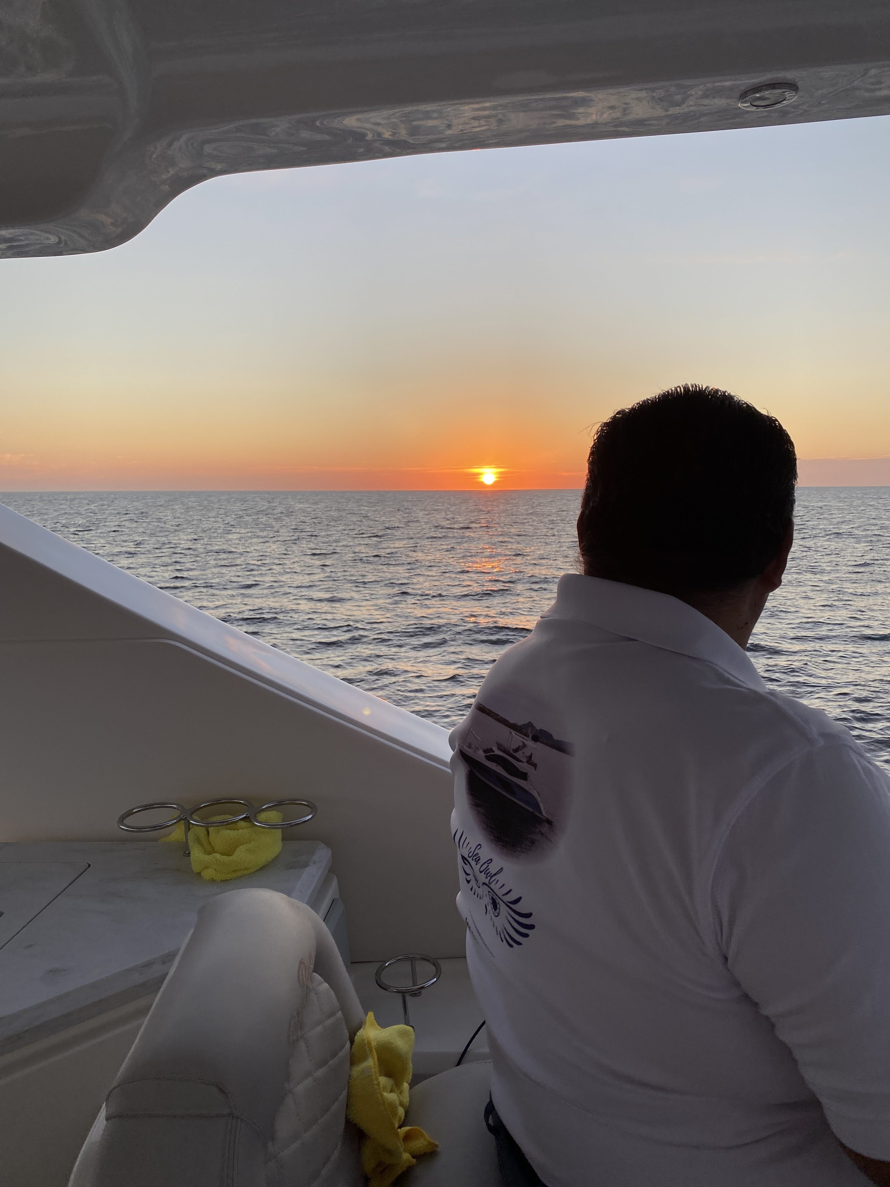 We saw a beautiful sunset while the captain was proudly showing Pogo and I all the features and navigation instruments at his fingertips.