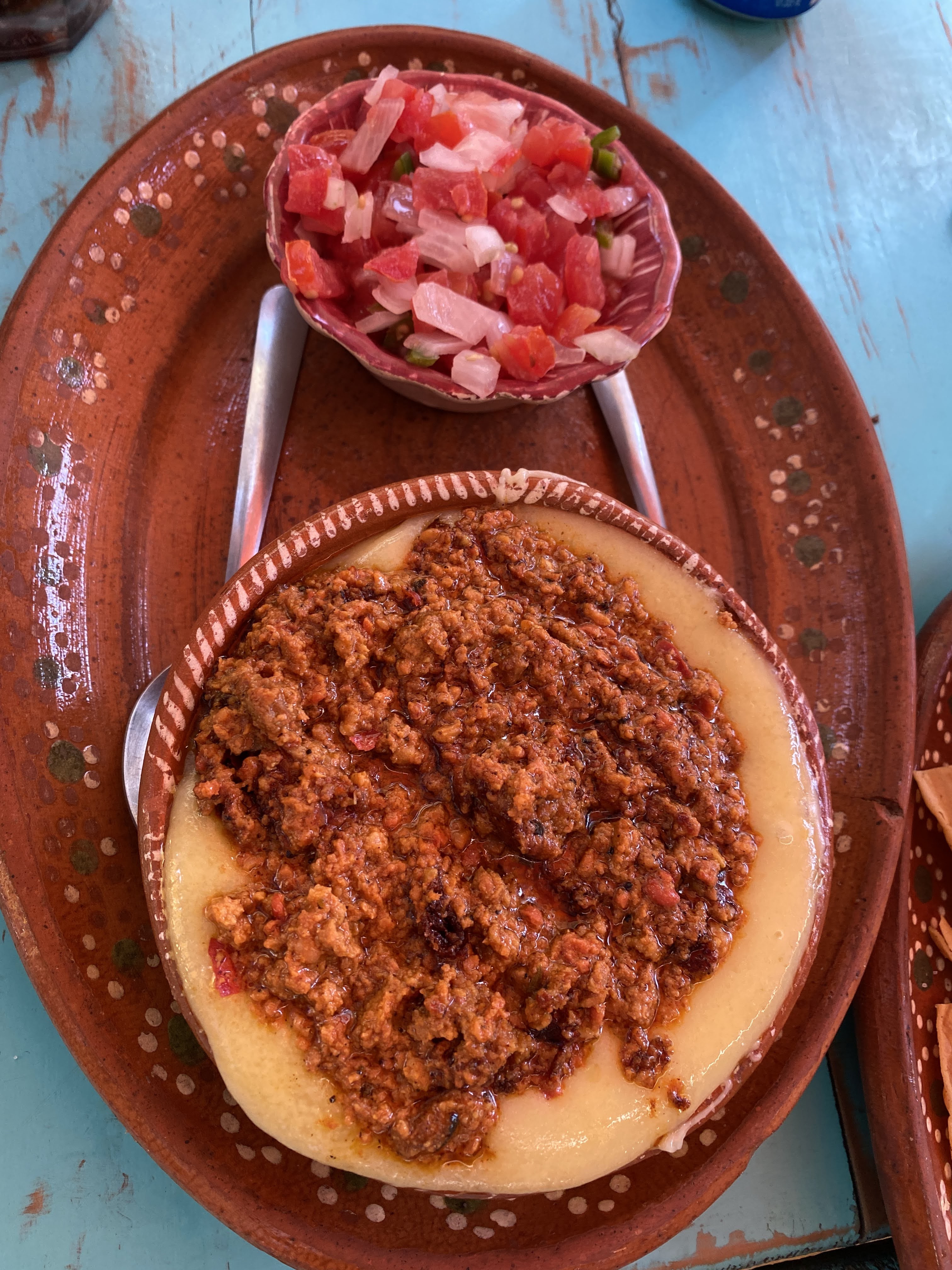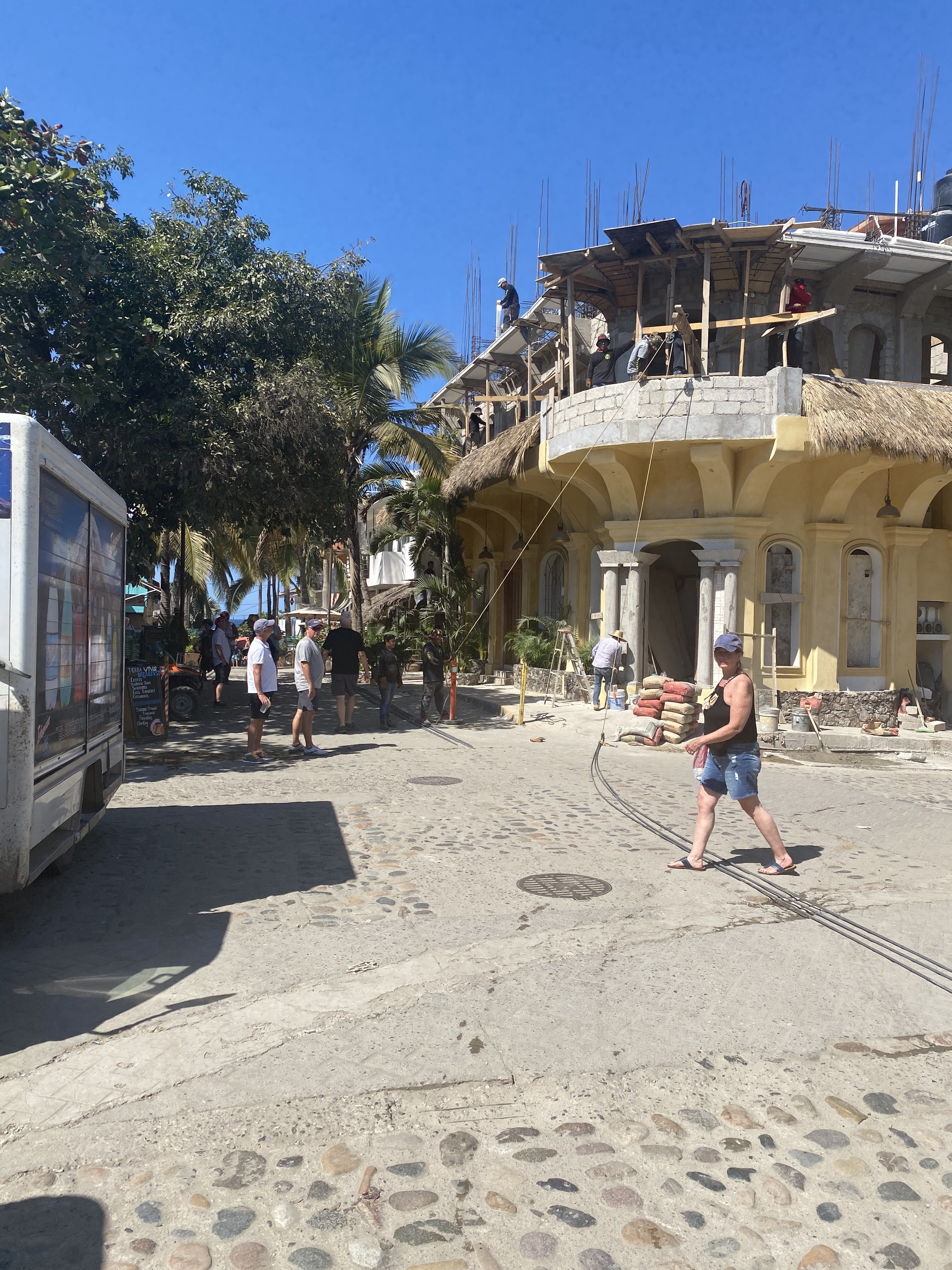 Sayulita was busier than ever as well. Pogo and Derrick dropped us off at our favorite little restaurant Yekame and went to find a place to park. We couldn’t believe it was already 2pm. We were all starving. Deidre and I had ordered guacamole and chips and unknowingly Pogo ordered melted cheese and chorizo as well. It came with blue tortillas. We were full before our main dishes arrived but we ate most of them anyway; Pogo and I had chinita pibil, Derrick had chicken fajitas and Deidre had chiles rellenos. We walked around town for a little bit and saw lots of construction there as well. I was so sad to see the little churck with any flags as it is always so colorful and my favorite picture to take in Sayulita. To make sure to avoid traffic, we took the road back going through Punta de Mita instead.