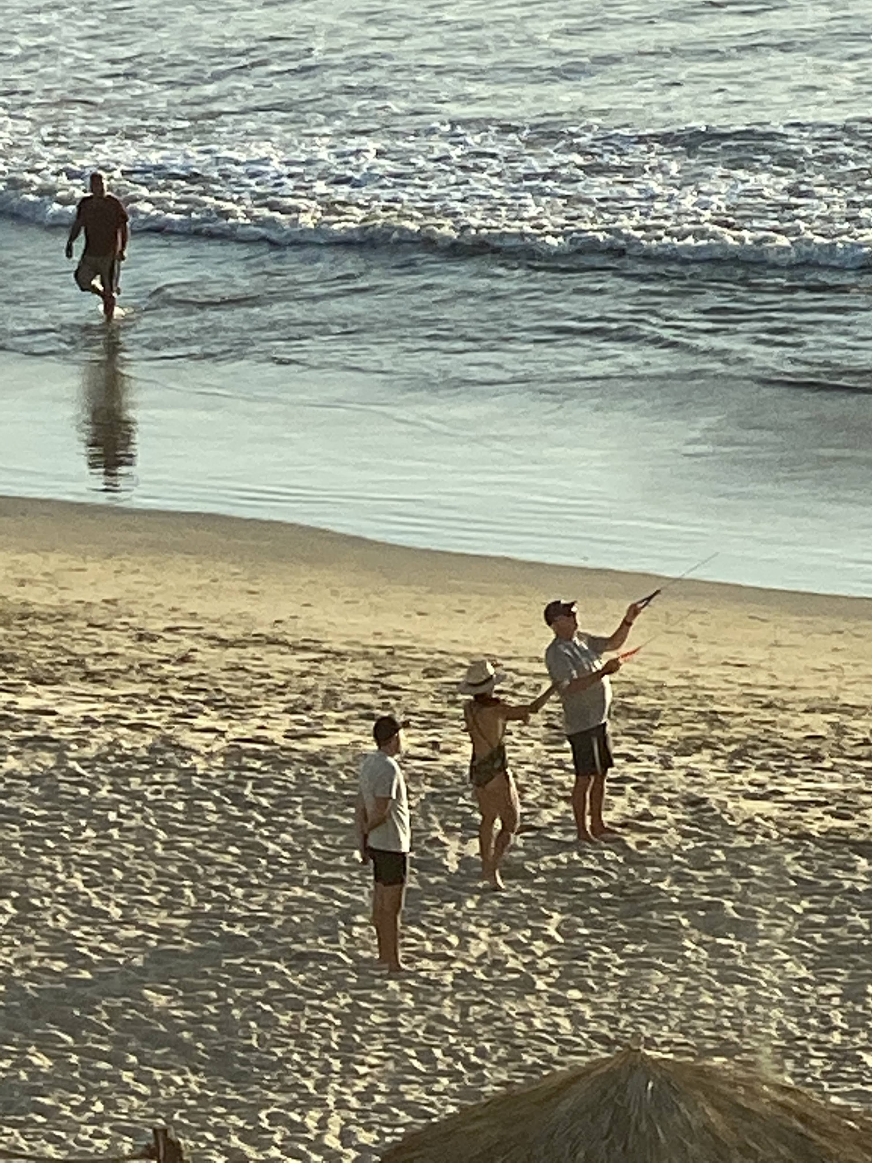 We were back around 5pm and took a little nap. We noticed that the glass of one of the sliding doors is coming out of the frame. Pogo was watching a couple trying to fly a kite and they kept crashing. It was driving him crazy so he decided to go to the beach to help them out. He spent 30 minutes teaching them where to stand in the wind, how to untangle the ropes, etc.
