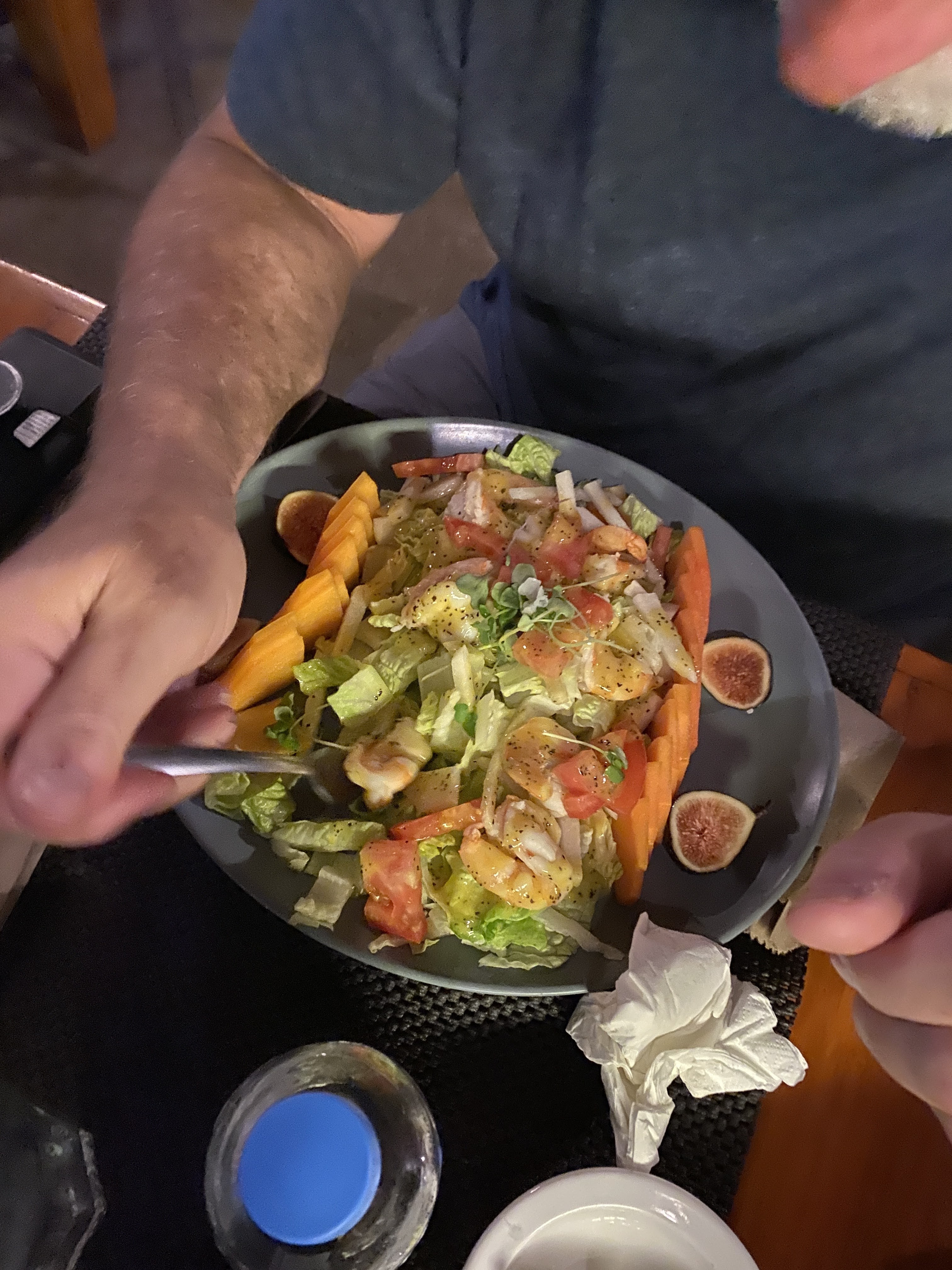 We sat on the porch watching the sunset, sipping on a cocktail and because we were restless, decided that we might as well go out for dinner so we went to La Isla at 8pm. We normally need a reservation for dinner but being that late, they were able to find us a table. Both Andreas and Graciela were working and they looked exhausted. Pogo had ribs, I had coconut shrimp, Deidre had a Caesar with skirt steak and Derrick had the Tropical Salad with shrimp. Haha, this blog wouldn’t have much content if not for the food we eat. I’m gaining weight just to have content. You are welcome…