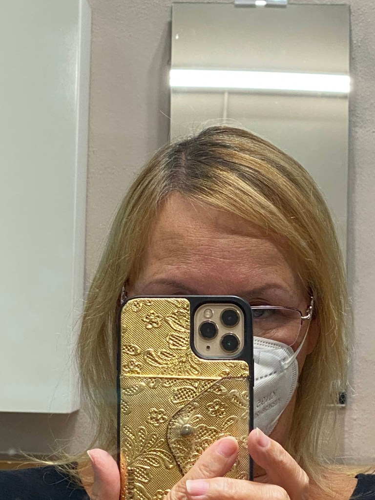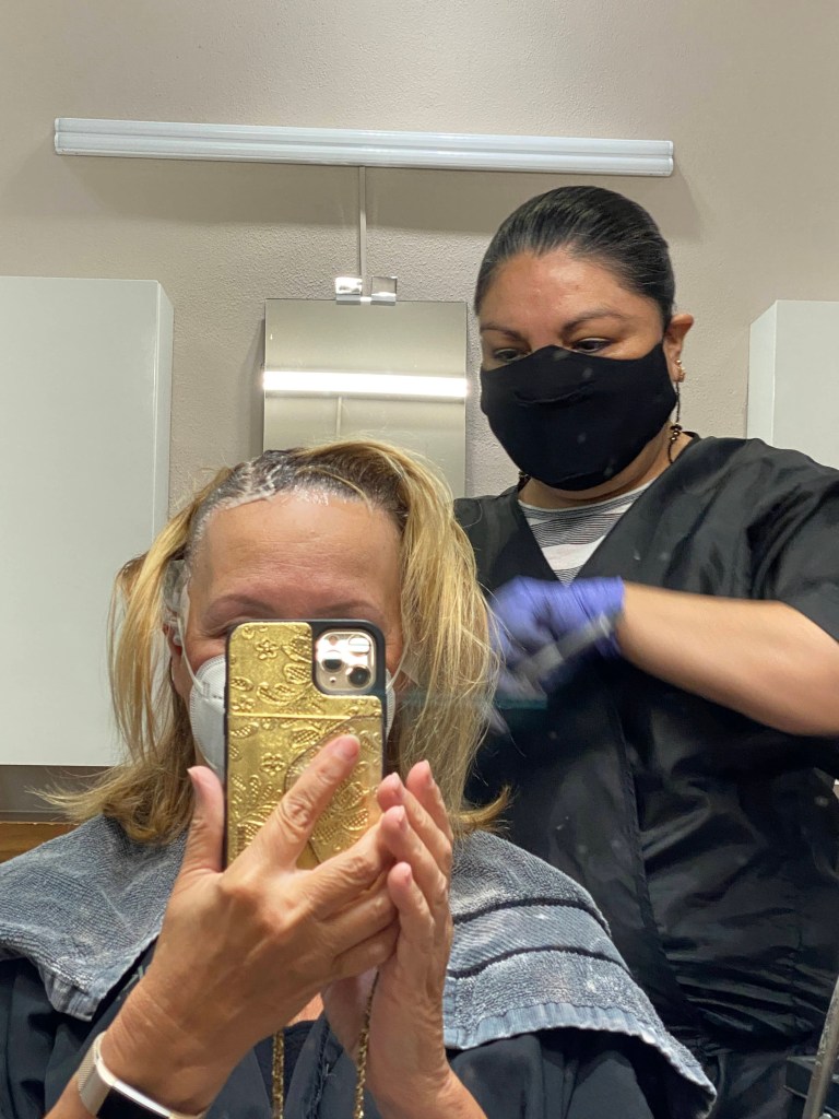We drove to Starbucks because I was having my hair colored just next door and didn’t want to arrive there all sweaty. The line at Starbucks was so long that Pogo had to bring me my refresher to the salon.