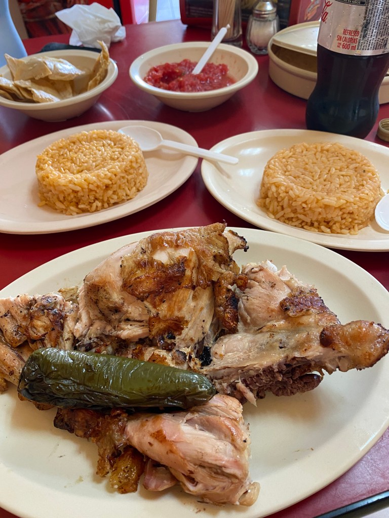 We made it to Mezcales and the place Pogo had found on Google maps ended up being a grill in a dirty alley surrounded by garbage so we went to Bucerias to a place called Pollo Feliz, a popular fast food chain of restaurant. They had 2 tables only as it is mostly for pickup orders. The chicken was good but the sides of rice and coleslaw were not great.
