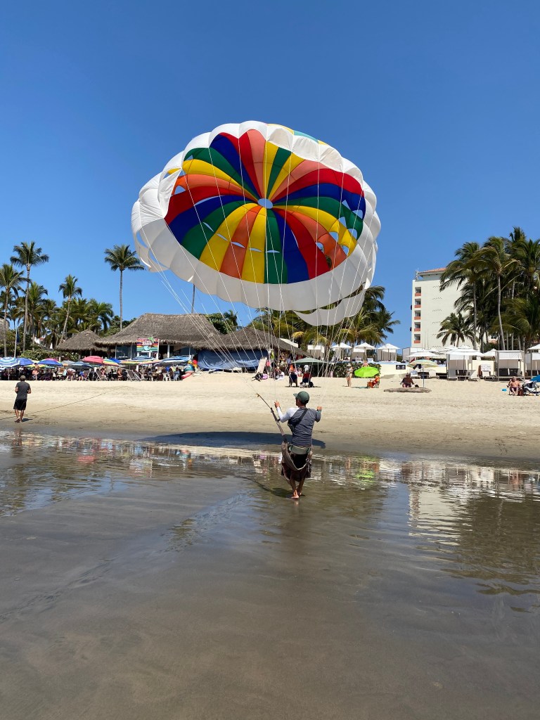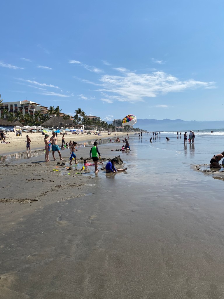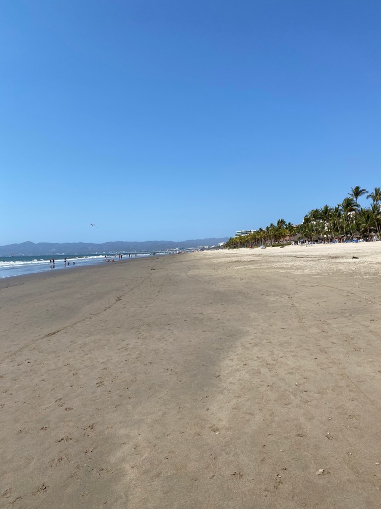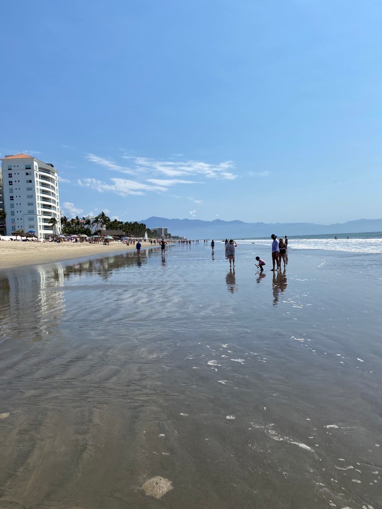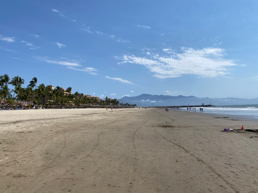 The tide was low so we went for our walk on the beach. Being Saturday, the public access to the beach was crazy busy with local families. We went to the wall and back and I was dying of heat despite the ocean breeze. Never a good idea to walk in the middle of the day. We jumped in the pool to cool off for a while and chatted with Norbert and Olga about restaurants. They spend 5 months here every year but she doesn’t like Mexican food so all their recommendations were to Italian places.