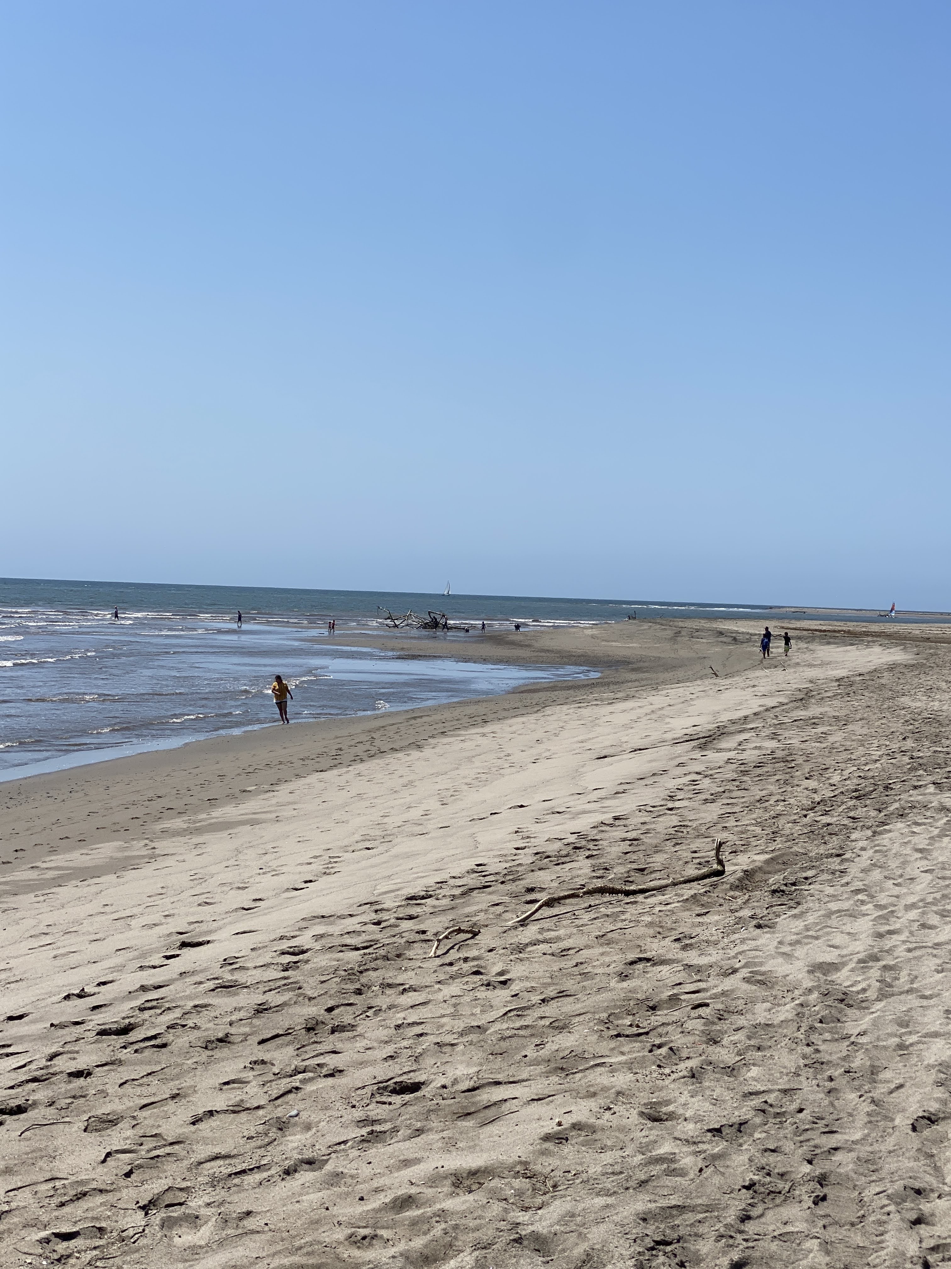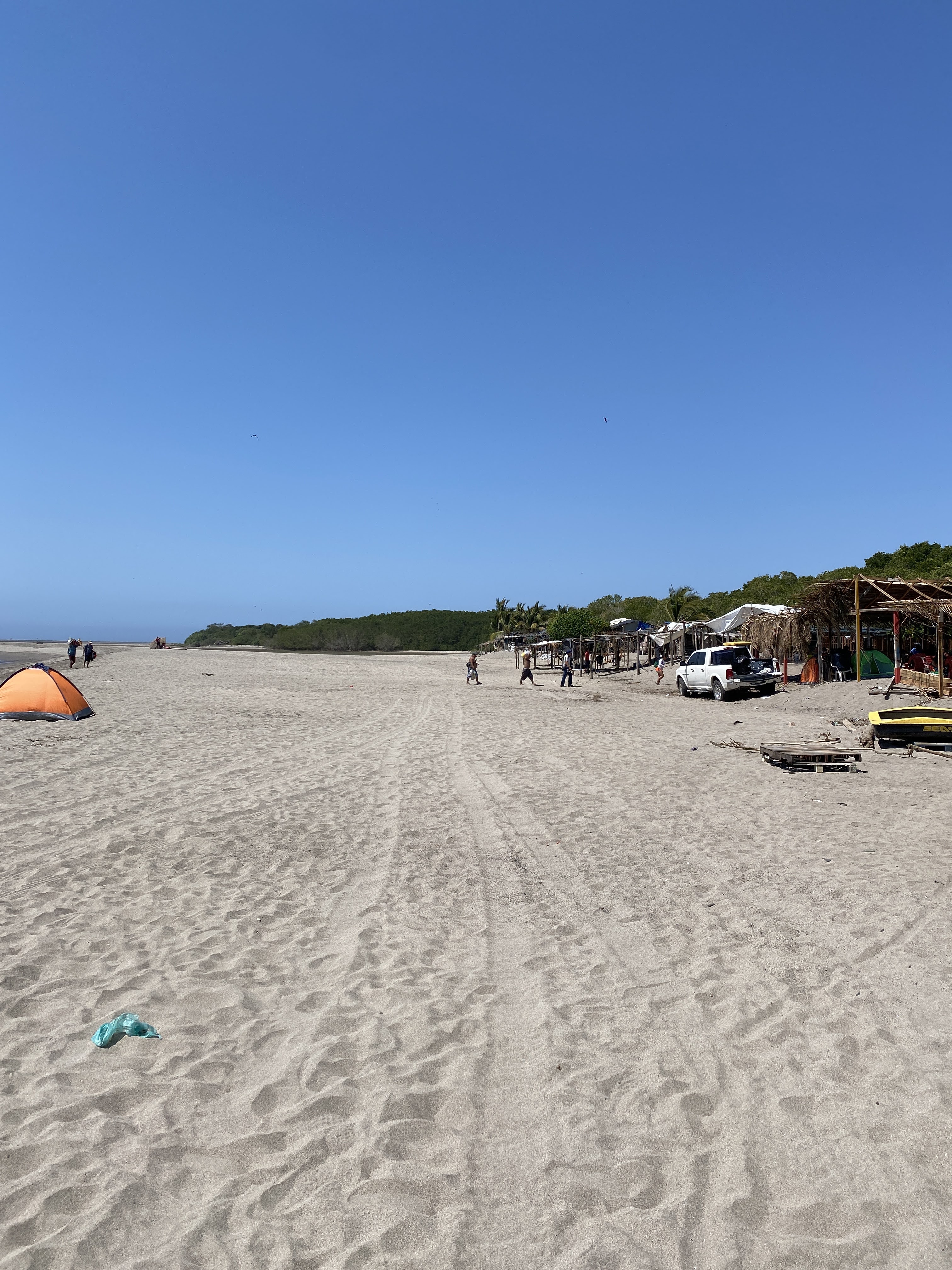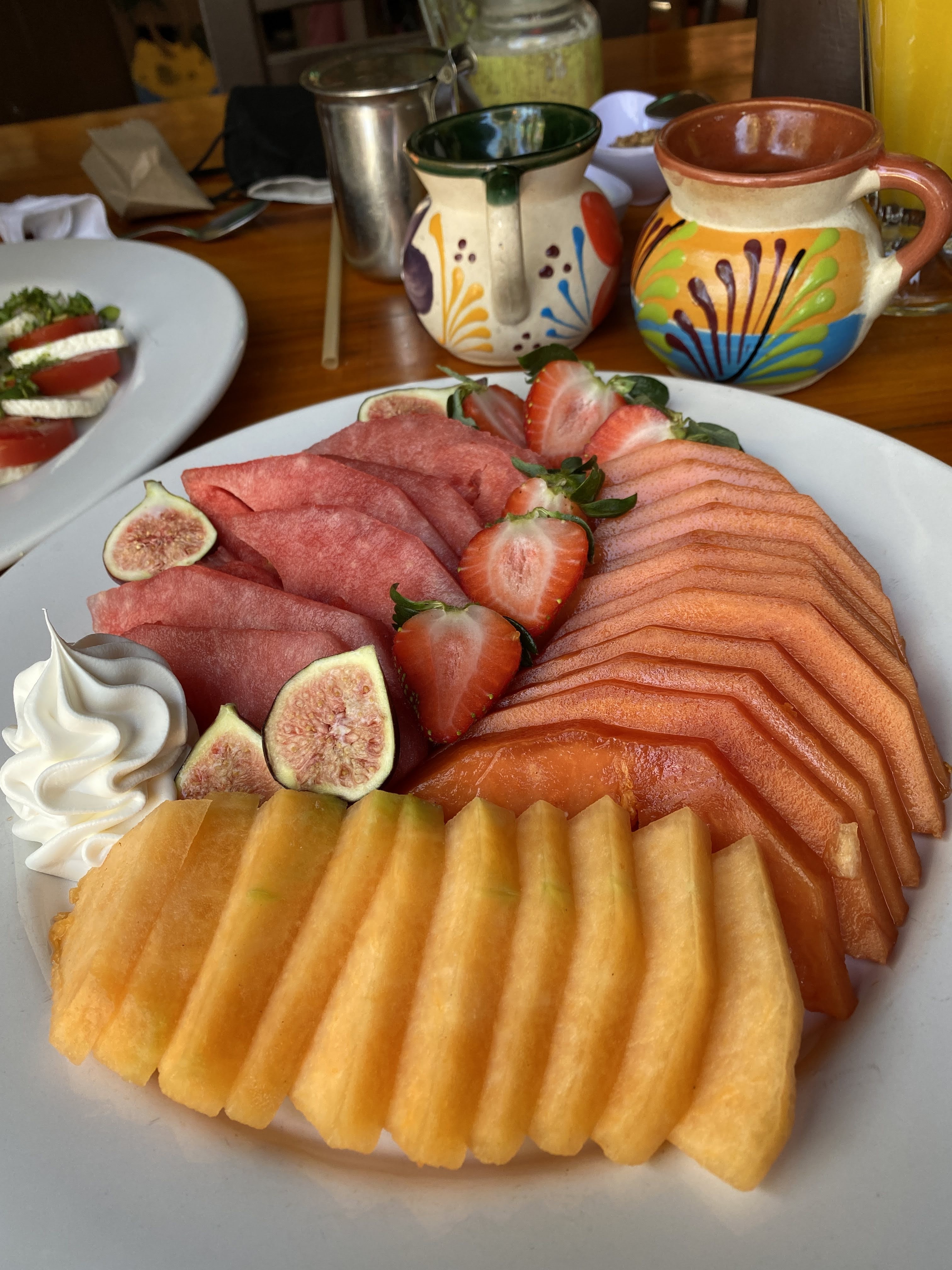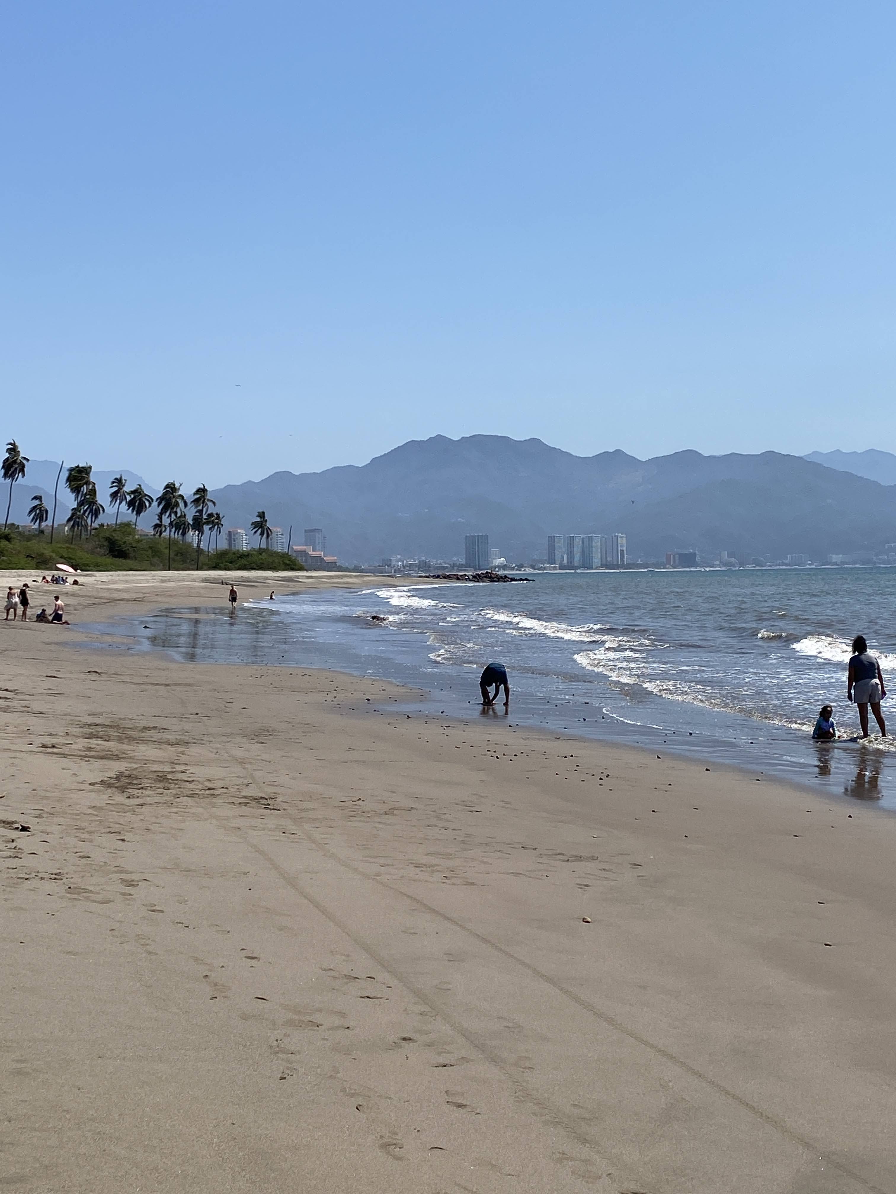 We continued the drive to Boca de Tomates. The quiet beach full of rustic restaurants called Ramadas, cannot be used to swim due to its proximity to the Ameca River and the Boca Negra Estuary because the presence of crocodiles is a constant. We had a soda at Eduardos, one of the dozen restaurants there than walked part of the beach. We could see Puerto Vallarta in the distance. We saw people fishing, a few kids playing in the waves and lots of birds. It was totally empty but considering the amount of restaurants, it must get crowded at some point. On the way back, we found another dirt road with fields of growing cantaloupes that brought us under the highway and we found an entrance to it.
