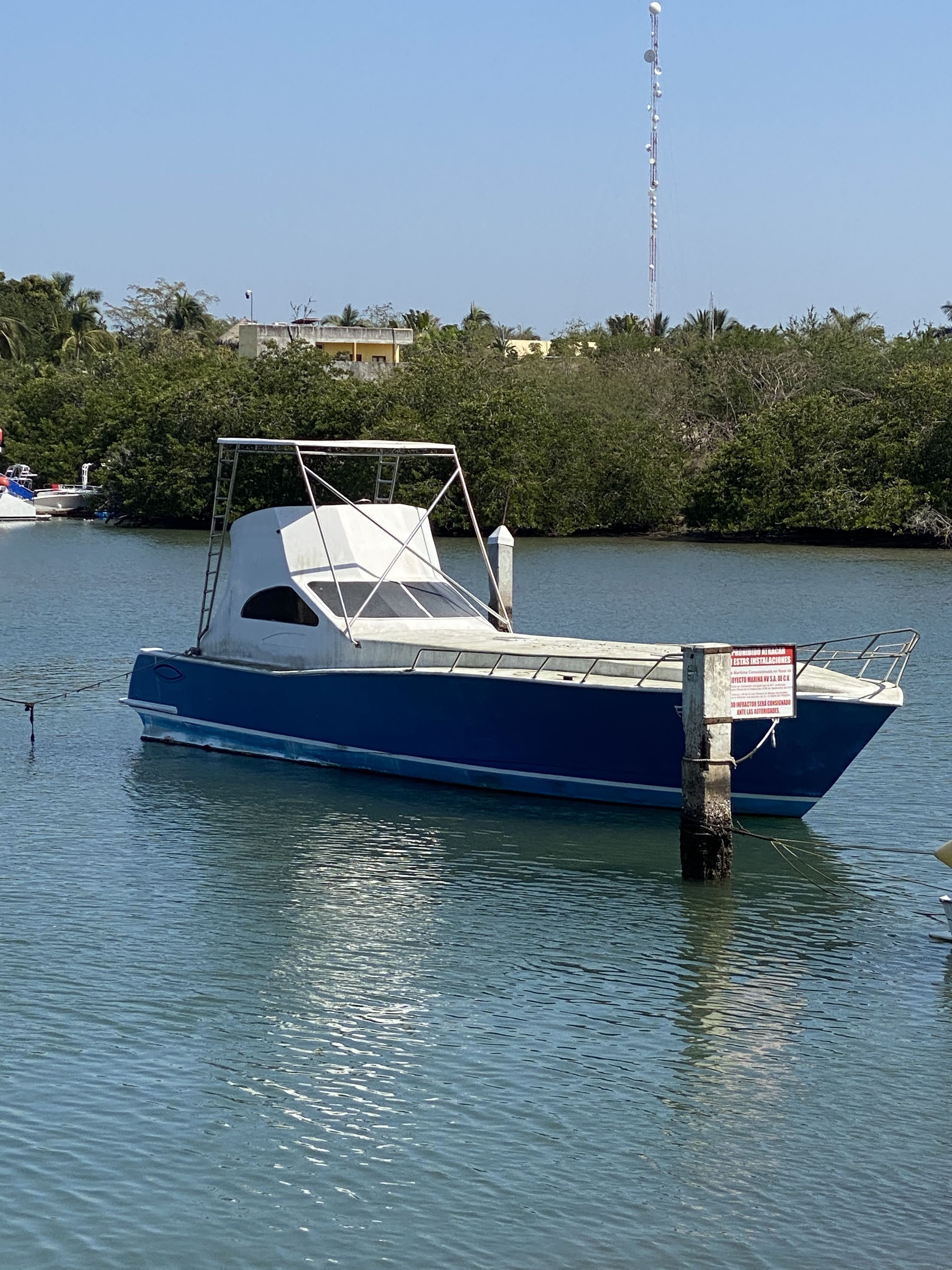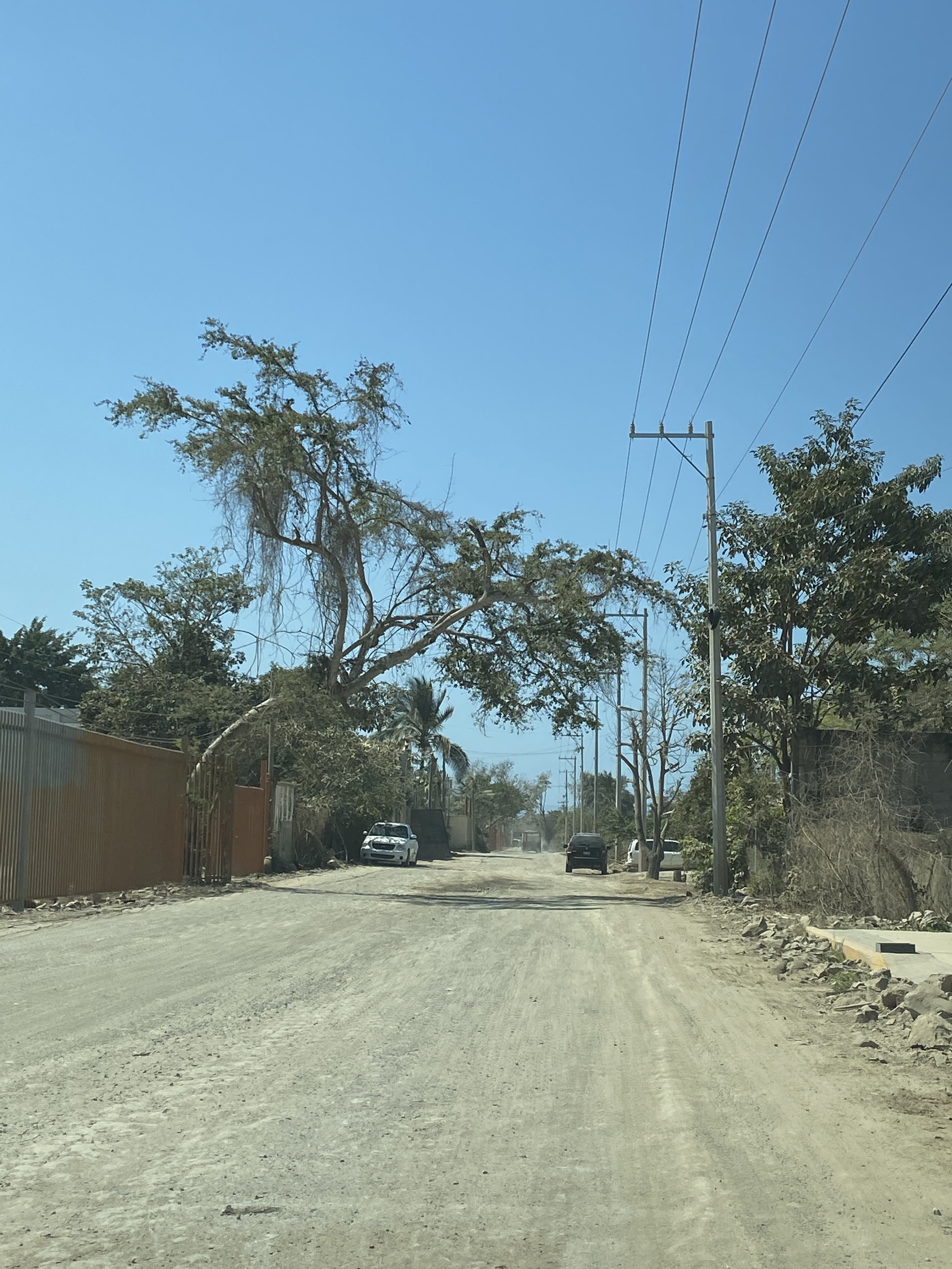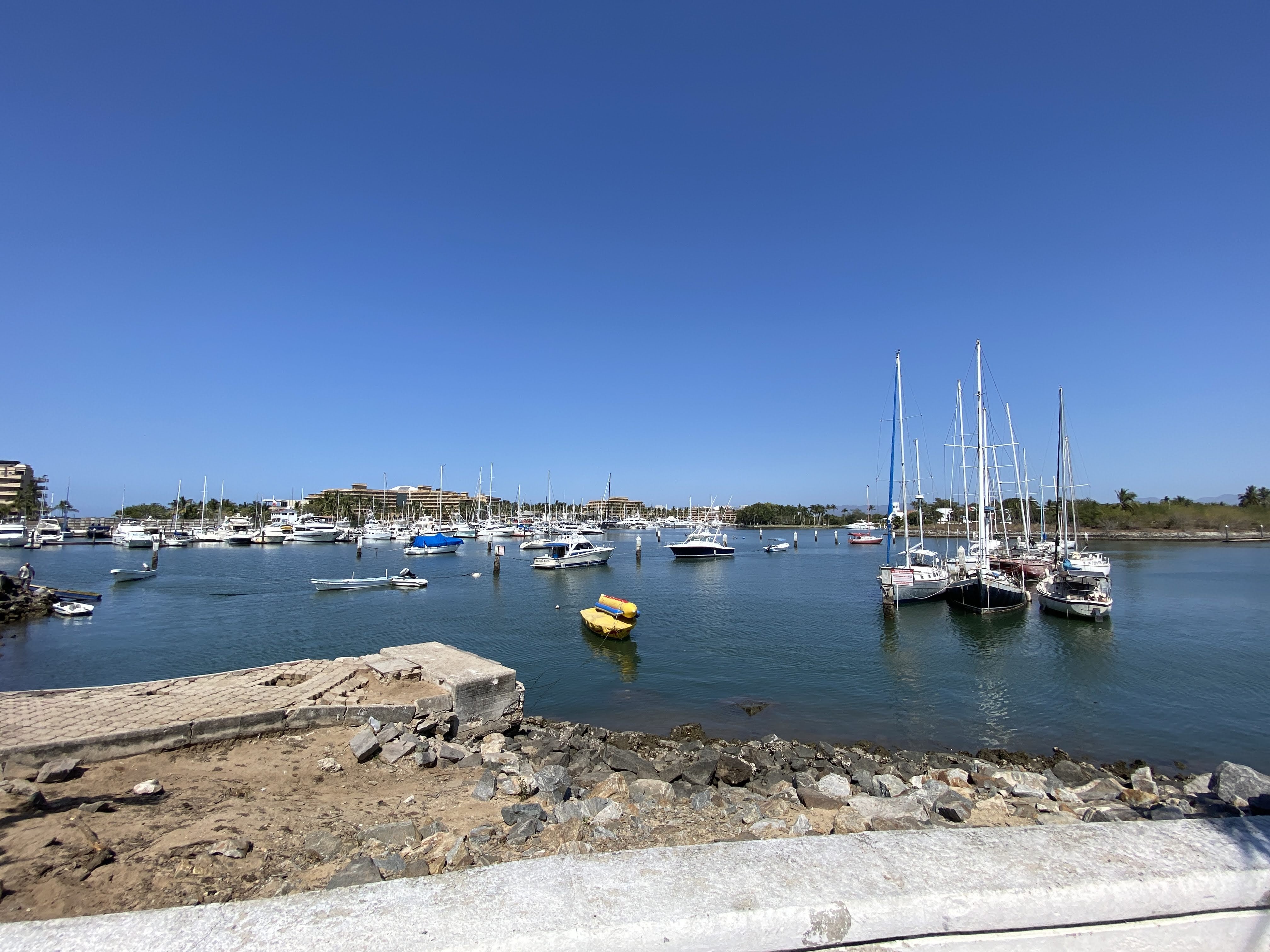 We went for breakfast at La Isla. Andreas wasn’t too busy so he came to chat with us a few times. We had decided to go walk around the bigger marina in Nuevo located on the other side of the river. There were a lot of pretty boats, a few good restaurants and lots of big condo buildings. It looked old and in need of TLC. Andreas had told us about a place where we could see crocodiles in the wild on the way to Boca de Tomates so we decided to go check it out. We had to take a dirt road right before the airport for about 1 mile. It was really dusty and I found so many cars completely covered in dust. We saw amazing trees, lots of mangroves and a huge beehive.
