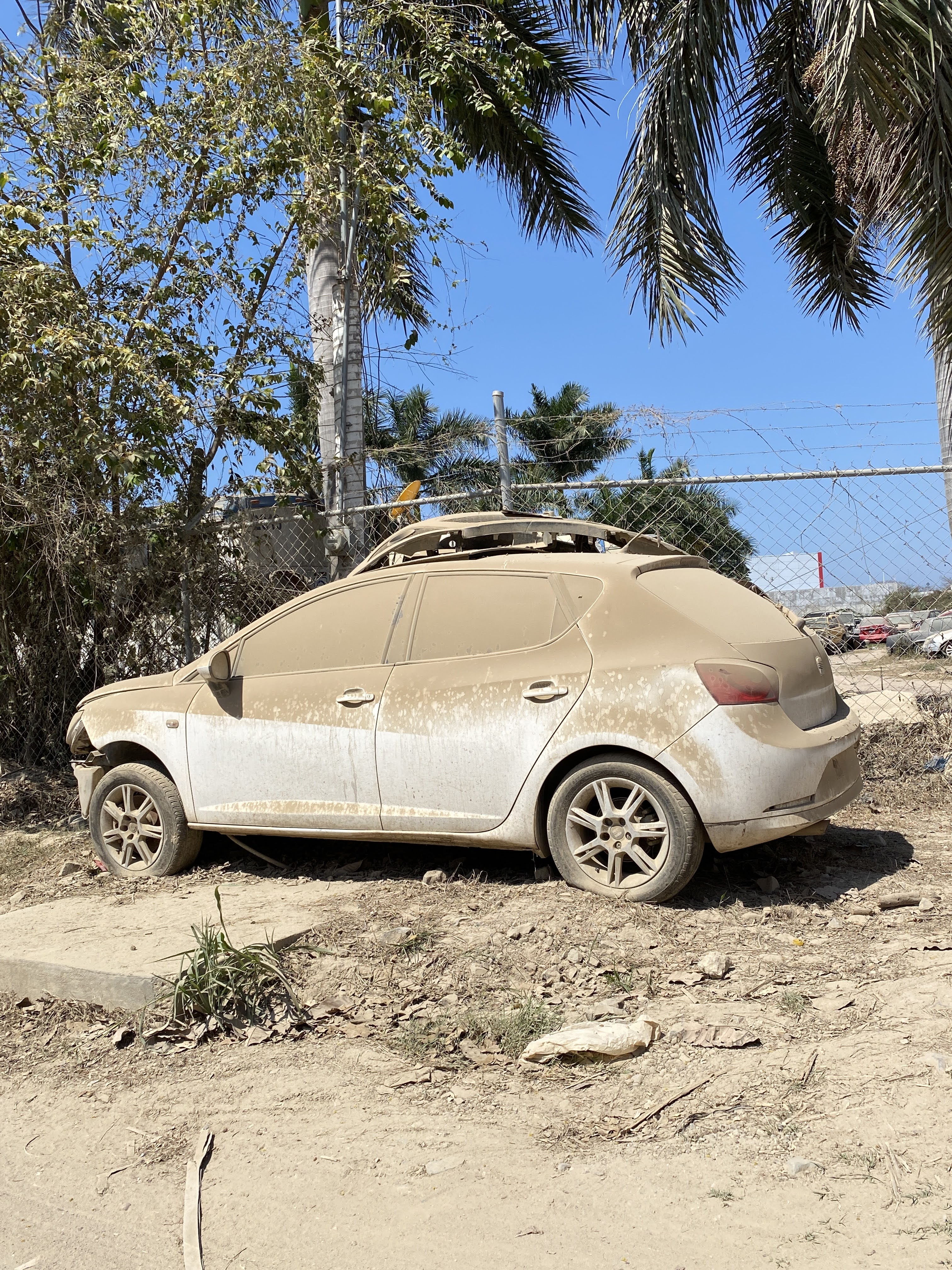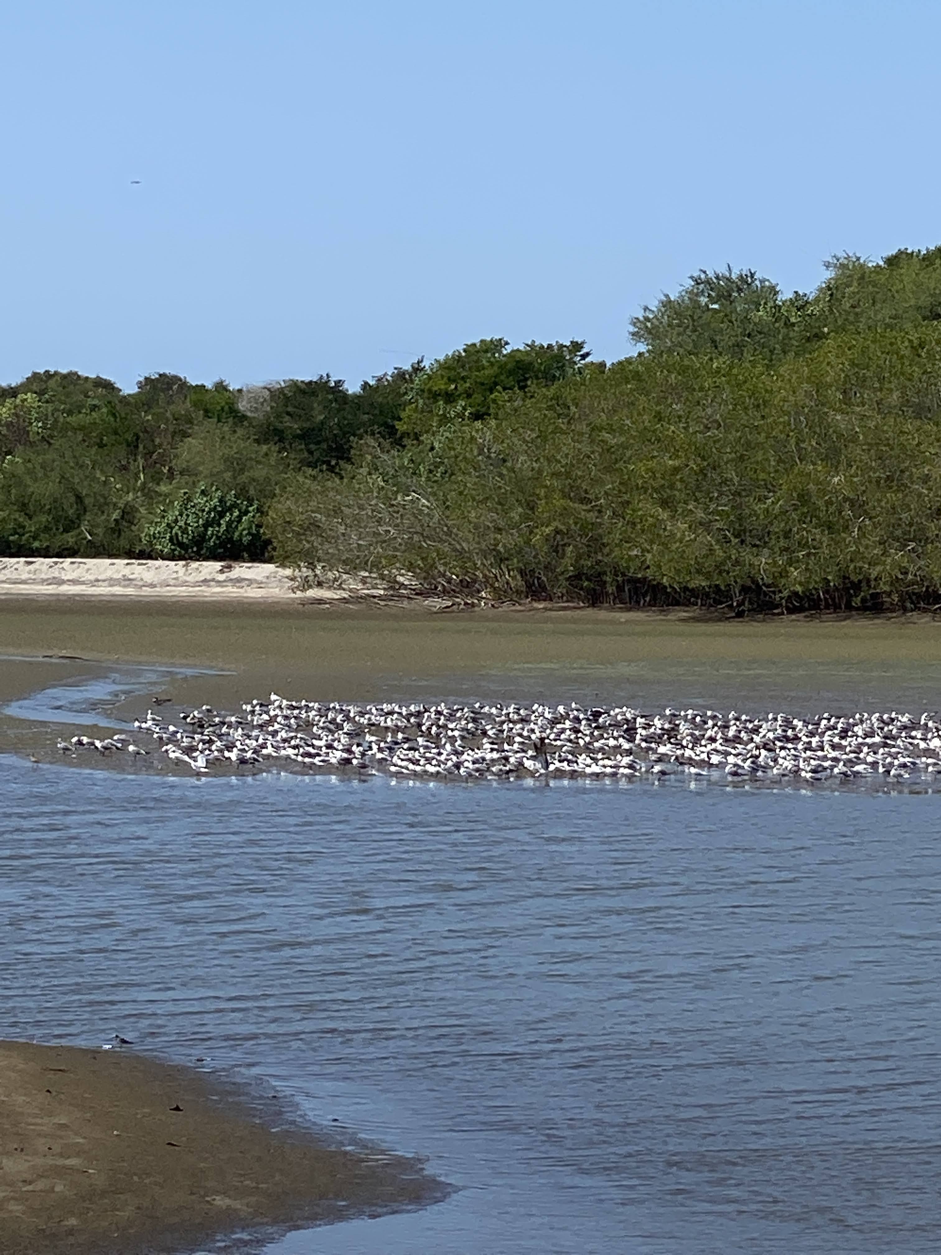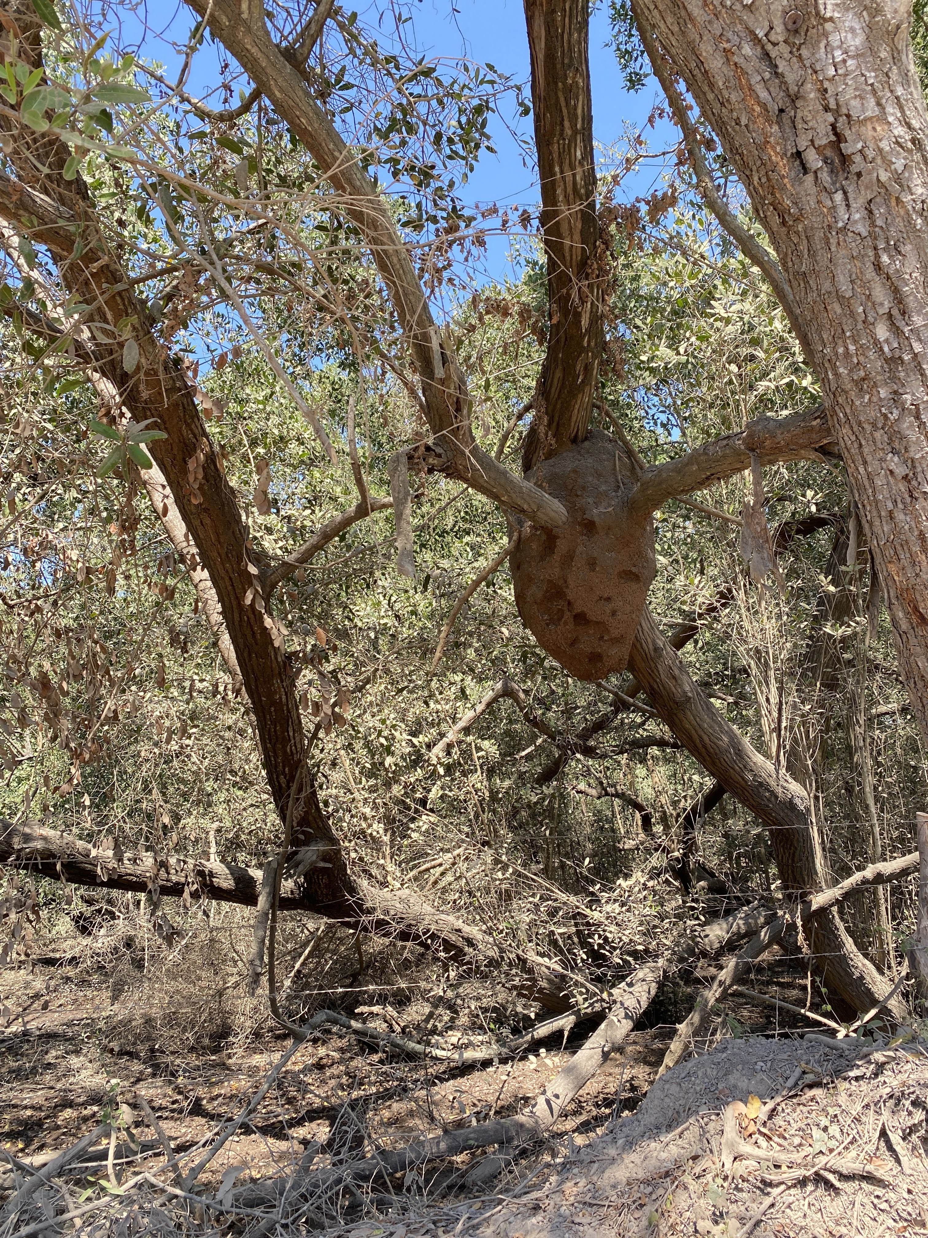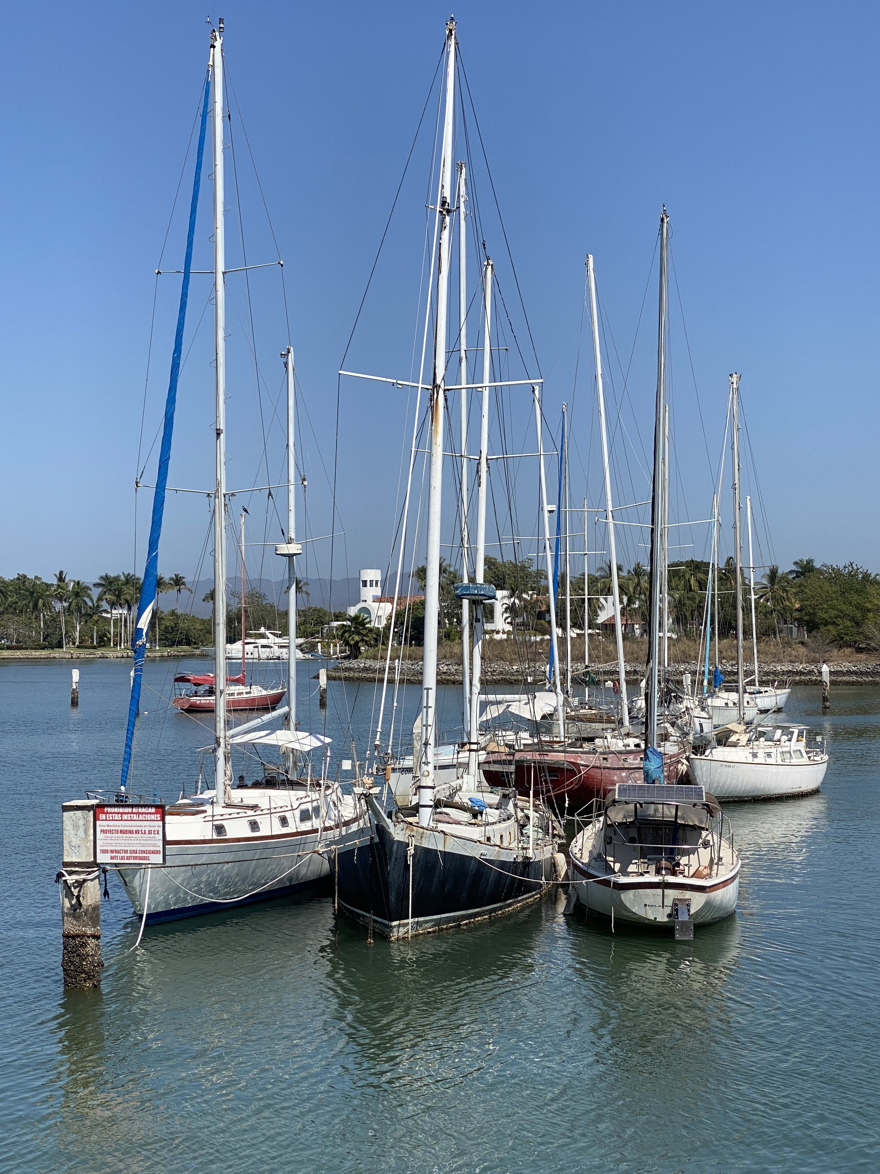 We went for breakfast at La Isla. Andreas wasn’t too busy so he came to chat with us a few times. We had decided to go walk around the bigger marina in Nuevo located on the other side of the river. There were a lot of pretty boats, a few good restaurants and lots of big condo buildings. It looked old and in need of TLC. Andreas had told us about a place where we could see crocodiles in the wild on the way to Boca de Tomates so we decided to go check it out. We had to take a dirt road right before the airport for about 1 mile. It was really dusty and I found so many cars completely covered in dust. We saw amazing trees, lots of mangroves and a huge beehive.