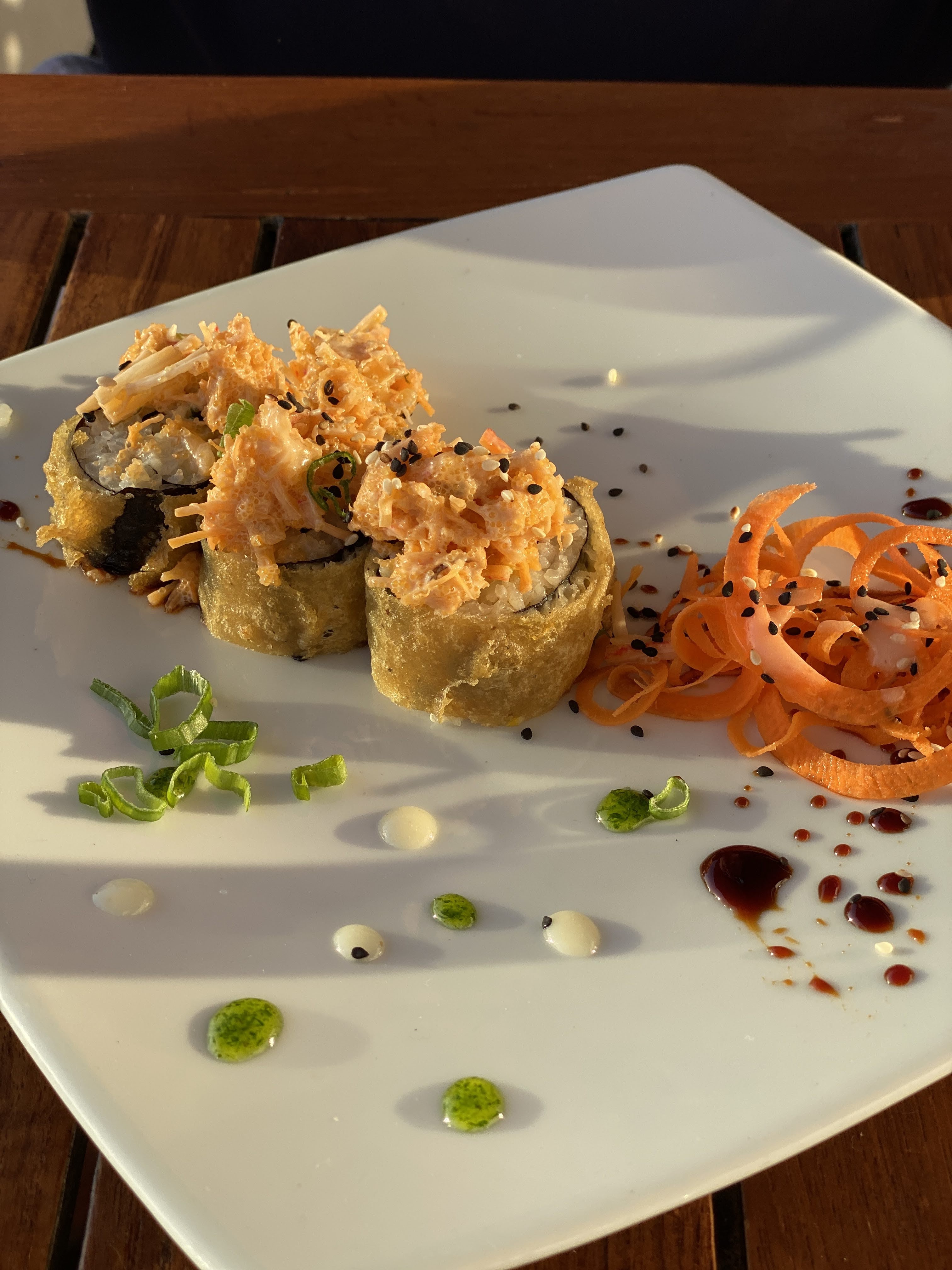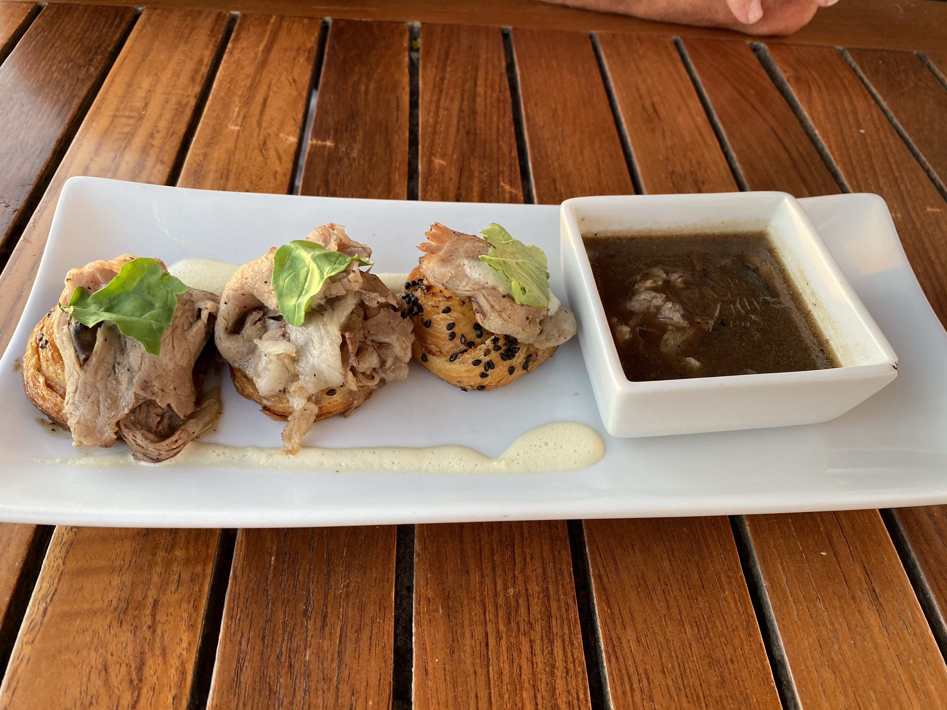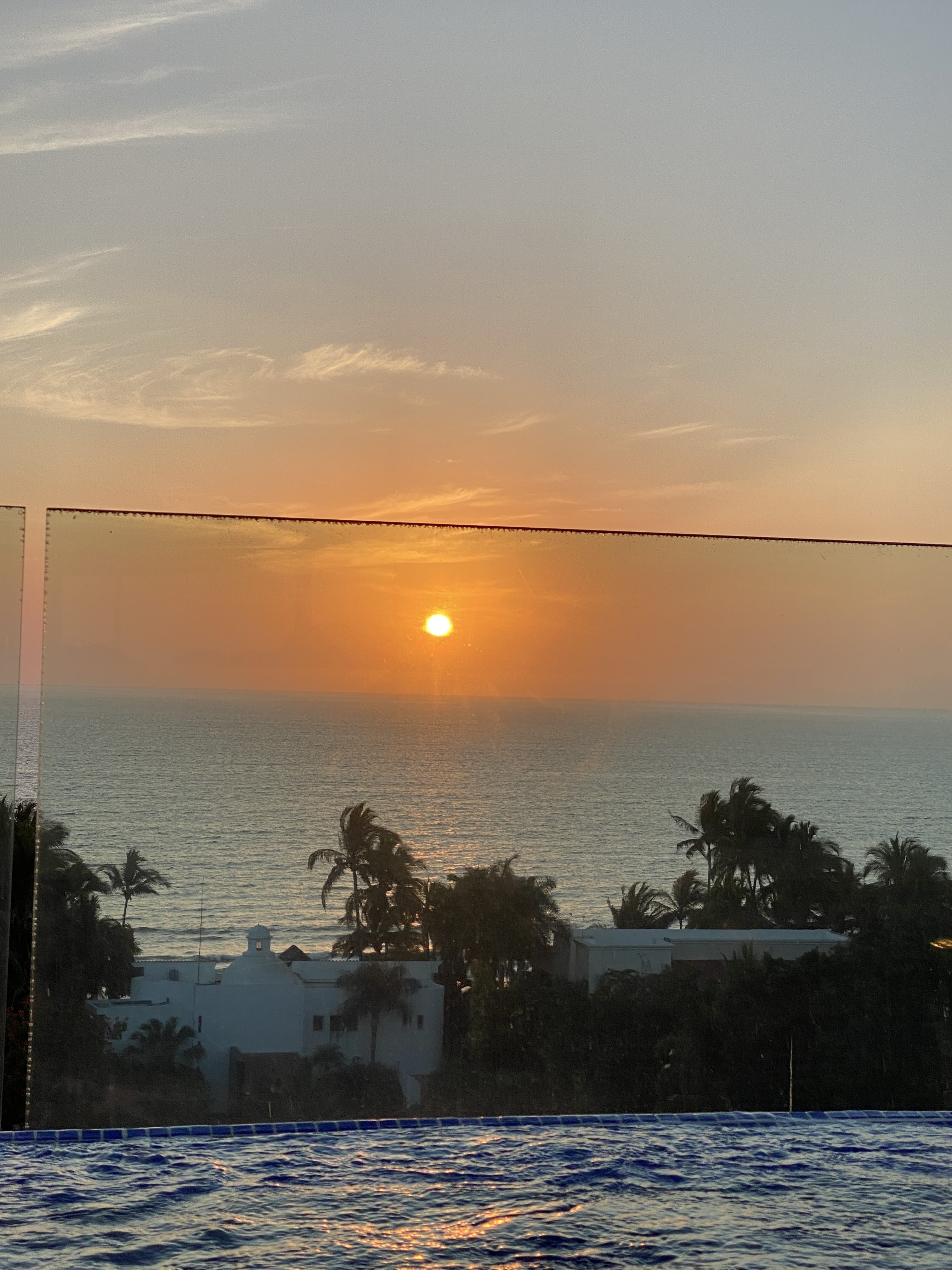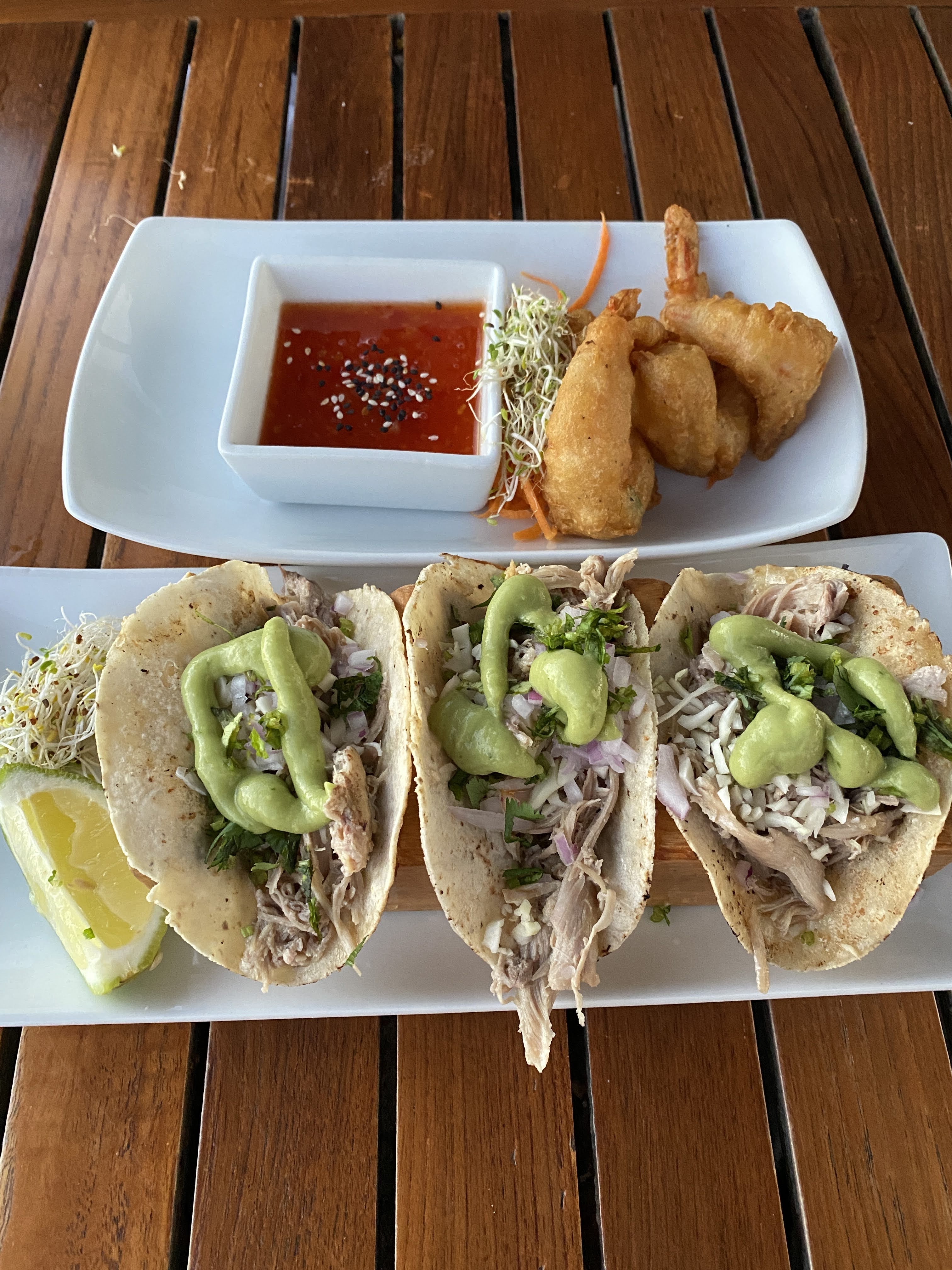 We went to an early dinner at La Insu Sky Bar, at the Marival Hotel for tapas. We were lucky to get a table with a great view of the ocean. We had a few drinks, took our time ordering tapas and watched the sunset. We shared 6 plates and were not too full but satisfied. We had pork dumplings, tequila shrimp, shrimp tempura, duck tacos, roast beef bites and some kind of shrimp sushi thingy. Everything was delicious.