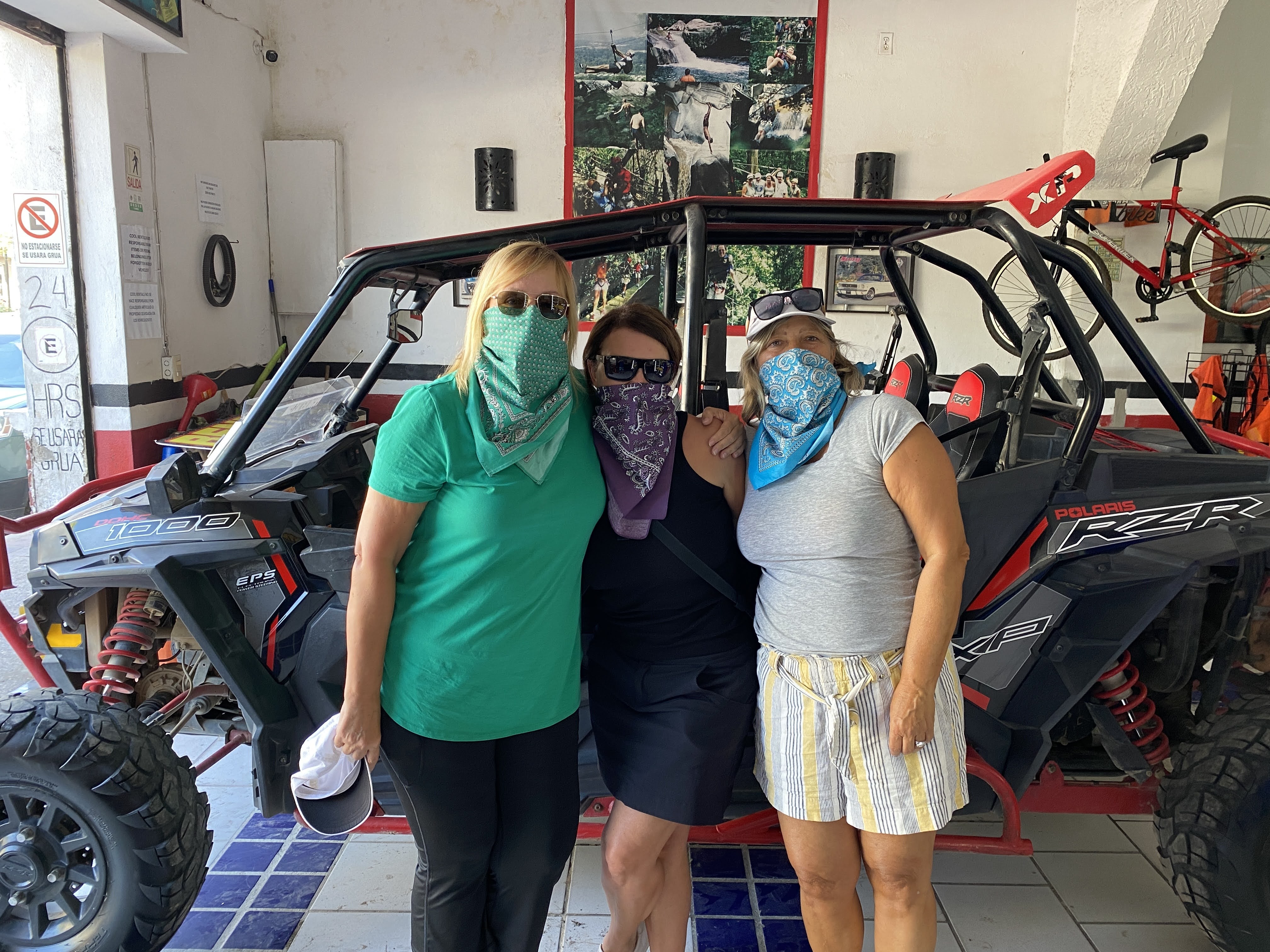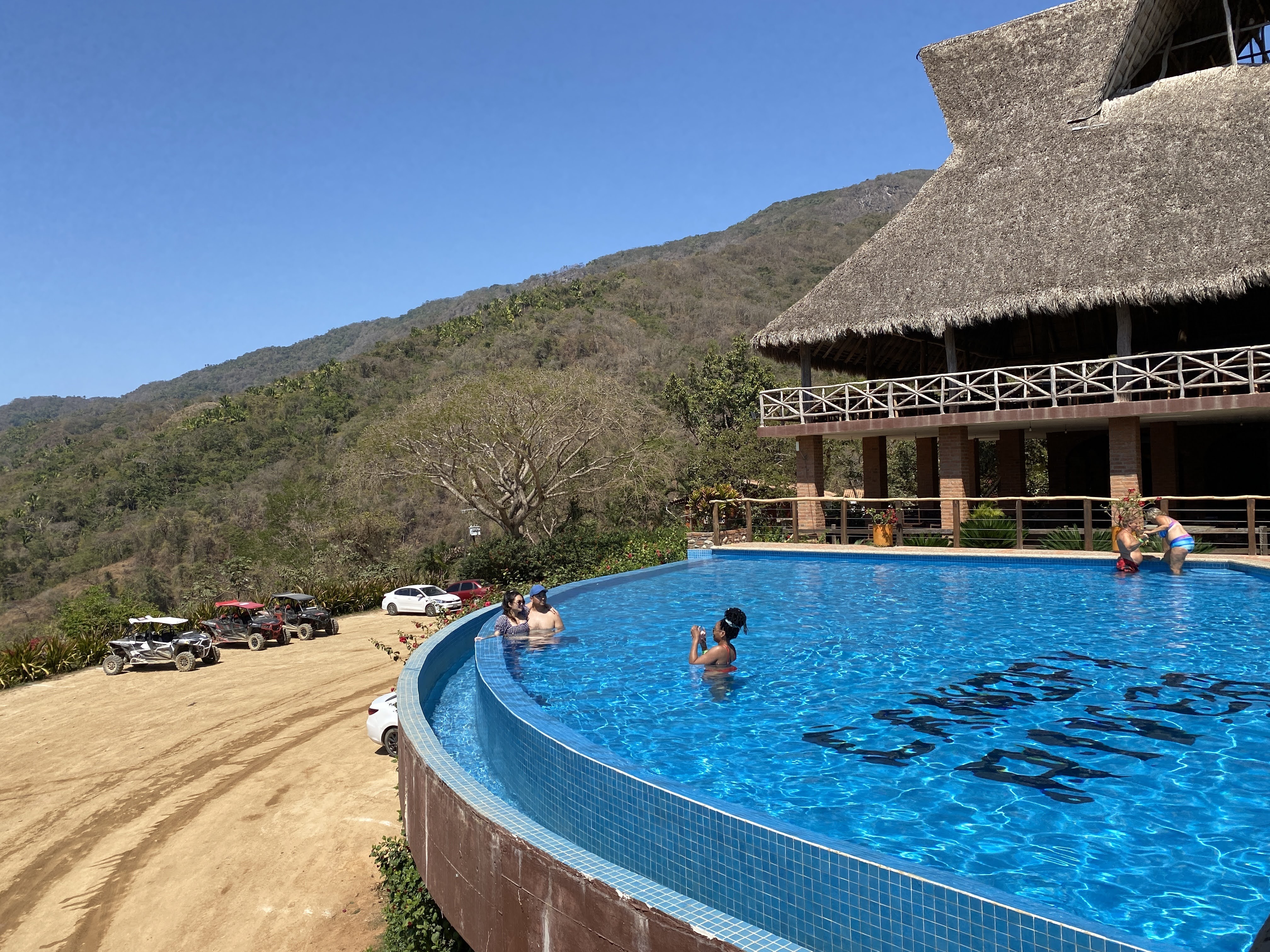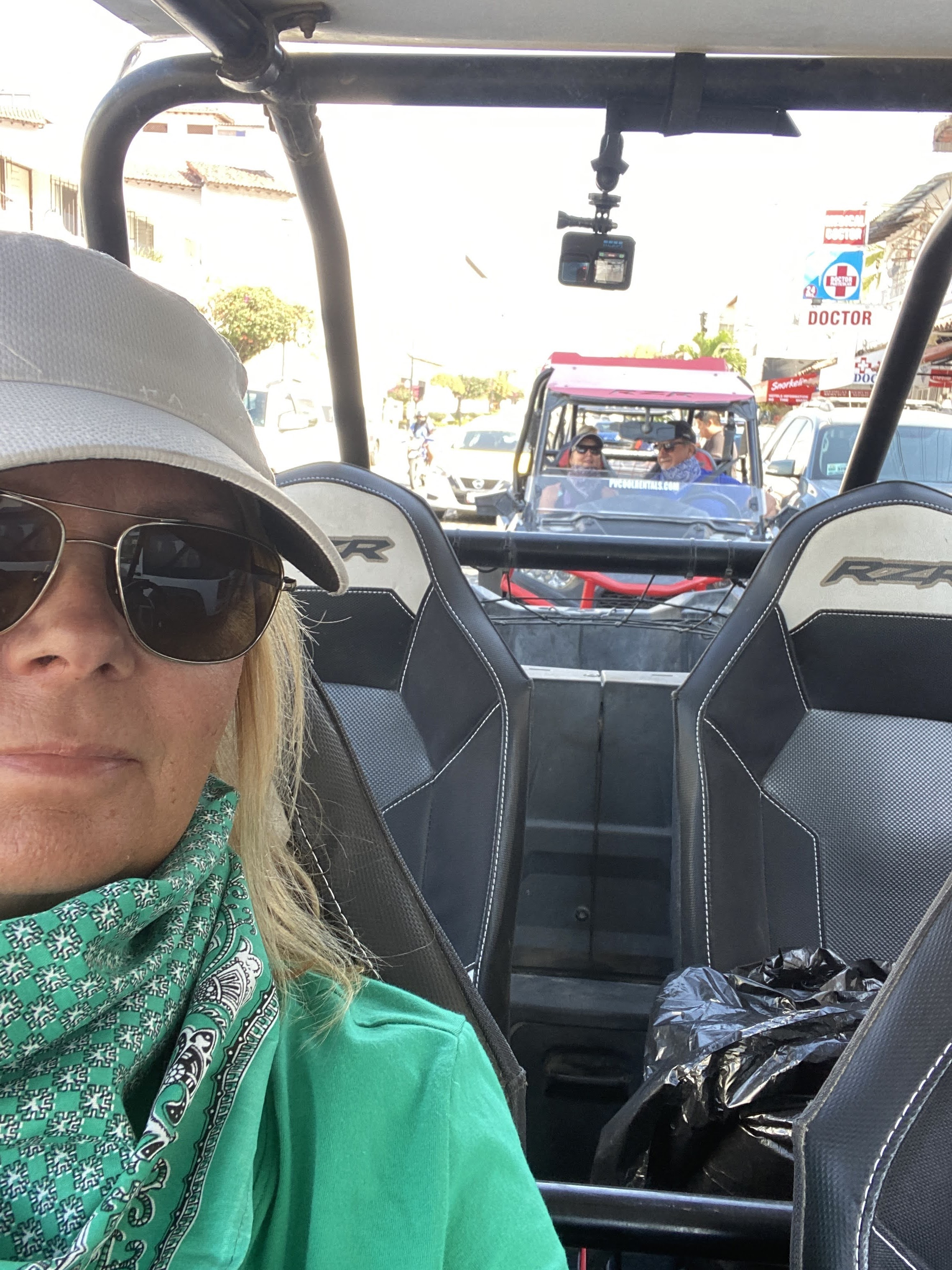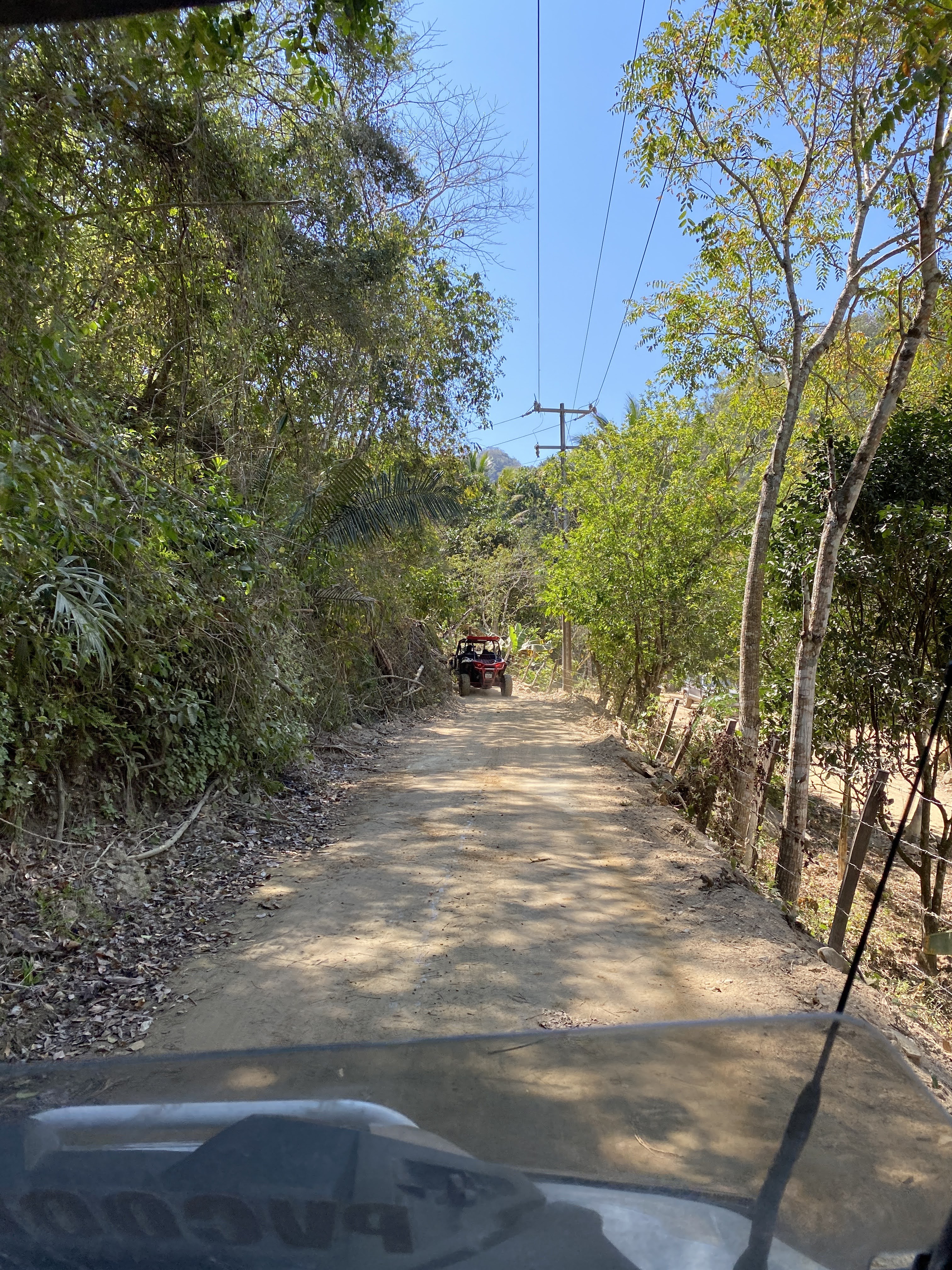 We met our friends at 9:30am and took a taxi to Puerto Vallarta to start our next adventure. We had rented 3 RZRs (small four wheel-drive off-road vehicles). After doing the paperwork and going for a trial run with Junior, the employee, we were on our way. We first went up the mountain to Las Carmelitas, a restaurant with apparently THE view of PV but the road up there wasn’t opened until 1pm. A local man, seeing us talking about our next step, invited us on his property to see his view of PV and it was great.