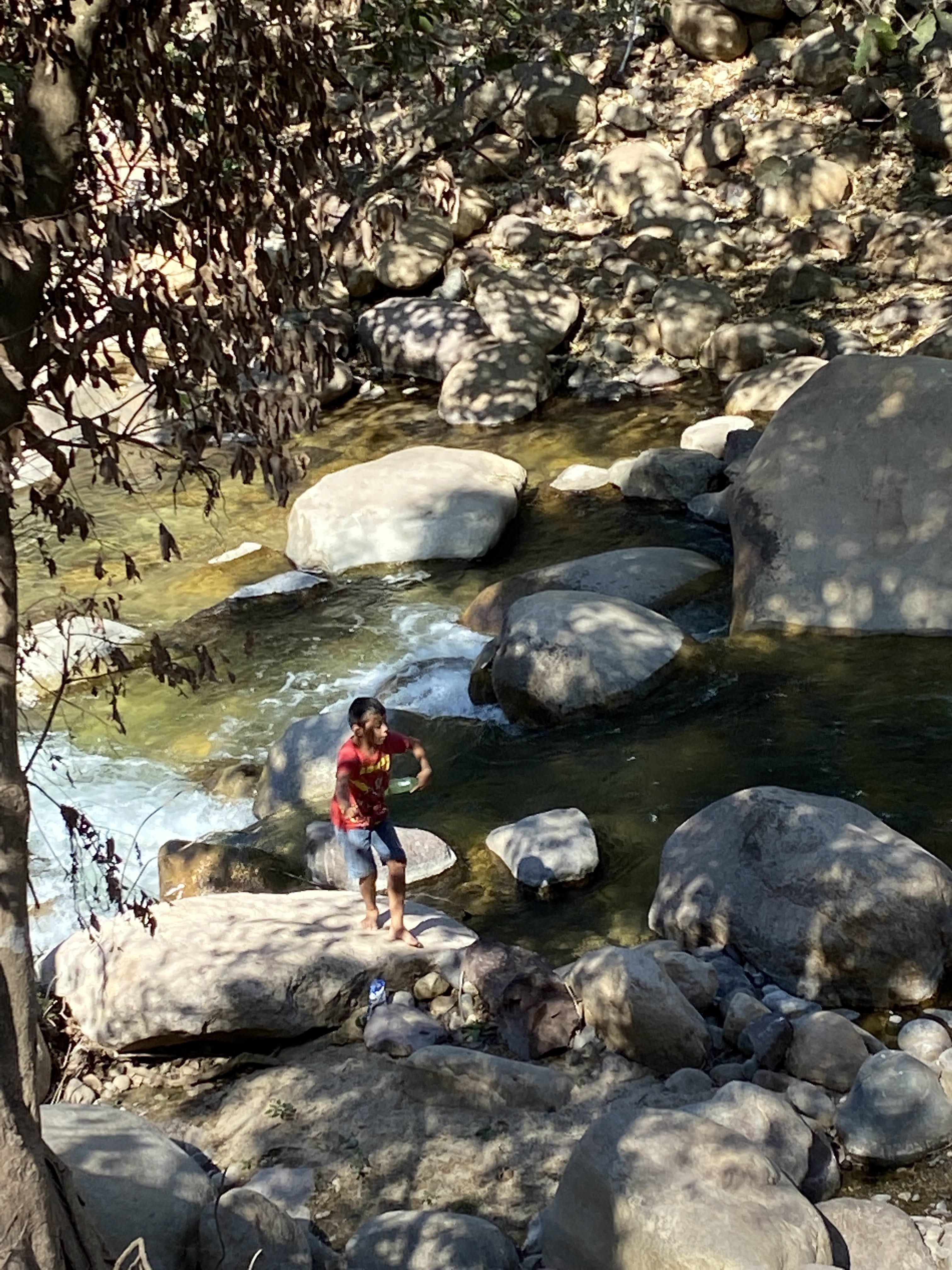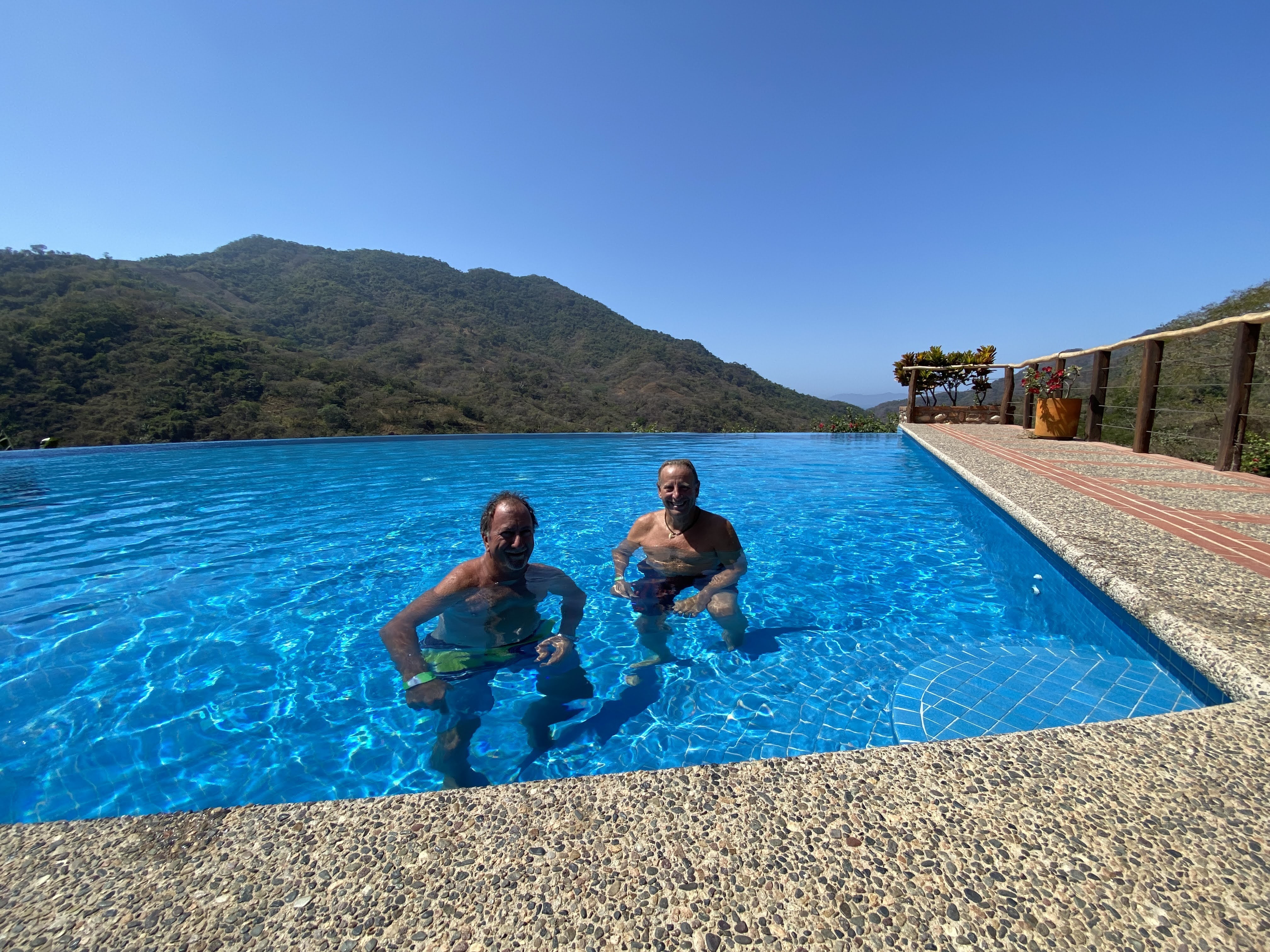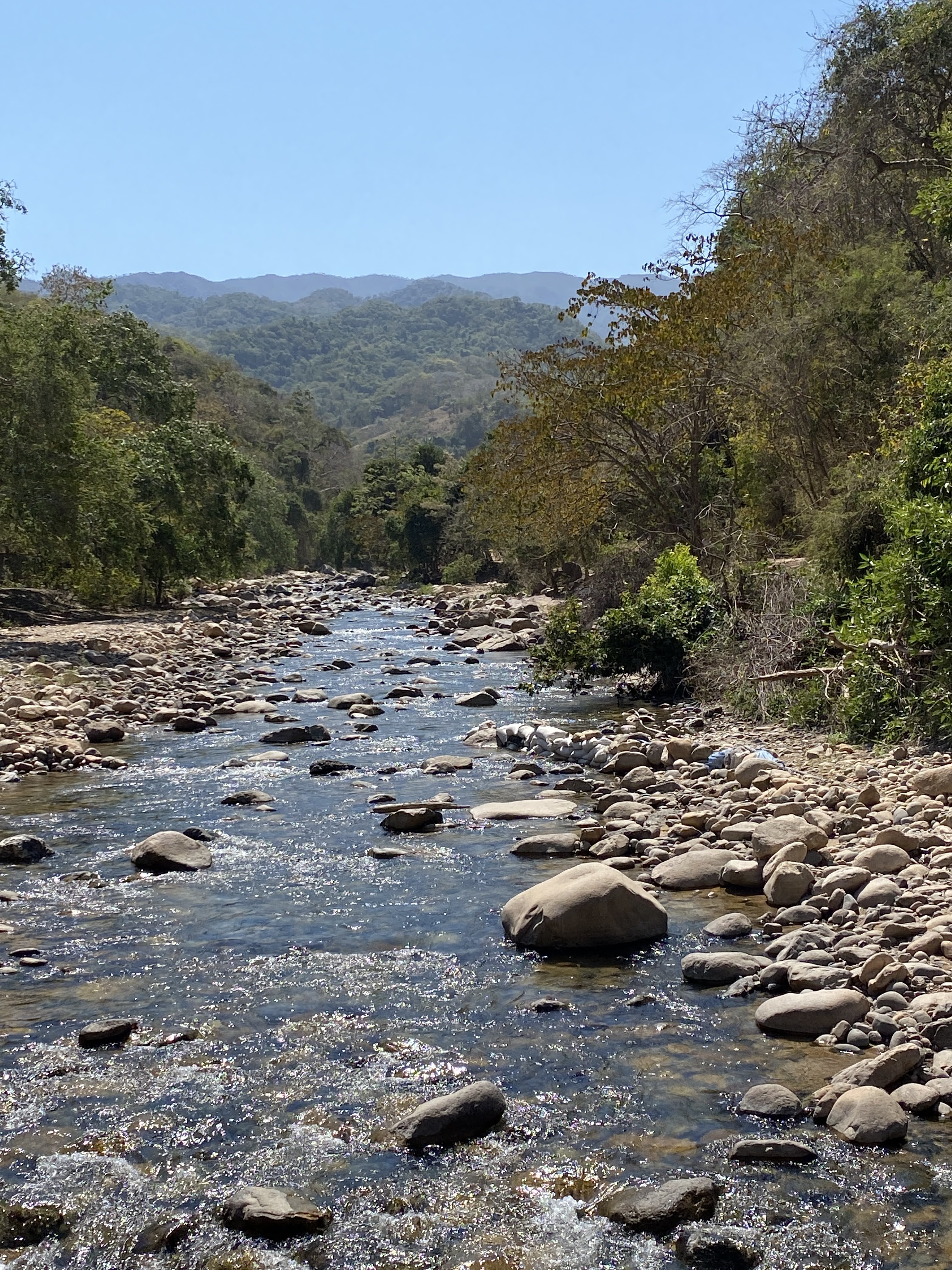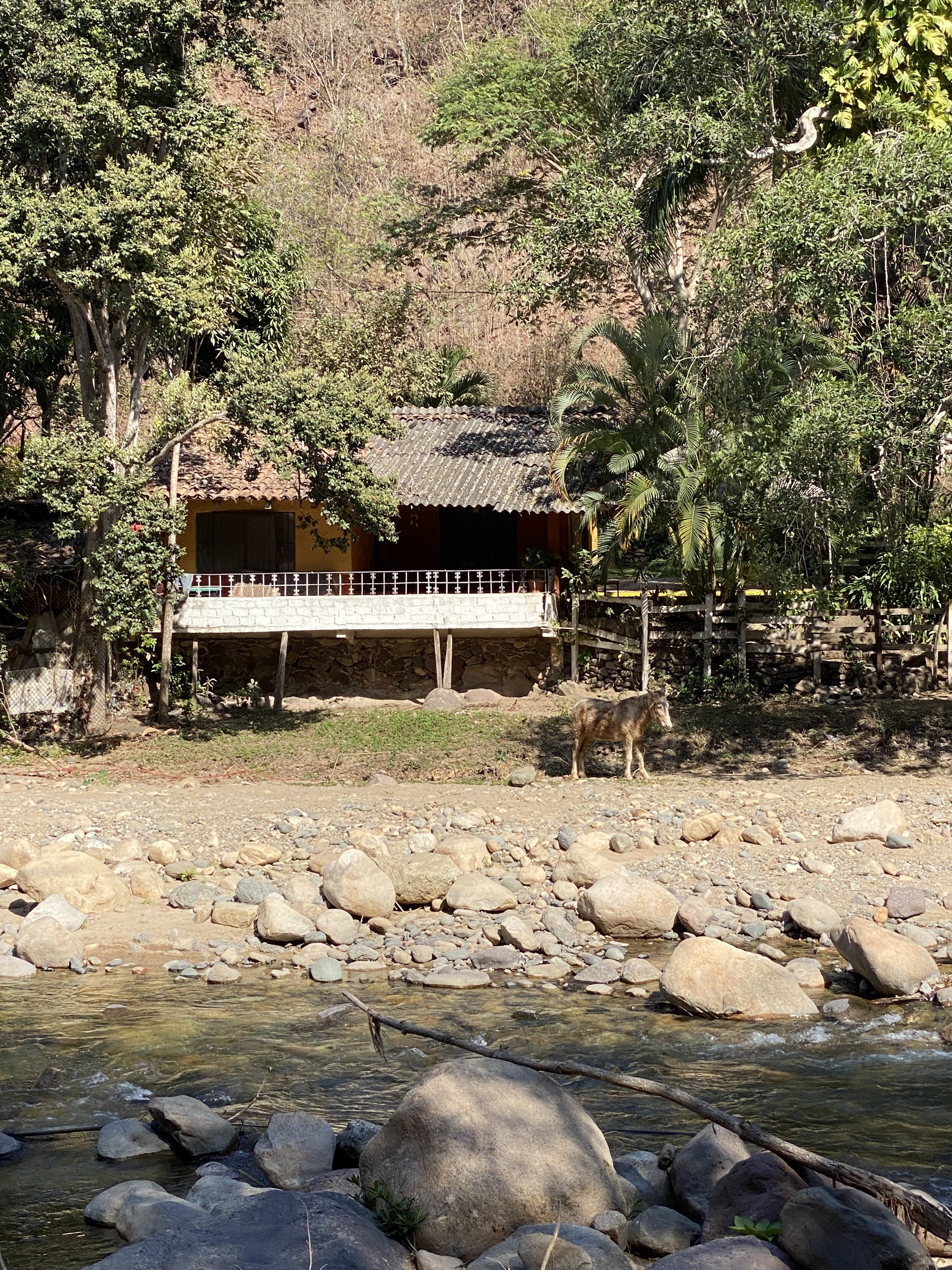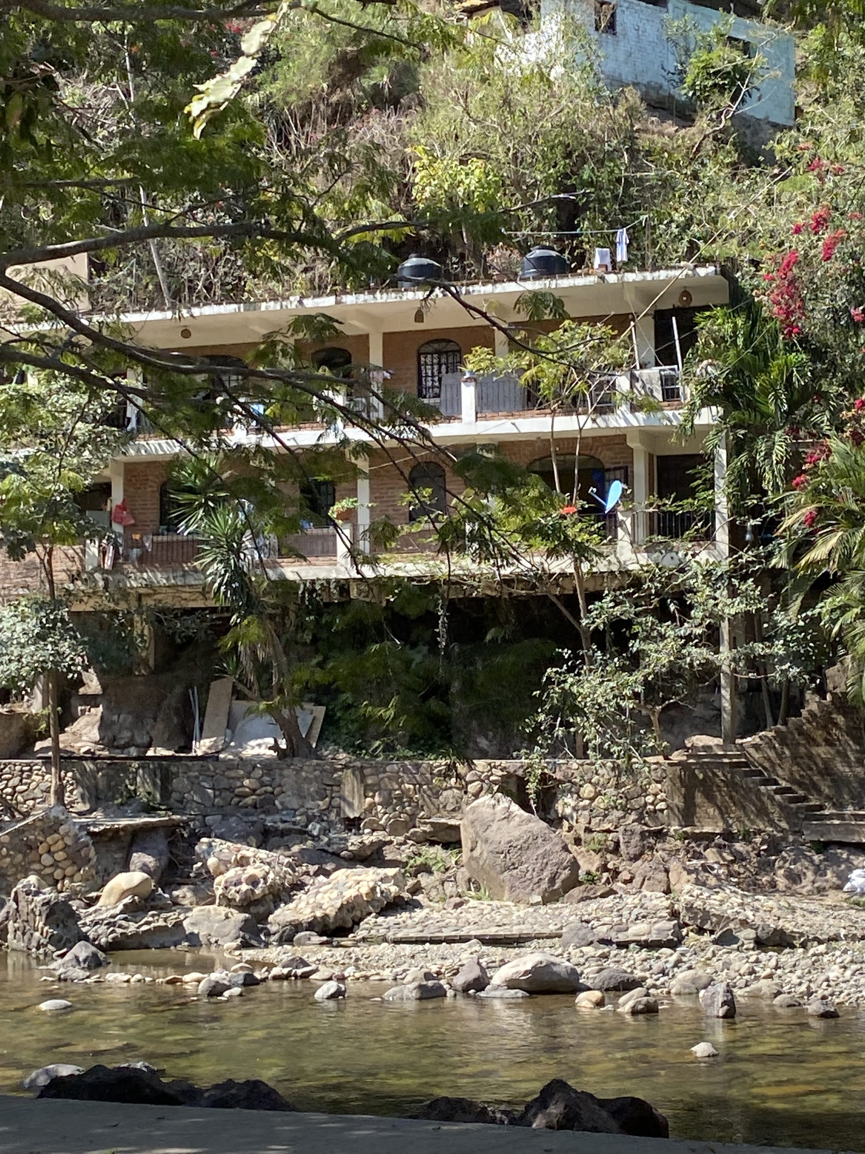 We had asked Junior for suggestions about places to go. He said to go in the mountains where Canopy River, an adventure tour company, is located. Leaving PV, we saw a lot of construction due to damages caused by the last hurricane. The raging waters from it had taken bridges and roads off and flooded neighborhoods. We went through a little village called Paso del Guayabo. We stopped at a small destileria to get a juice. They tried to have us do a tasting of their flavored tequilas but we resisted. We drove all over narrow and very dusty roads. We saw some nice vistas, got close to the river Cuale a few time but nothing that interesting.