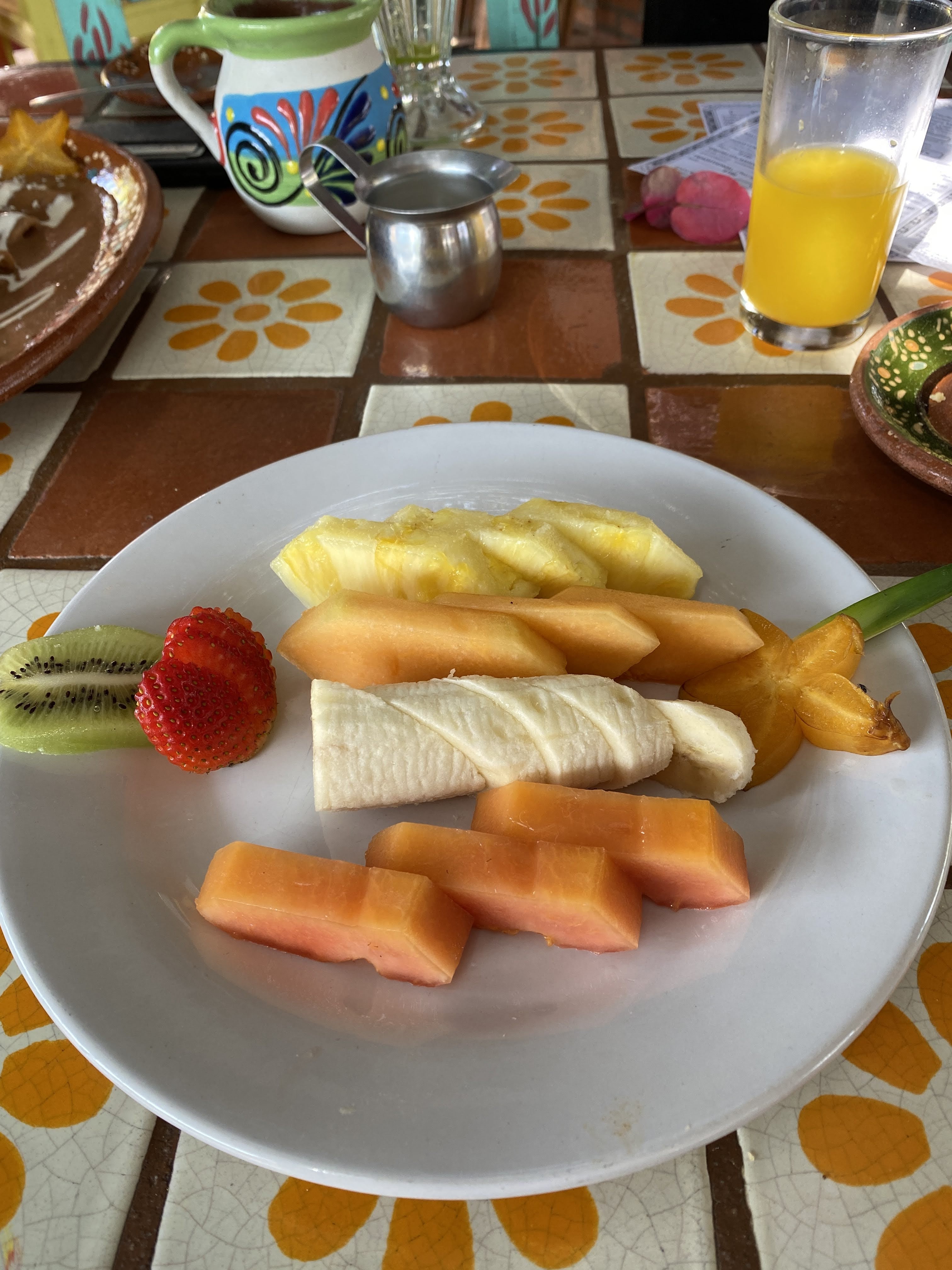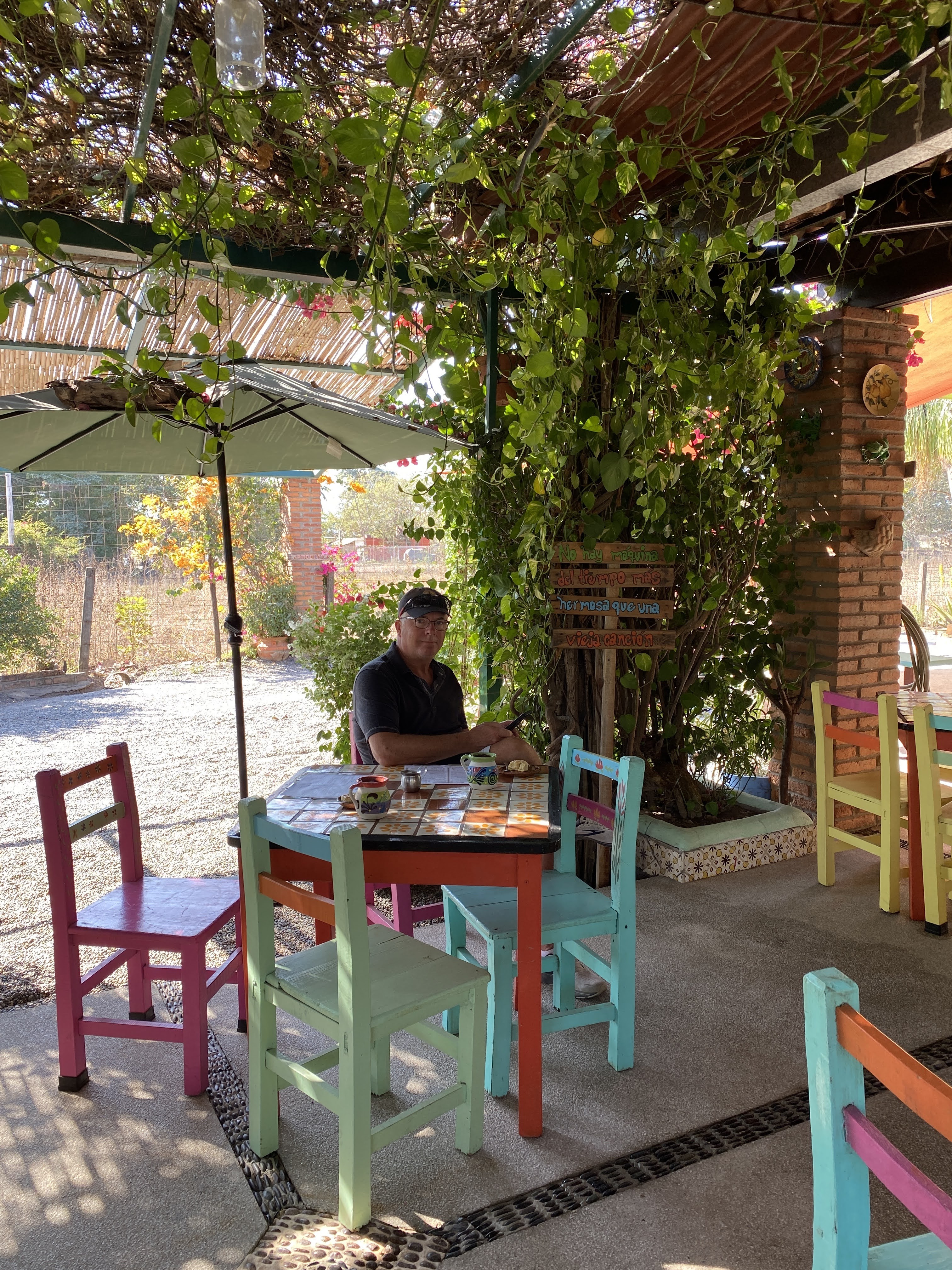 While Marta cleaned the condo, we went to a new restaurant I had spotted out on one of our drive called Hacienda Mamá Nena. It is a family owned restaurant located on a very quiet side street and behind a tall wall, that just celebrated their 3rd anniversary 2 days ago. We talked to the owner for a while and he told us that they cater to locals mostly and that on Sunday, when families gather with their grandparents, they are really busy with sometimes an hour long wait. They are closed on Mondays. They also own 2 other restaurants; one in PV on the Los Muertos beach and the other on Nuevo Vallarta Boulevard called Café Cuates. I loved the ambiance with all the flowers, pottery and the colorful tables and chairs. The food was good but not as good as La Isla but we definitely want to go back for lunch or an early dinner as they close at 7:30pm.