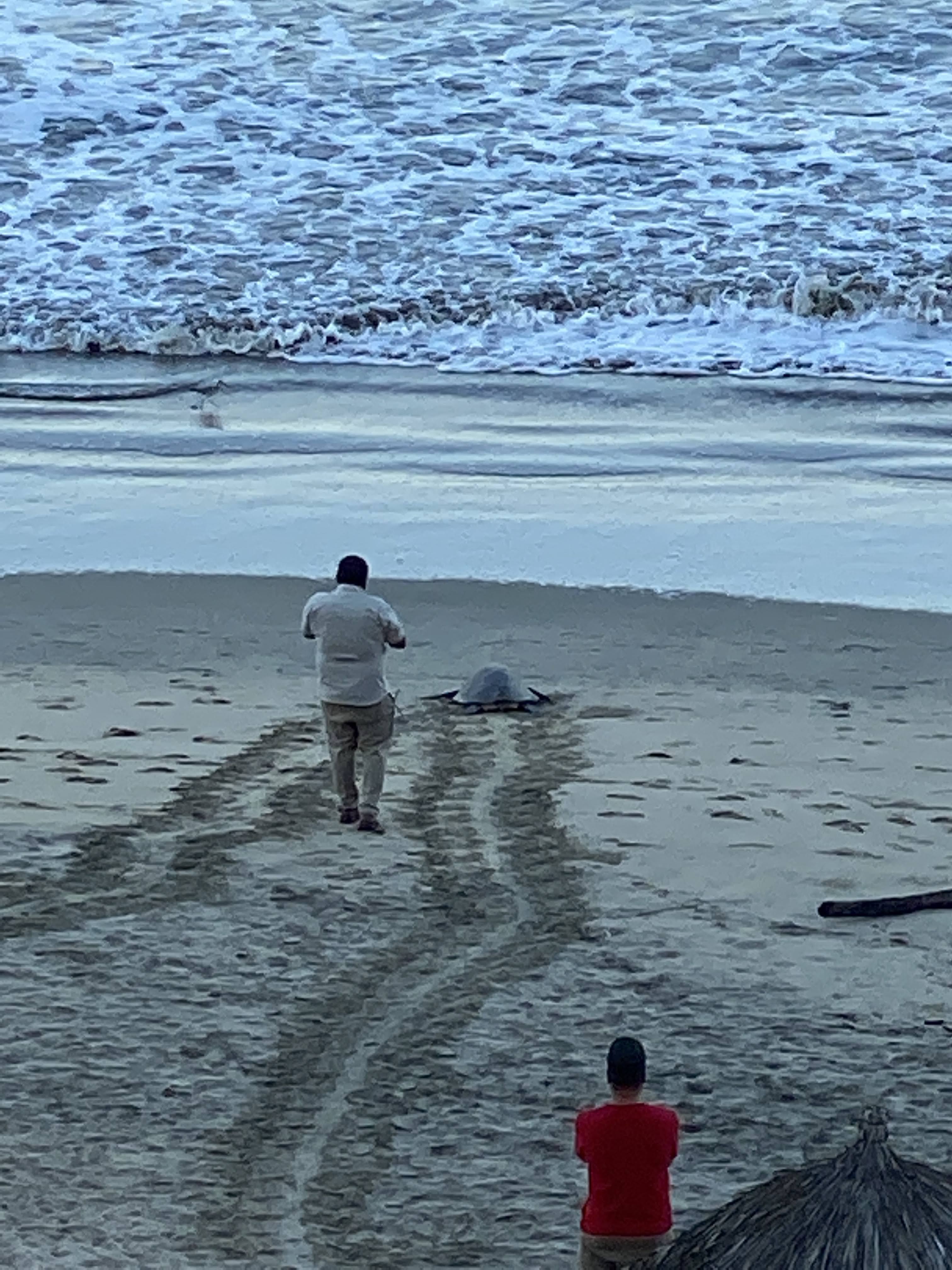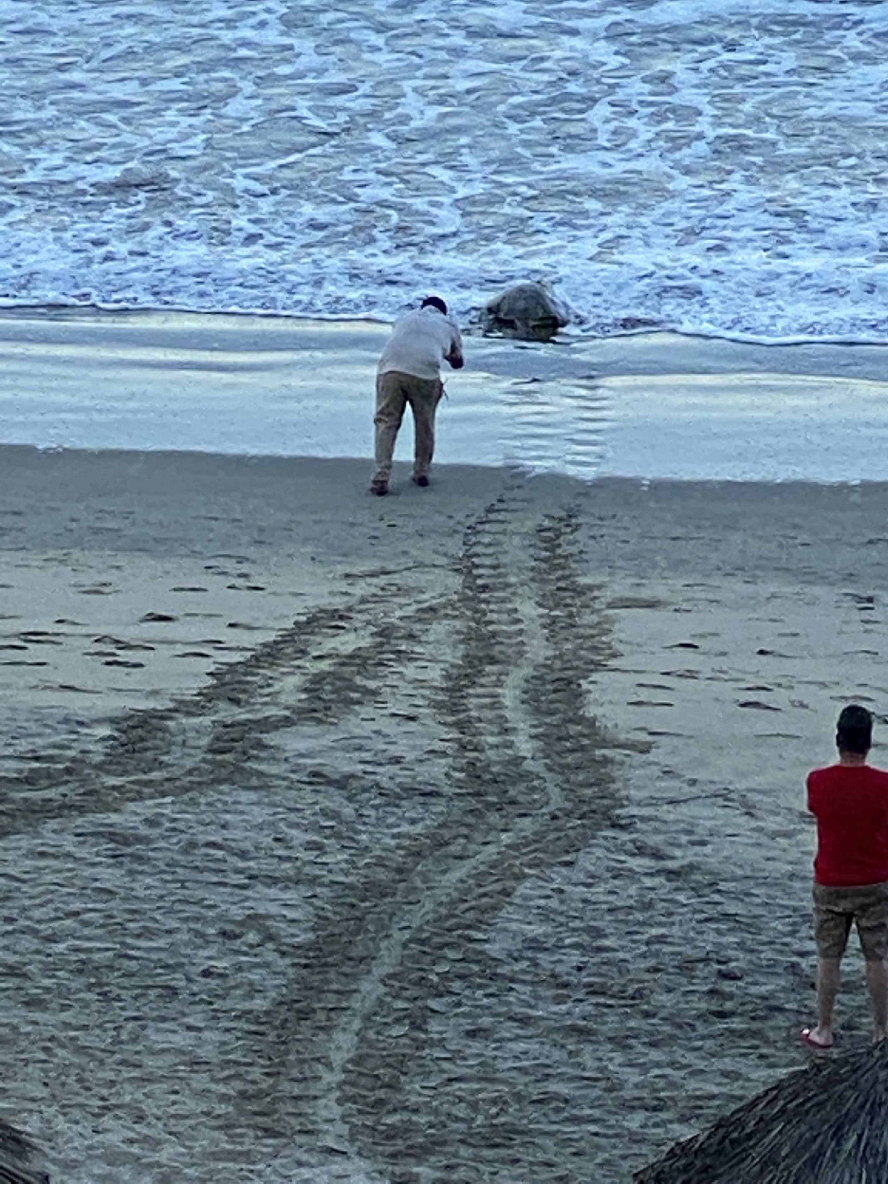 I woke up to our outside camera back home capturing a coyote on our lawn. We also had the same silly squirrel triggering the camera as he does almost every day. And! we saw a huge turtle walking back to the ocean, right in front of our condo! I had seen some weird tracks on the sand, not realizing it was made by turtles (2 according to Alberto, one of the guards) until we saw one turtle making its way to the water. Pogo ran down and made a little movie. Alberto said that they might be back soon since he doesn’t think they had time to lay their eggs. So cool!