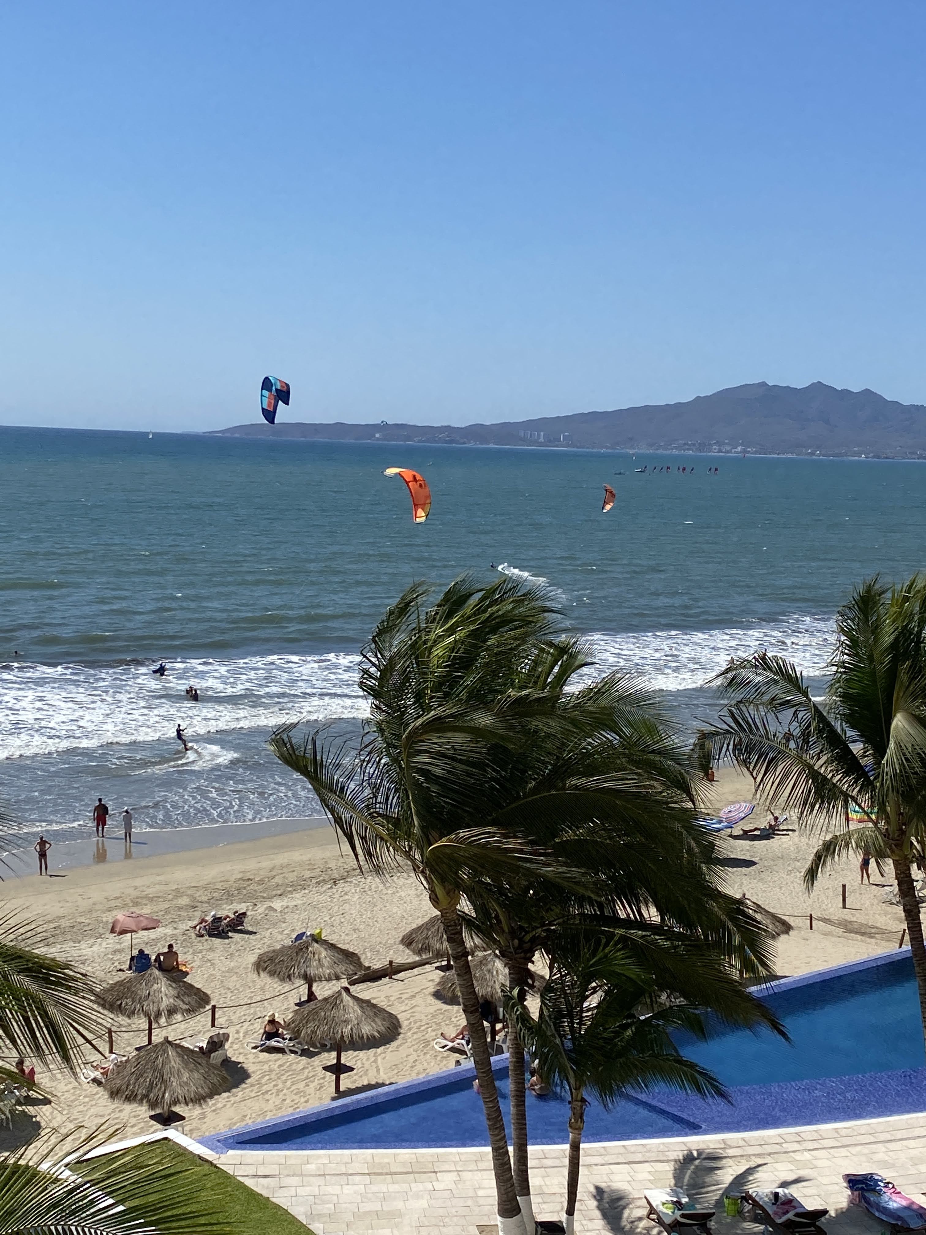 We walked to Starbucks, had our refresher, then walked to La Isla for breakfast. When we came back, the bay was covered with boats! I had never seen so many, like probably 100 small sailboats, a dozen racing windsurfers as well as a bunch of kitesurfers. It stayed busy until around 4:30pm.