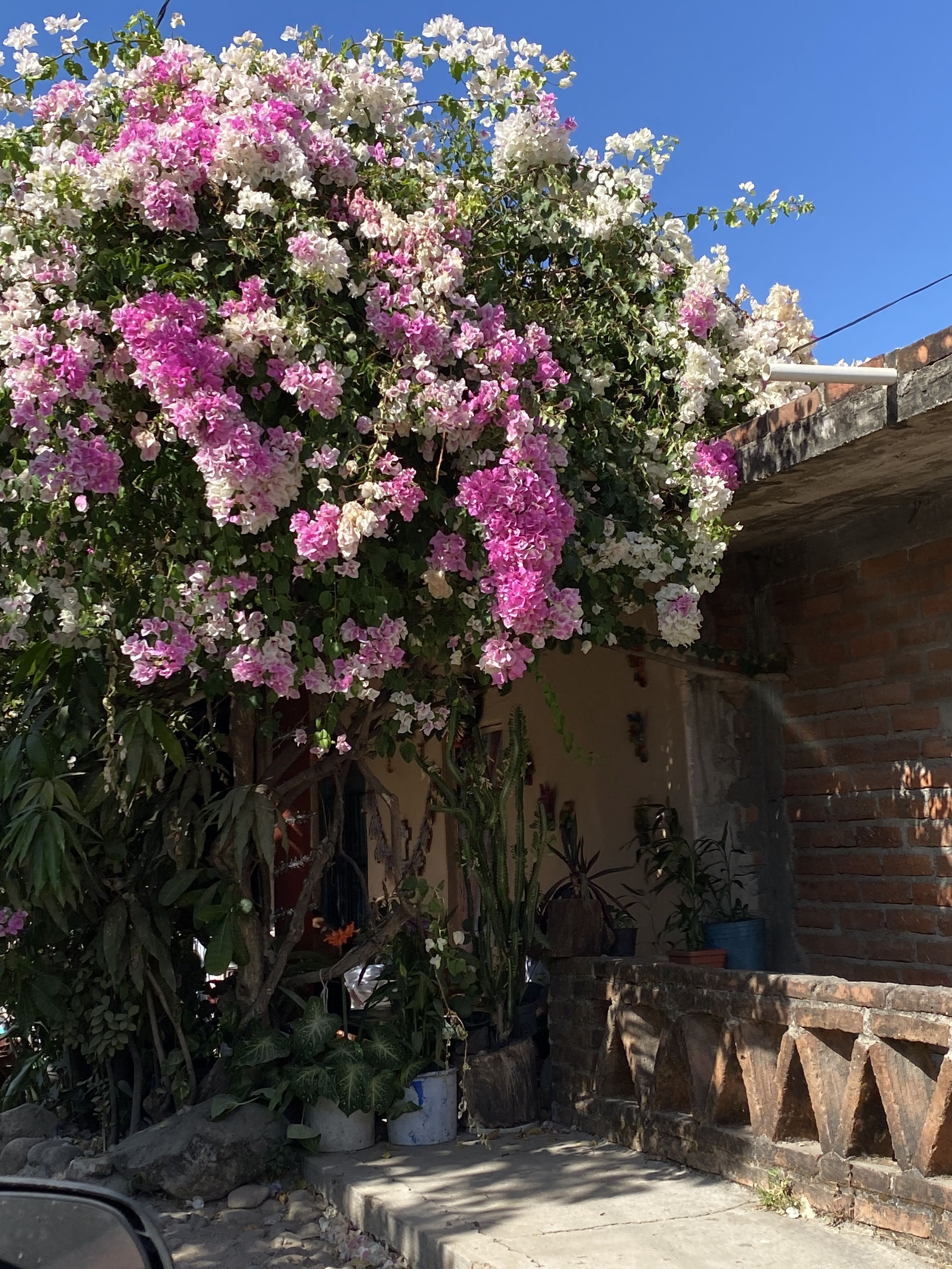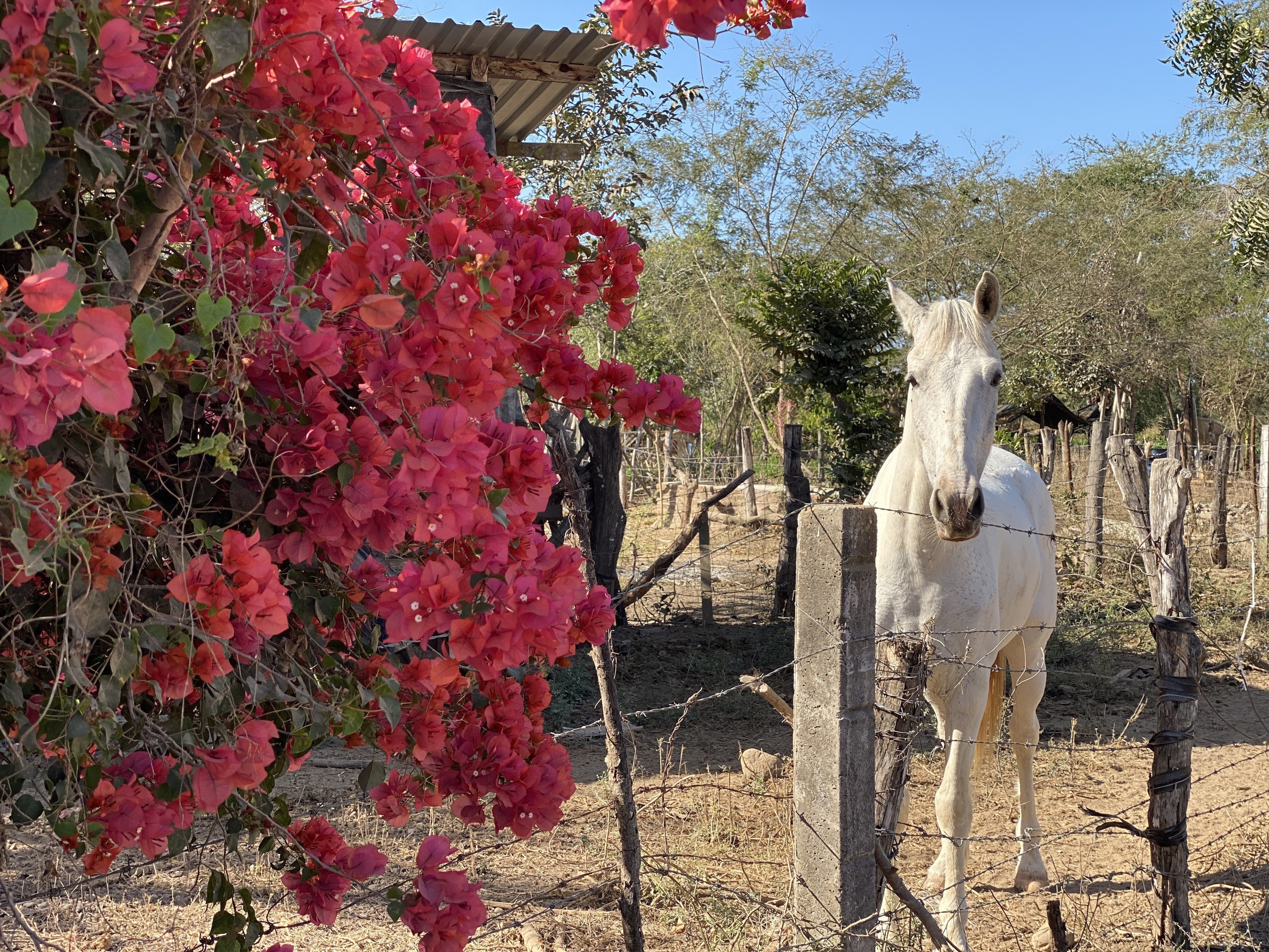 We stopped at a very small and dilapidated ranch to take pictures of a horse surrounded by beautiful bougainvilleas. The flowers are just exploding right now.