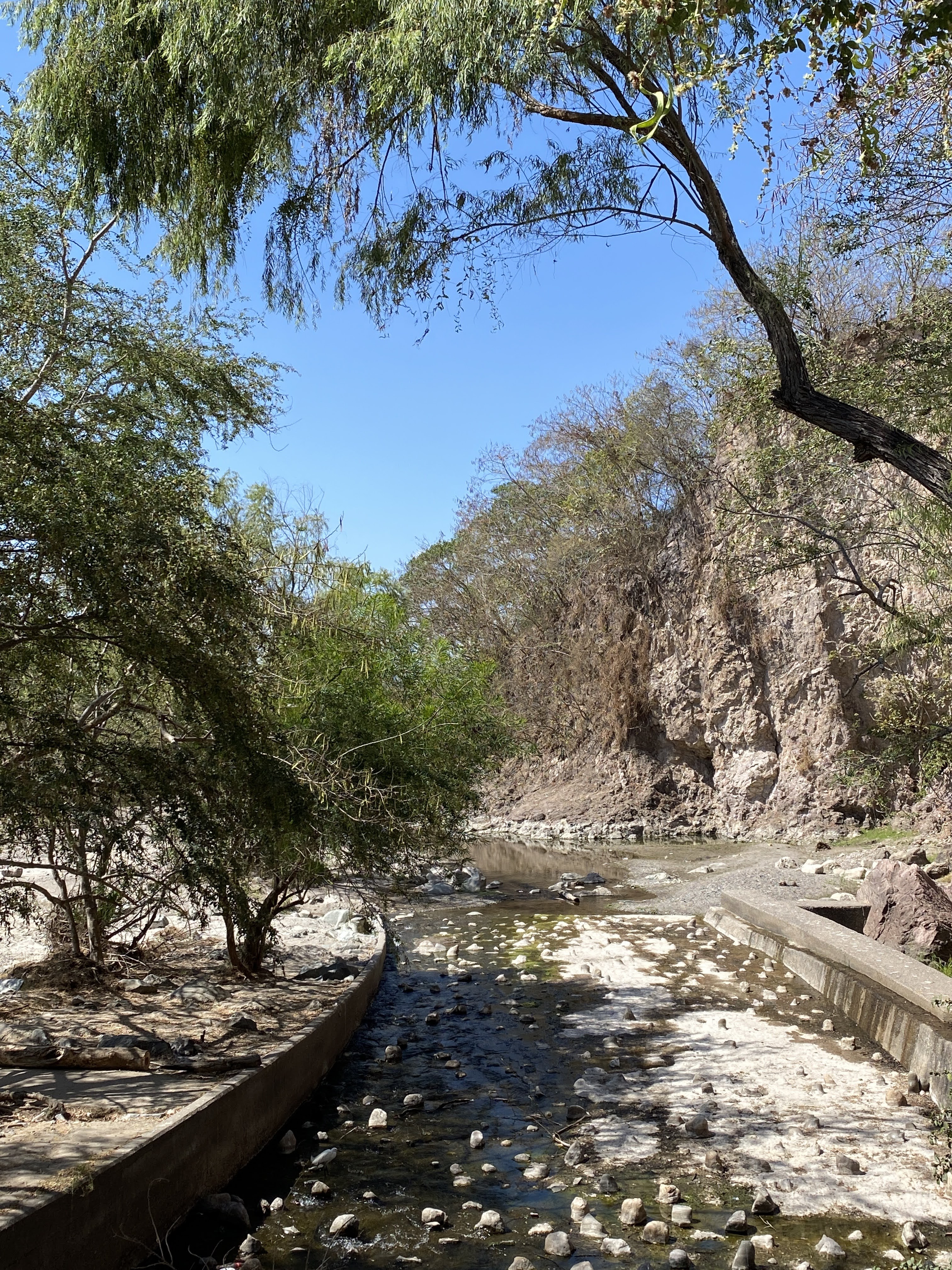 We reached the river Ameca by the little dam. Compared to when we first discovered it, the river was a lot dryer. We had gone swimming in it 2 years ago but this year there wasn’t enough water to experience that. We saw lots of birds on the dam side, sitting on down branches and trees.
