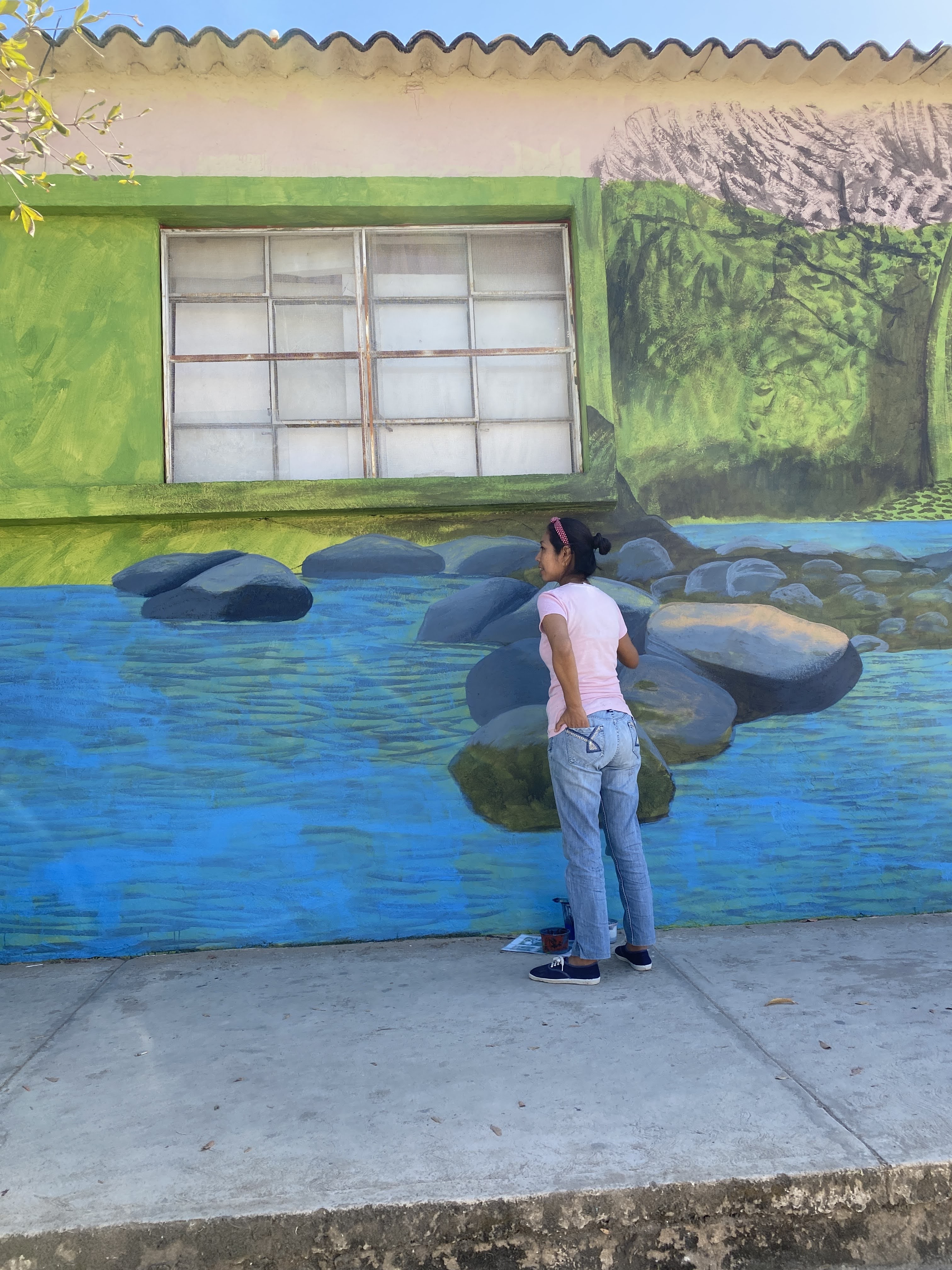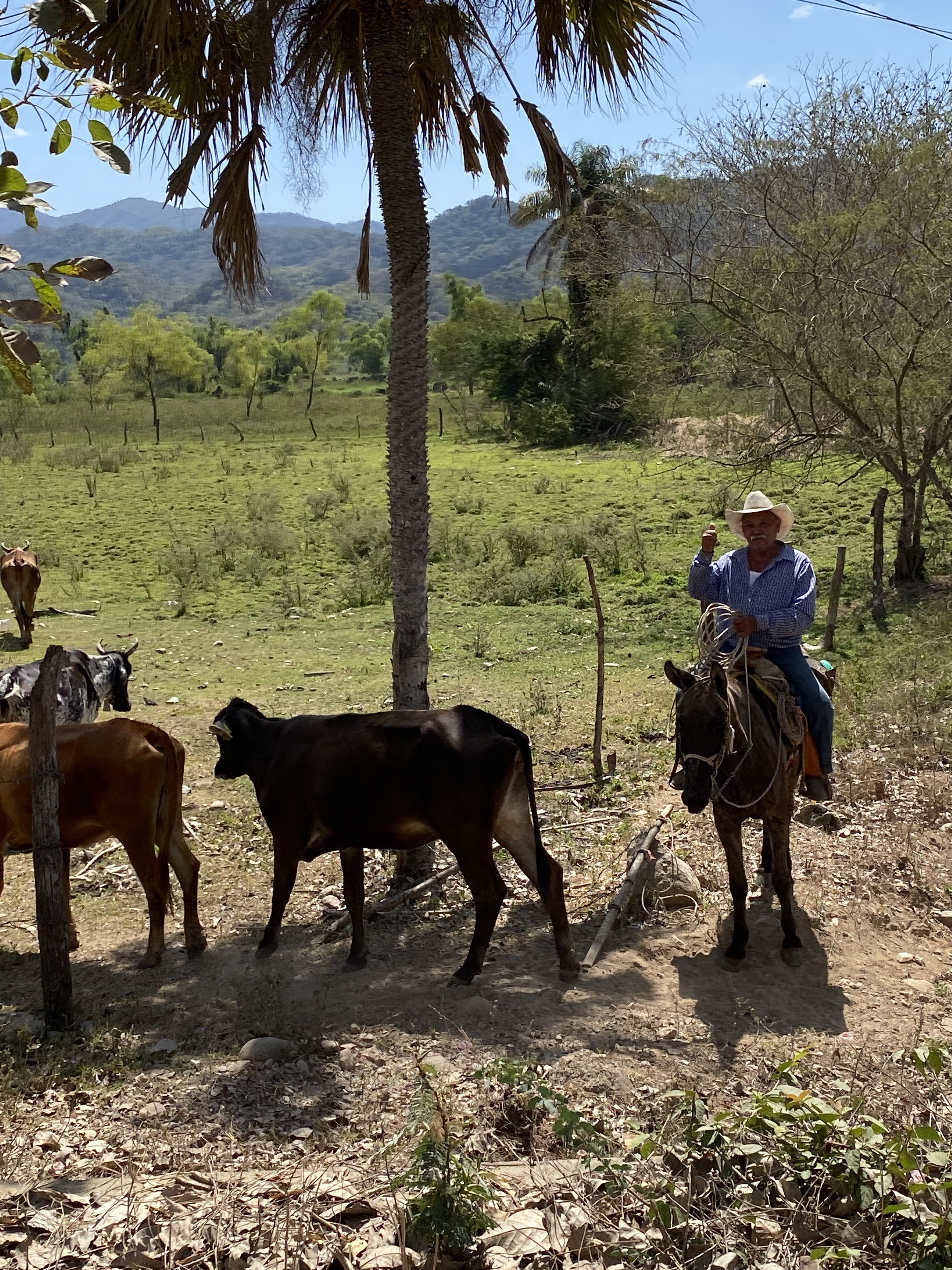 On our way back we drove through a few rivers, saw lots of cows and Mario flirted with a few of them, a bird attacked another one right in front of our car and we saw feathers flying, we saw amazing trees, iguanas, sleepy dogs everywhere and a bunch of horses and cowboys. In Las Palmas de Arriba, we noticed that they had lots of beautiful murals and I took a picture of 2 of their talented artists in action.