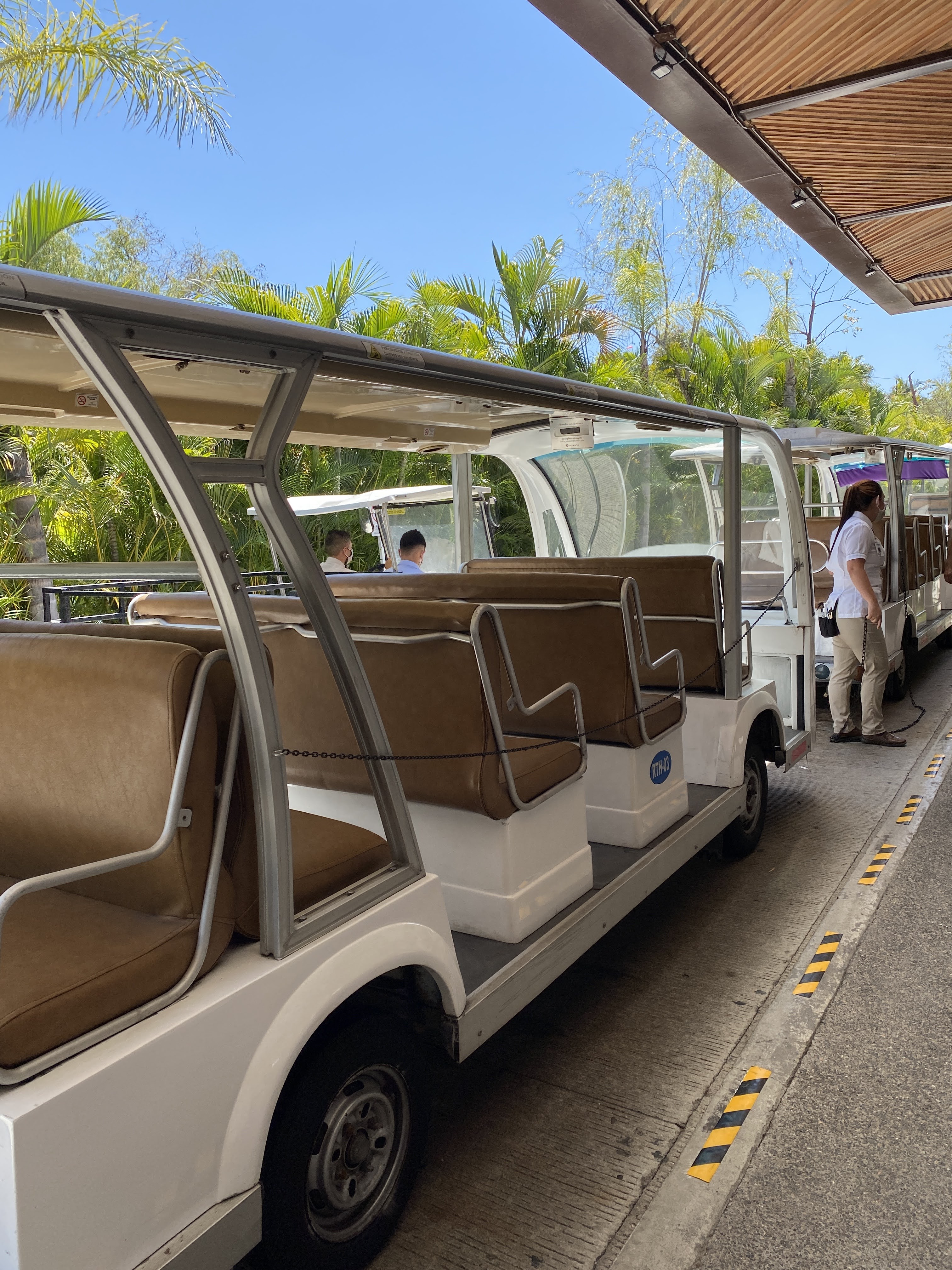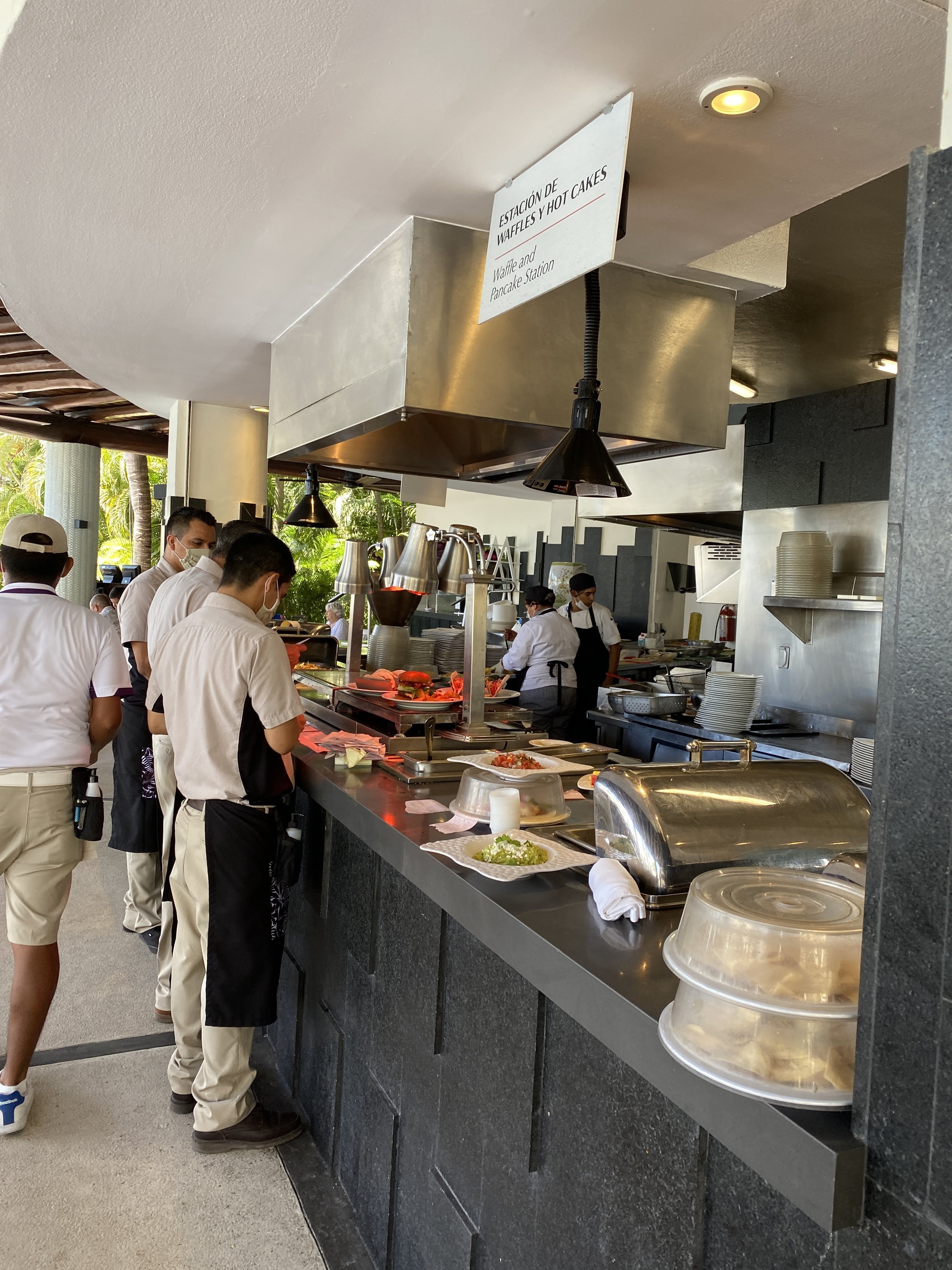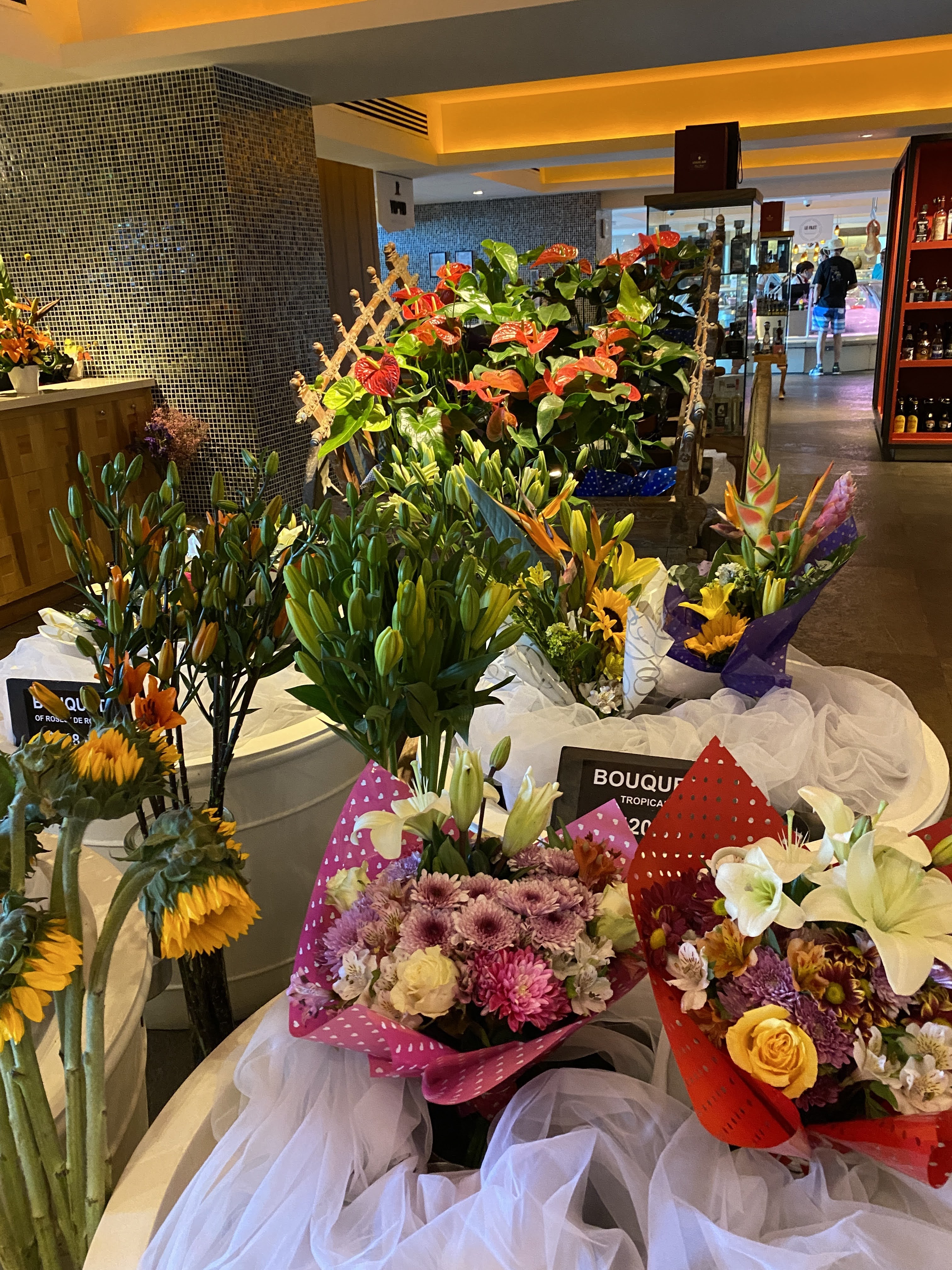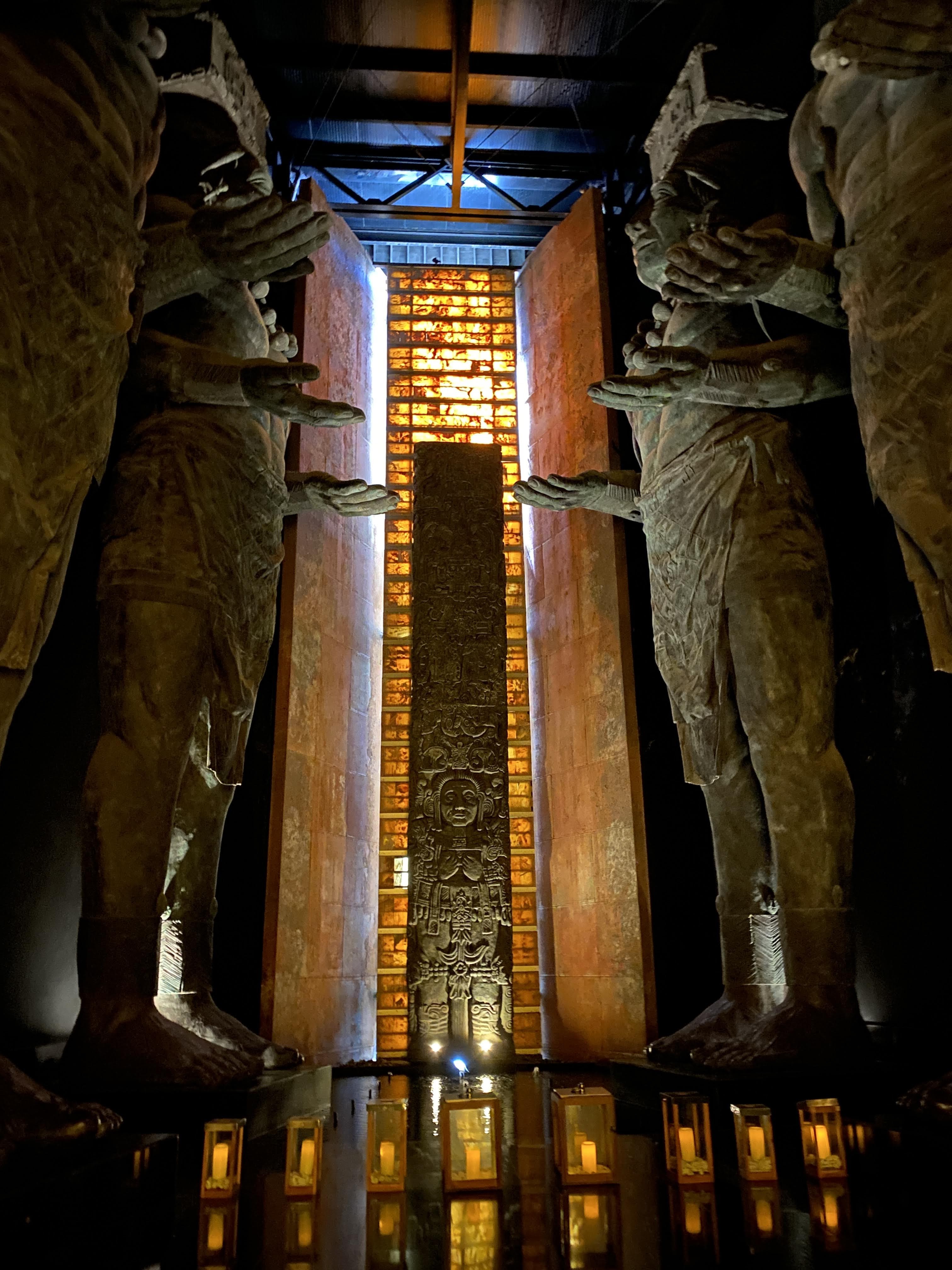 When we arrived at the gate, and after leaving Pogo’s driver’s licence there, we had to drive another 2 kms to the valet parking. Then we had to take a shuttle to the location of our choice. I wanted to see the giant Mayans statues inside the lobby of the Grand Mayan so we went there first. It was impressive. Before getting there, we had to walk a good amount of time on wooden paths and bridges. The place was packed with palm trees and tropical vegetation. It’s beautiful, full of pools and restaurants and they have a great expanse of flat beach as well. I think it would take a full week to discover it all. I would go back for a nice dinner but I would never want to stay there, even though I felt like I was at a Disney resort, because it is way too big. We browsed through La Plaza, a retail place that caters to all their guests with everything you can imagine like a convenience store, a flower shop, a bakery, a cheese and meat counter, a chocolate and pastry counter, a liquor store, jewelry and clothing stores as well as Mexican artifacts. I feel like we just touch the top of the iceberg.