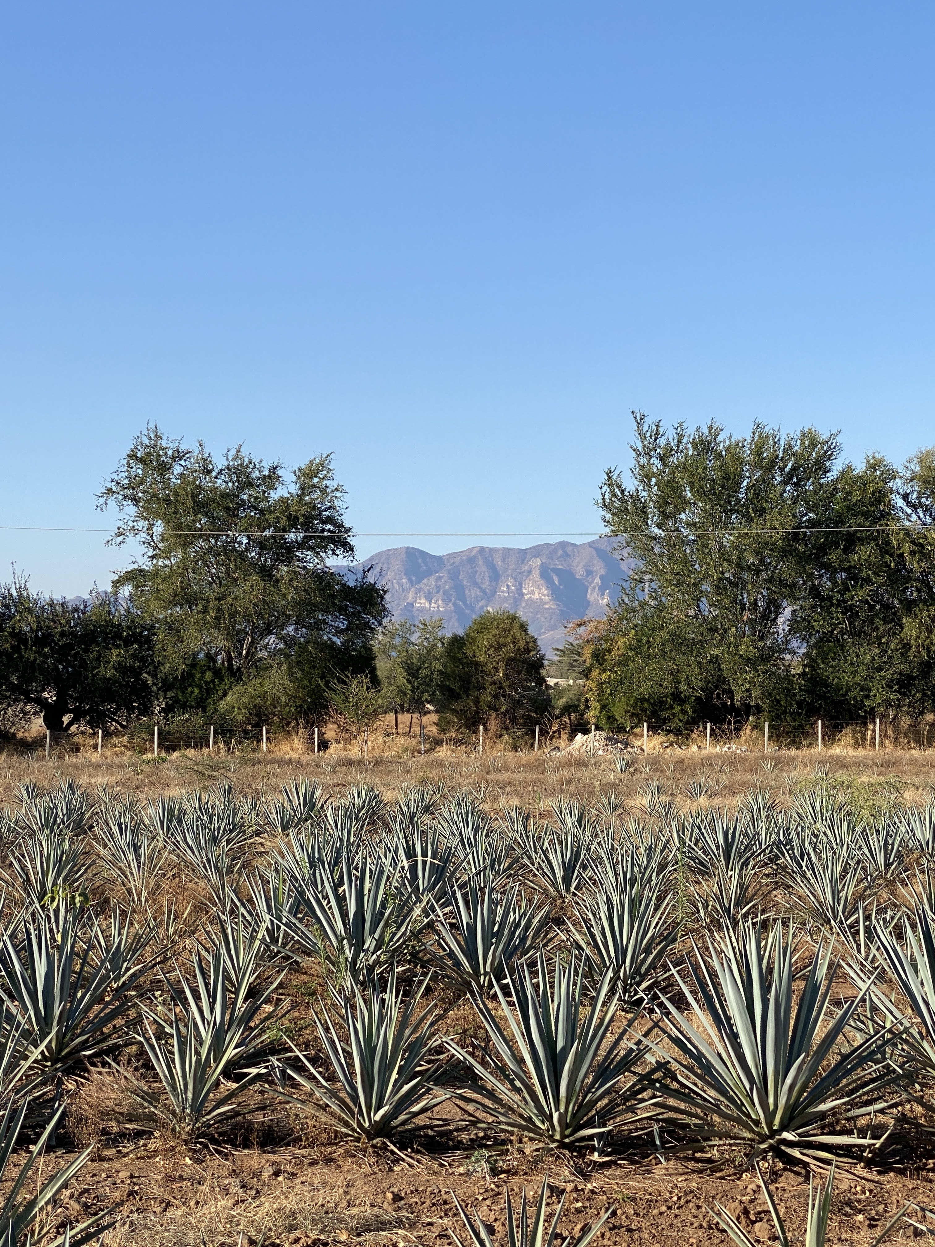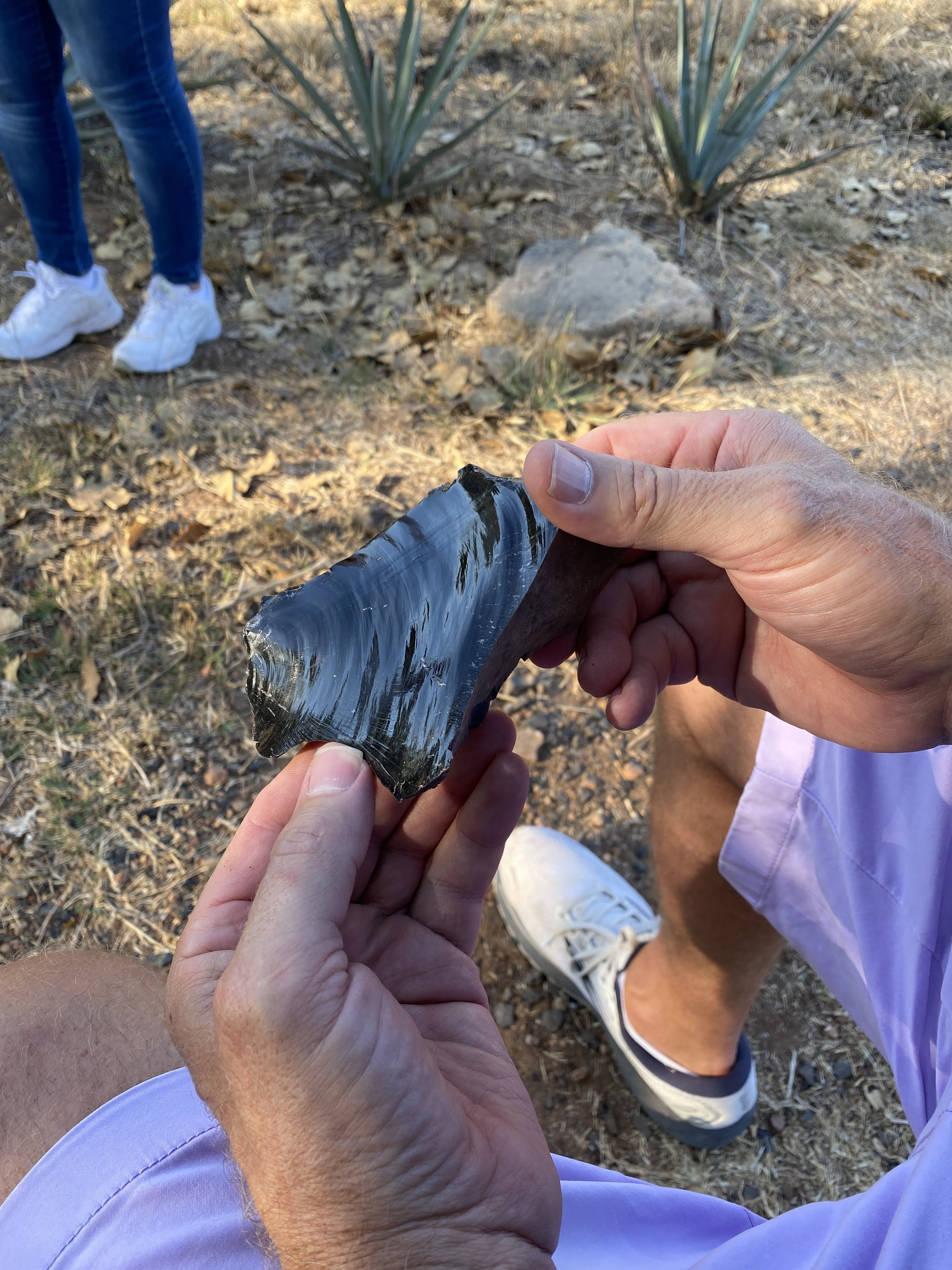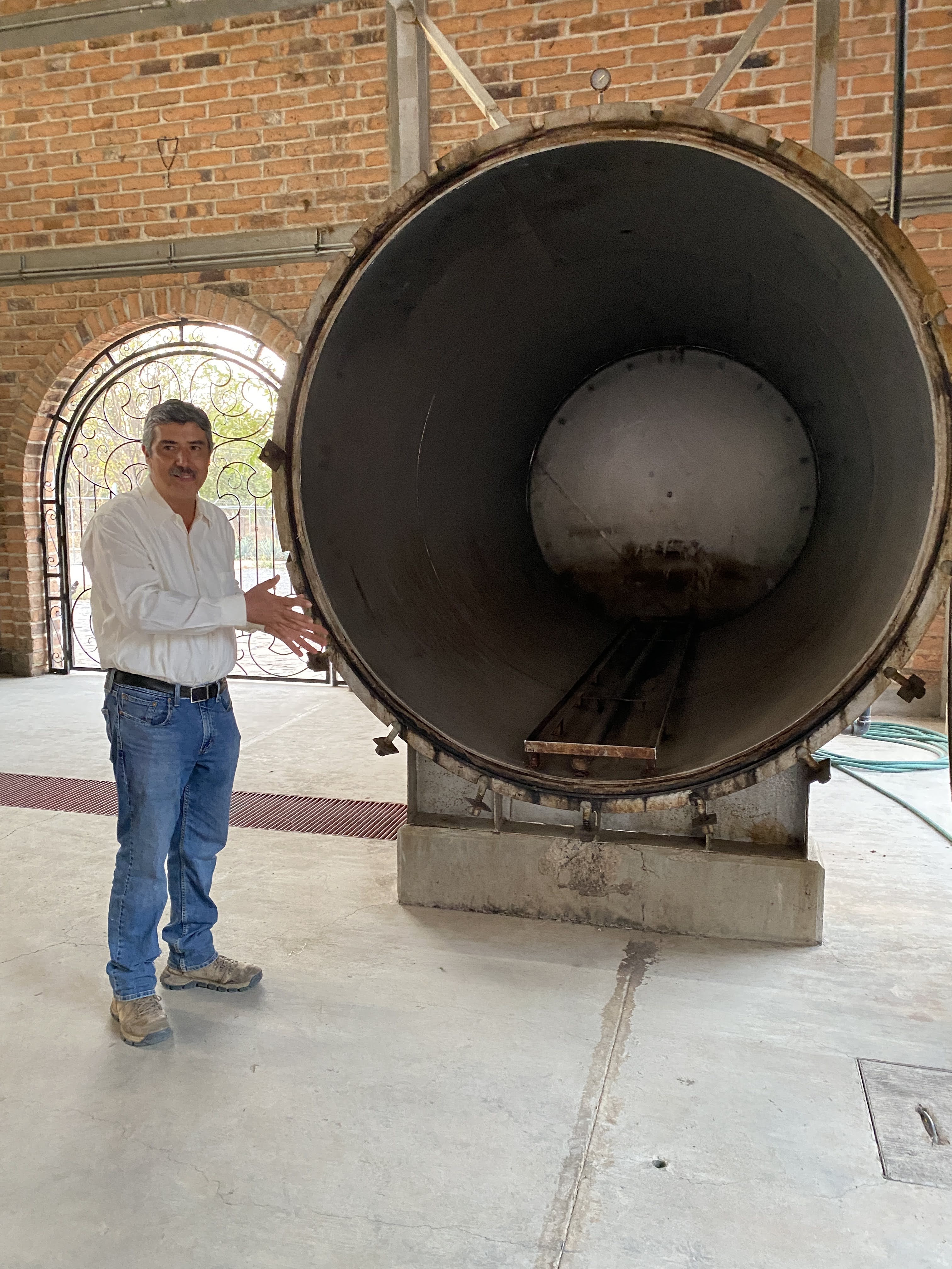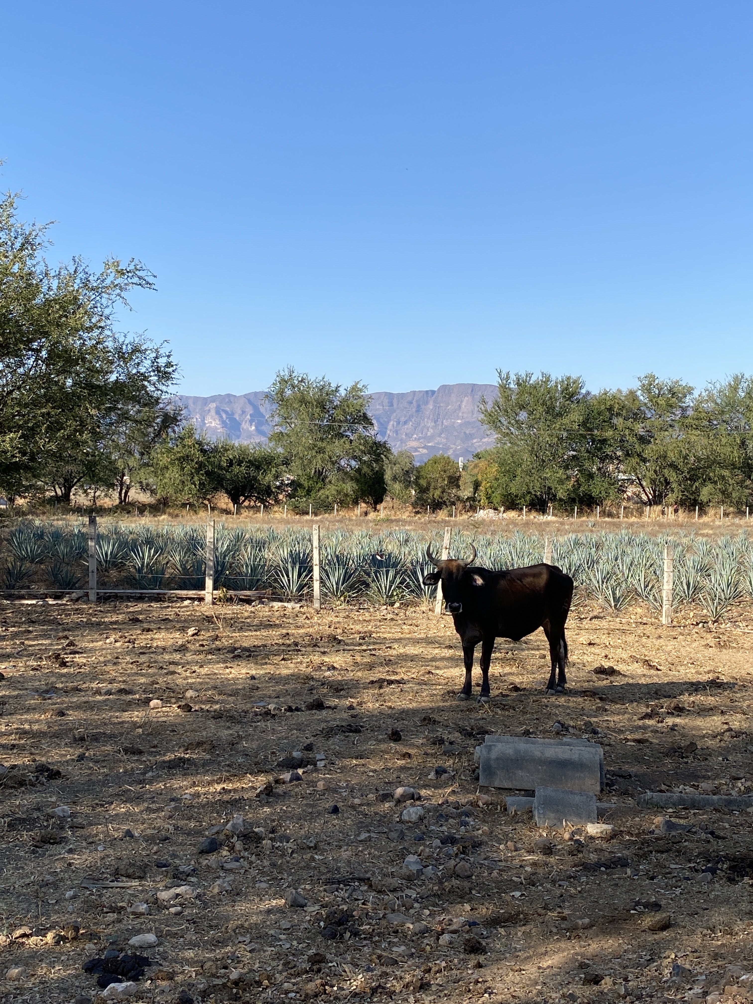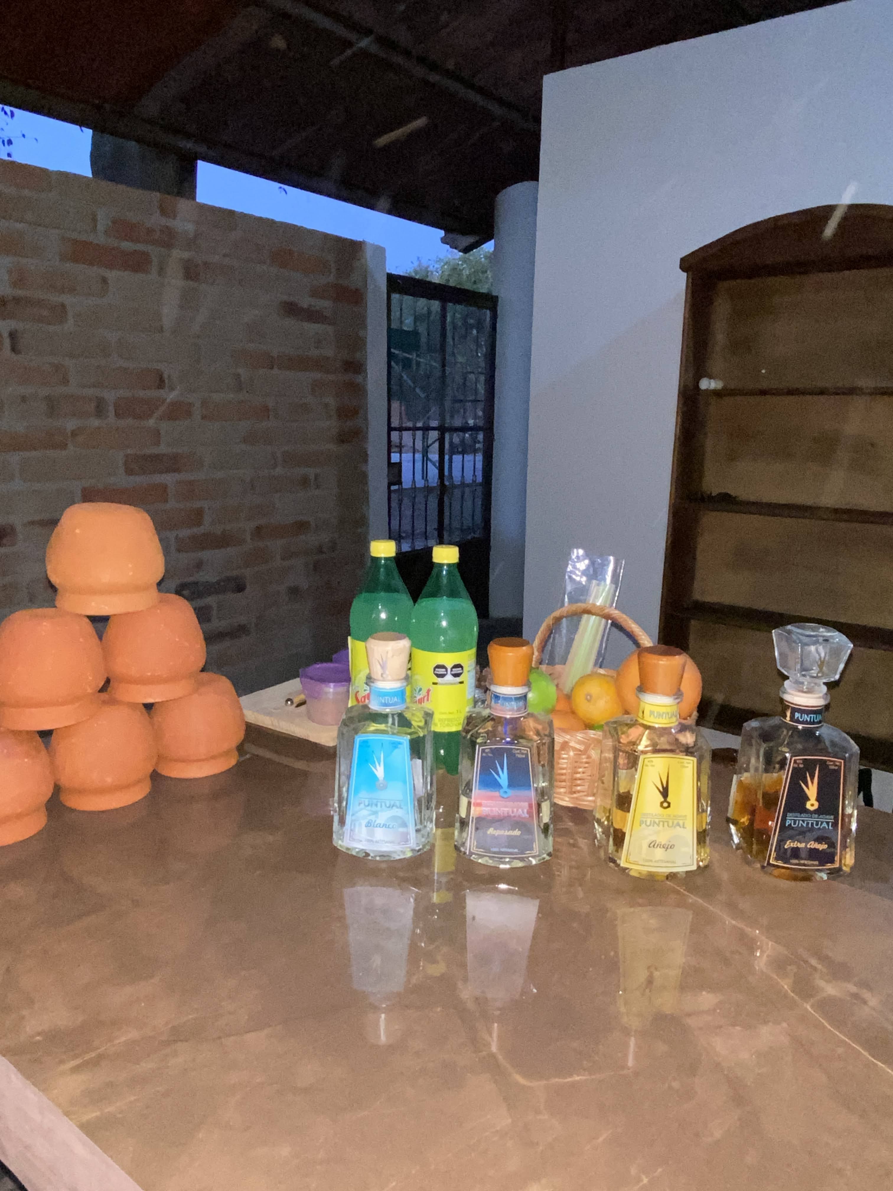 I had looked yesterday at Airbnb experiences to see what was available. I had found one about visiting a small family distillery but it was available only at 8:30pm. I emailed them to see if they could do a private tour for the 4 of us at 5pm. I wanted to go to the agave fields during daylight.  They agreed to meet us from 5 till 7pm.  We were there until 9pm… José, as in José Guadalupe Nuñez Rodriguez, the owner, couldn’t have been more welcoming.  He used to be the mayor of Tequila and worked hard to have it become a Pueblo Magico.  He didn’t speak a lot of English so had asked his friend Monica to be the interpreter. He took us first to the agave field, explained the process of growing and harvesting.  We walked around a very small portion of his 600 acres property, on the outskirts of Tequila with an incredible view of the volcano. We could still find obsidian glass from the last time the volcano erupted 200K years ago. They had a variety of fruit trees all over the property like lime, lemon, avocado, mango and mandarin as well as pistachio trees. They also had a few cows, chickens, horses and dogs.