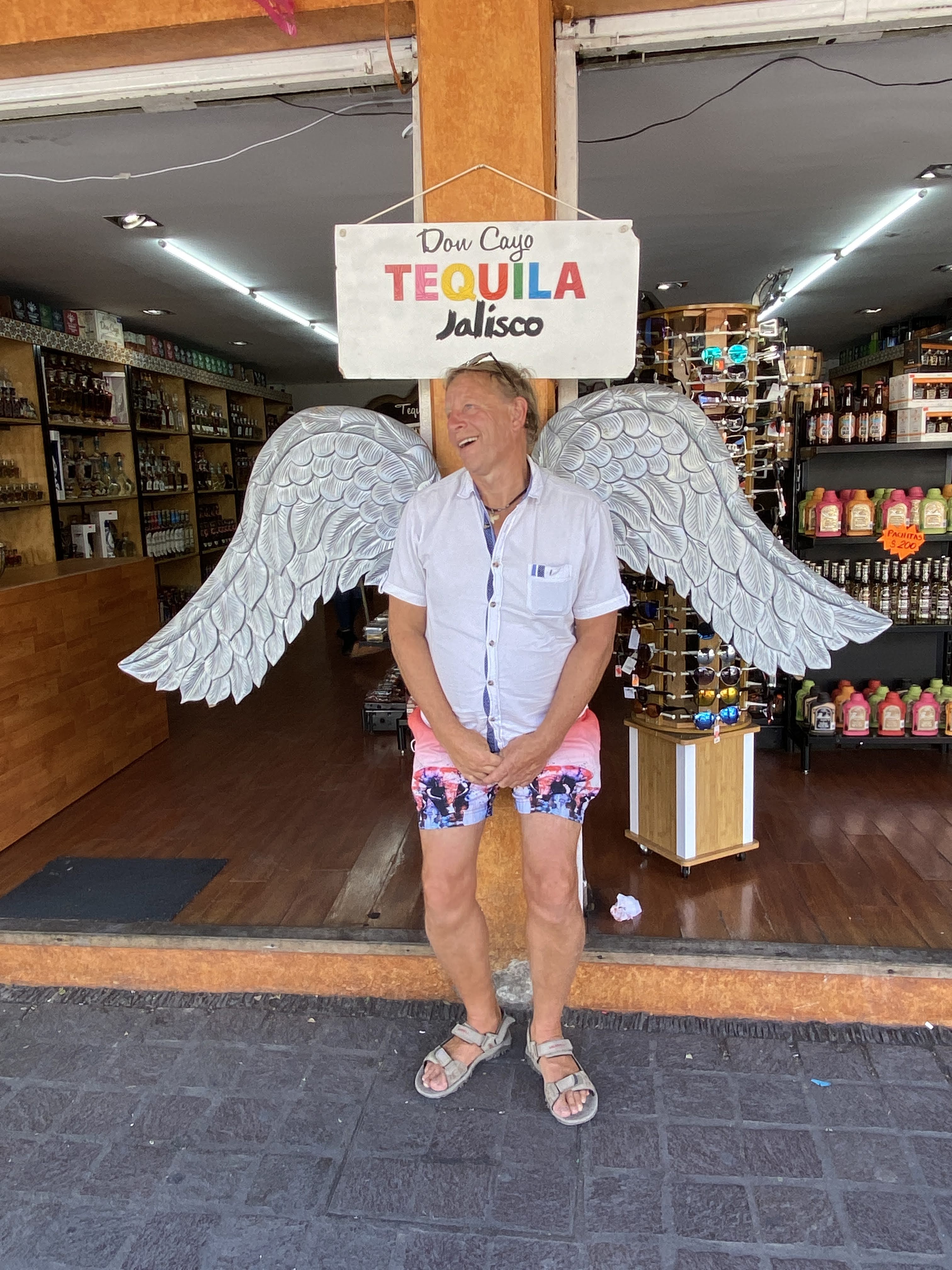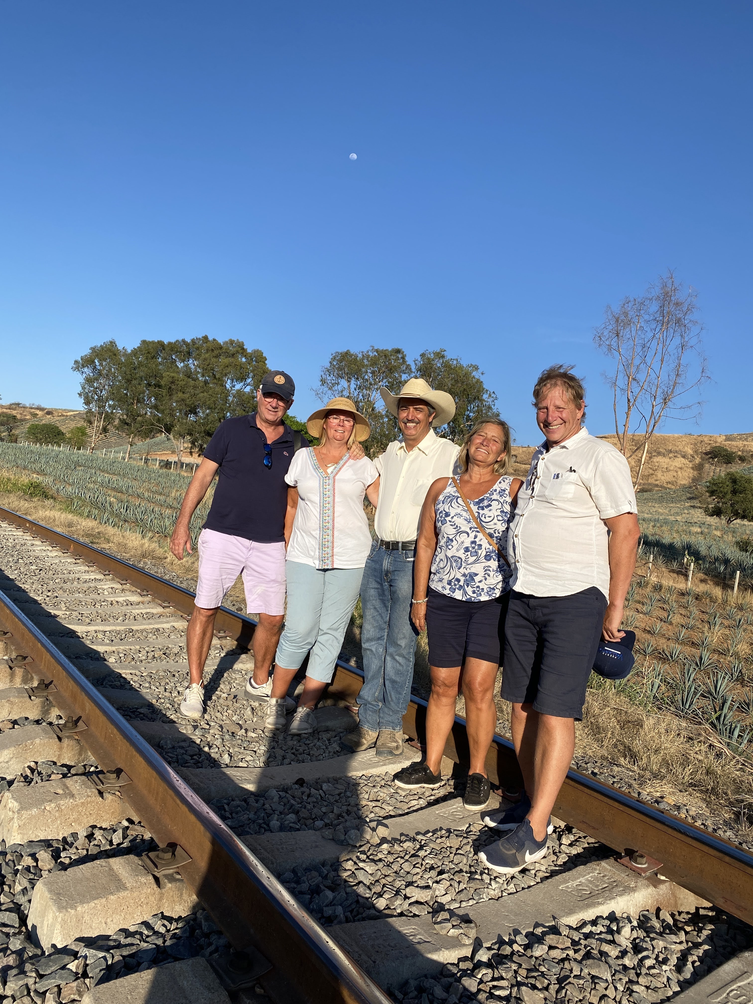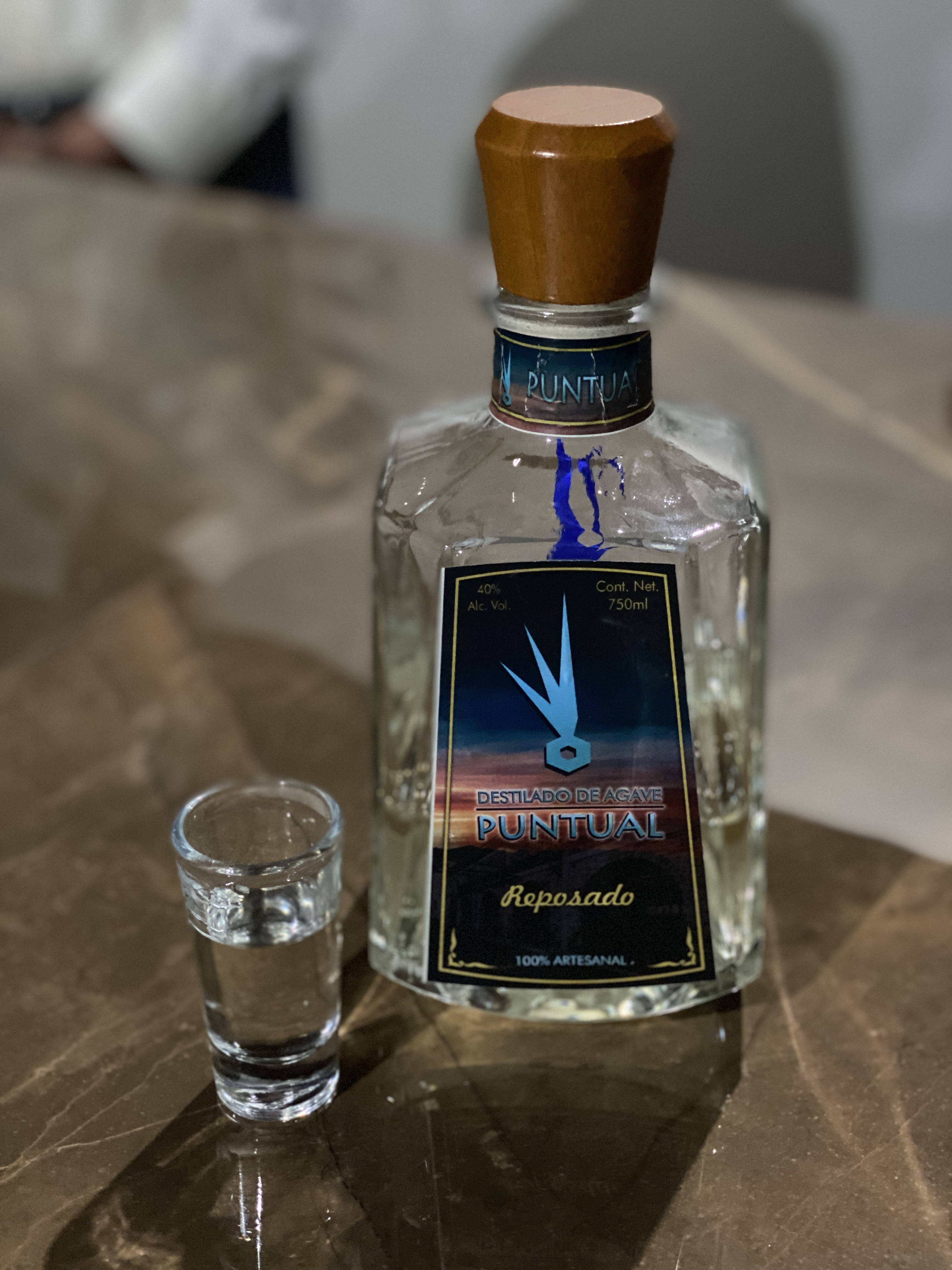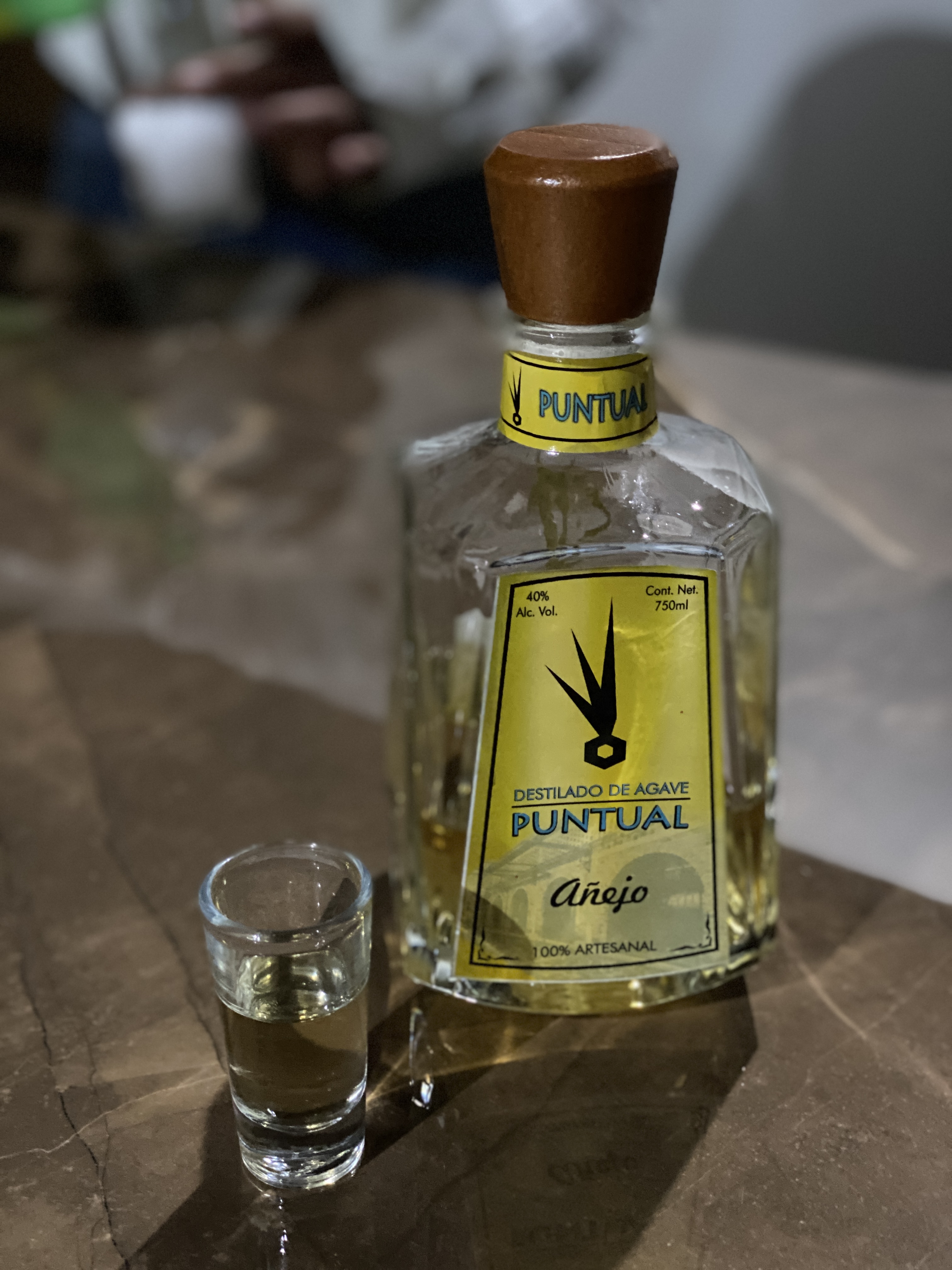 I had looked yesterday at Airbnb experiences to see what was available. I had found one about visiting a small family distillery but it was available only at 8:30pm. I emailed them to see if they could do a private tour for the 4 of us at 5pm. I wanted to go to the agave fields during daylight.  They agreed to meet us from 5 till 7pm.  We were there until 9pm… José, as in José Guadalupe Nuñez Rodriguez, the owner, couldn’t have been more welcoming.  He used to be the mayor of Tequila and worked hard to have it become a Pueblo Magico.  He didn’t speak a lot of English so had asked his friend Monica to be the interpreter. He took us first to the agave field, explained the process of growing and harvesting.  We walked around a very small portion of his 600 acres property, on the outskirts of Tequila with an incredible view of the volcano. We could still find obsidian glass from the last time the volcano erupted 200K years ago. They had a variety of fruit trees all over the property like lime, lemon, avocado, mango and mandarin as well as pistachio trees. They also had a few cows, chickens, horses and dogs.