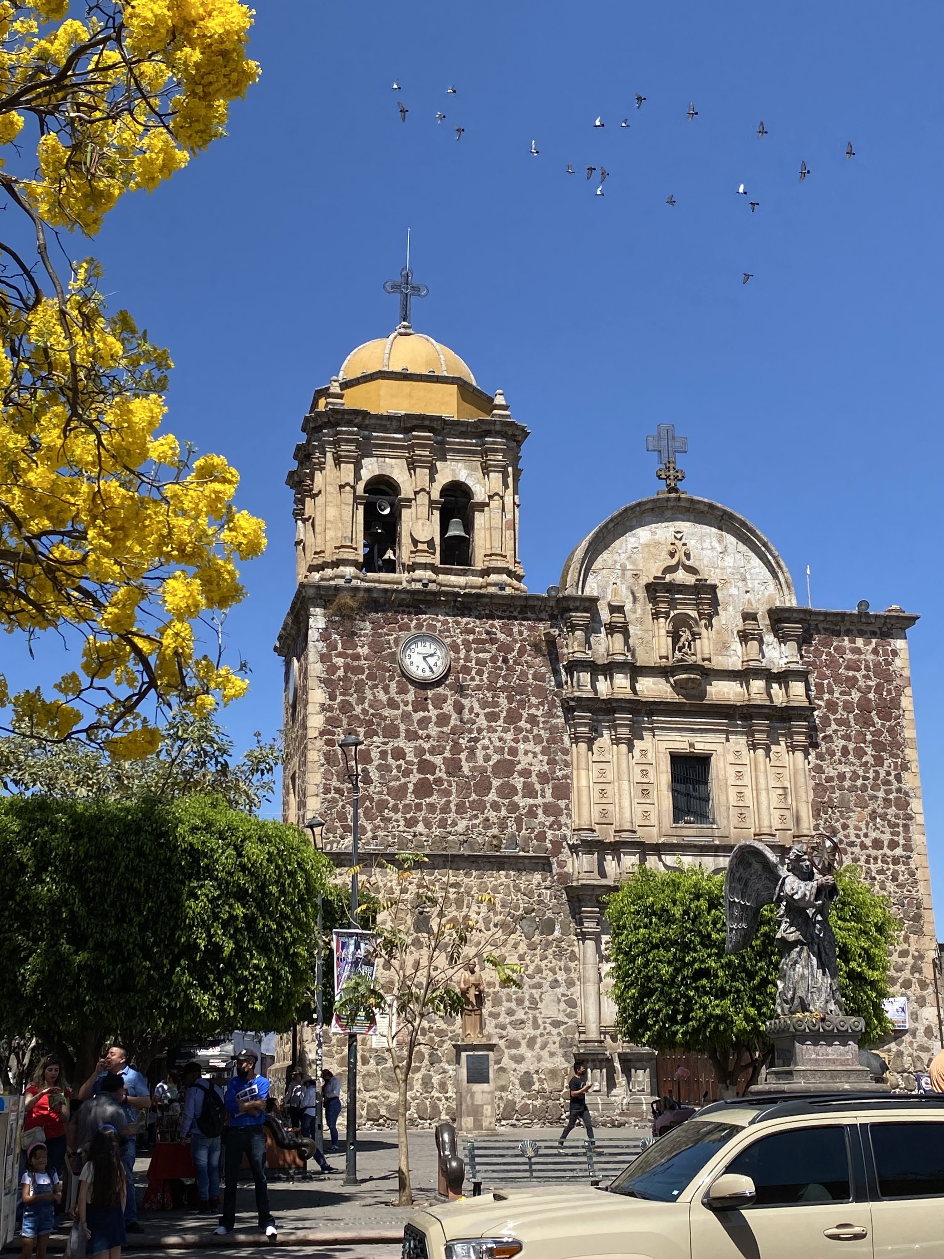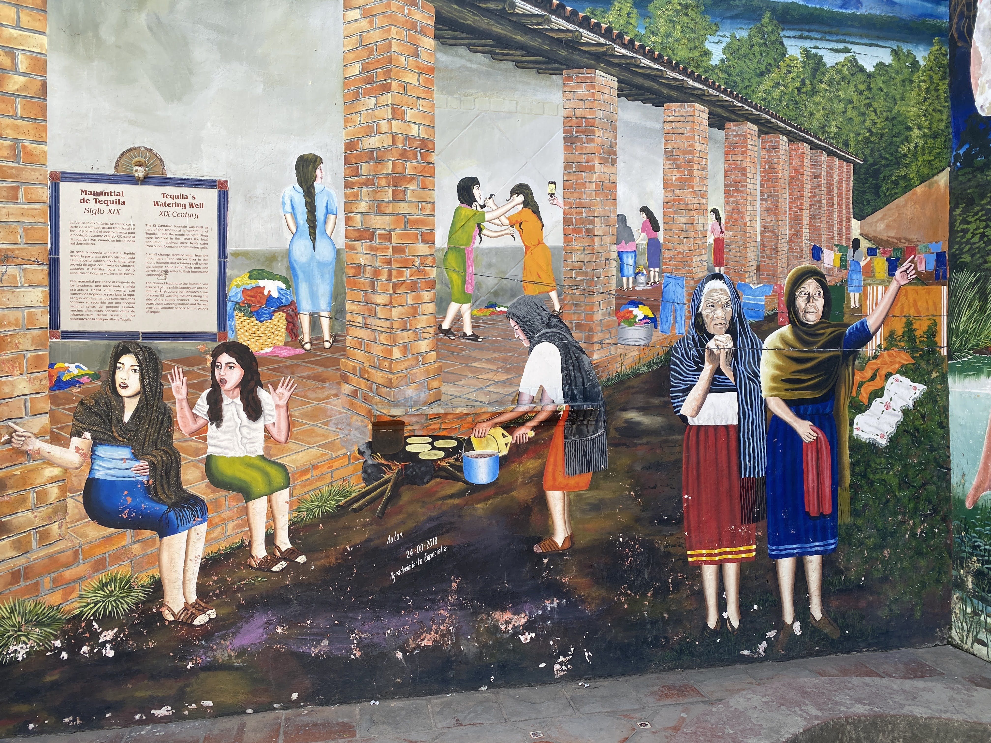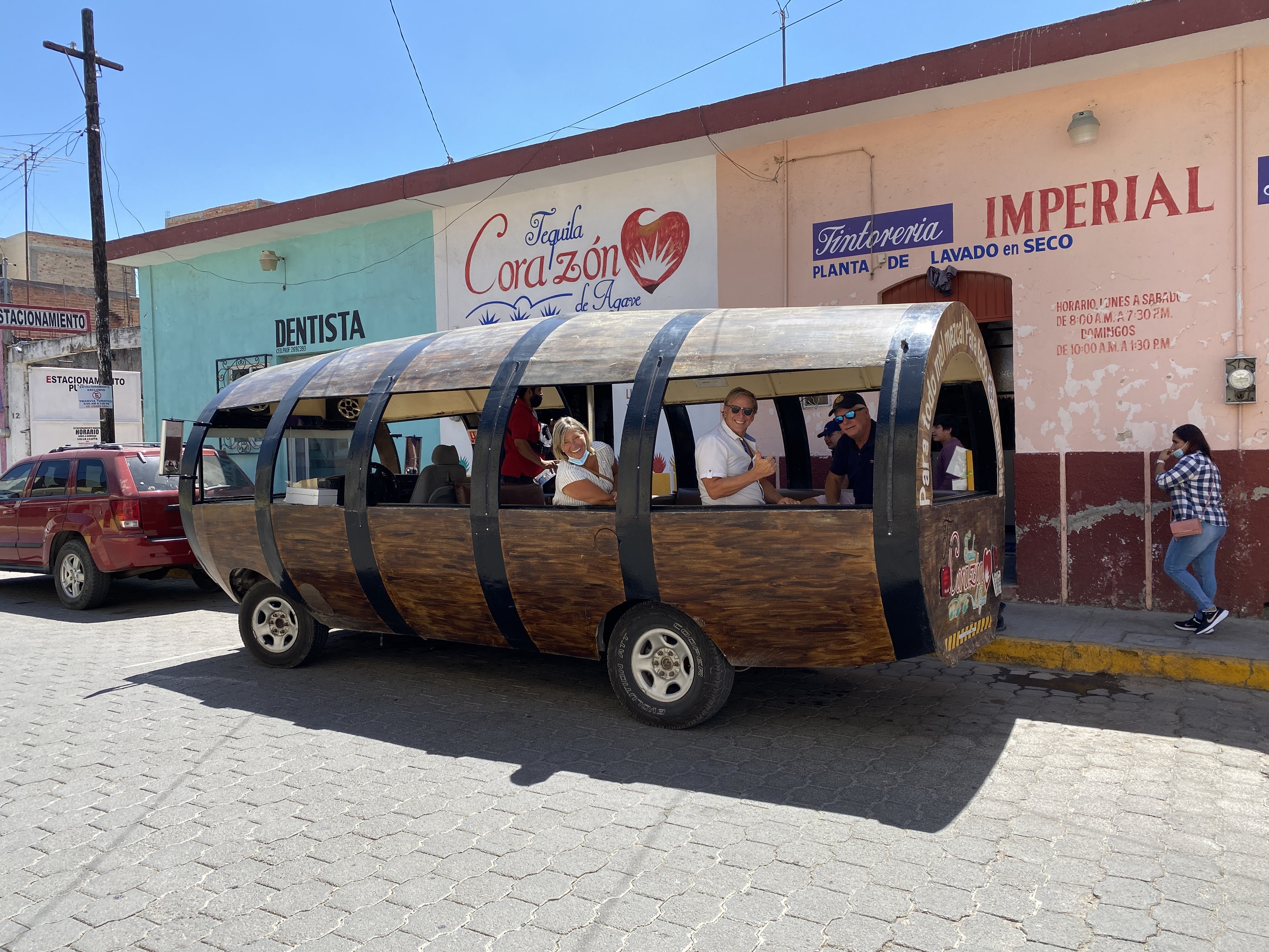 We went to our hotel called Solar de Las Animas. The rooms were not ready so we left the car there and went to the square and found a place to eat. We thought it would be fun to do a tour in a barrel shaped truck around town….It wasn’t. The guide spoke only Spanish and was speaking so fast that even Pogo couldn’t understand. When she wasn’t speaking, the driver was blasting American party music and our middle aged guide was dancing around the pole.…We couldn’t see anything really out of the windows and never had time to take pictures. Our first stop was by a field of agave where you could take a picture sitting on a horse in front of it. There were a few stalls selling knick knacks and tequila.  The second stop was to show us where people used to do their laundry back in the days but I decided to go take a picture of a mural I had spotted instead. Meanwhile the driver stopped twice to go spit. We thought he was puking because he bent down and disappeared in front of the truck. Gross.  We drove quickly by many distilleries and were finally dropped off by the square.  I would not recommend that tour.
