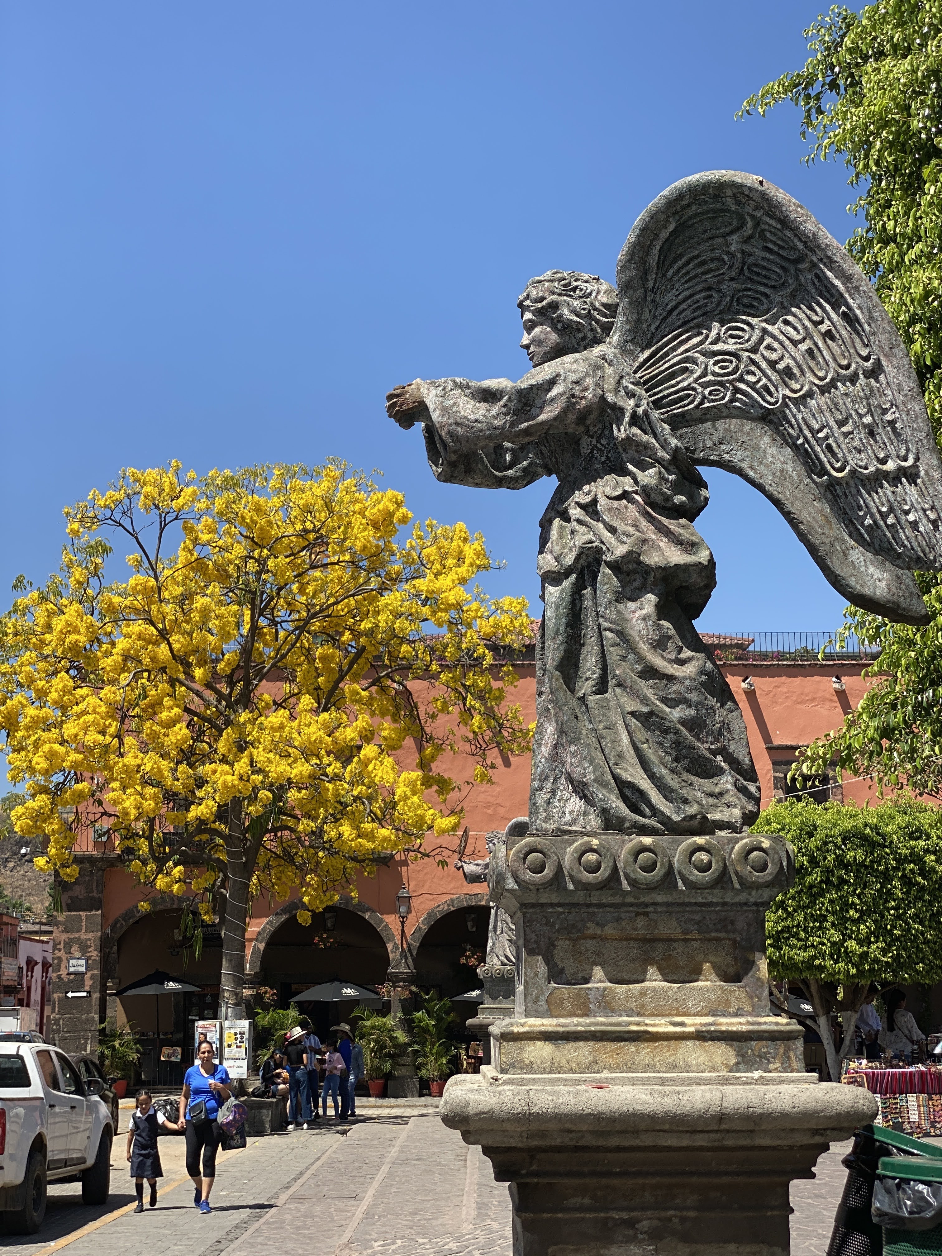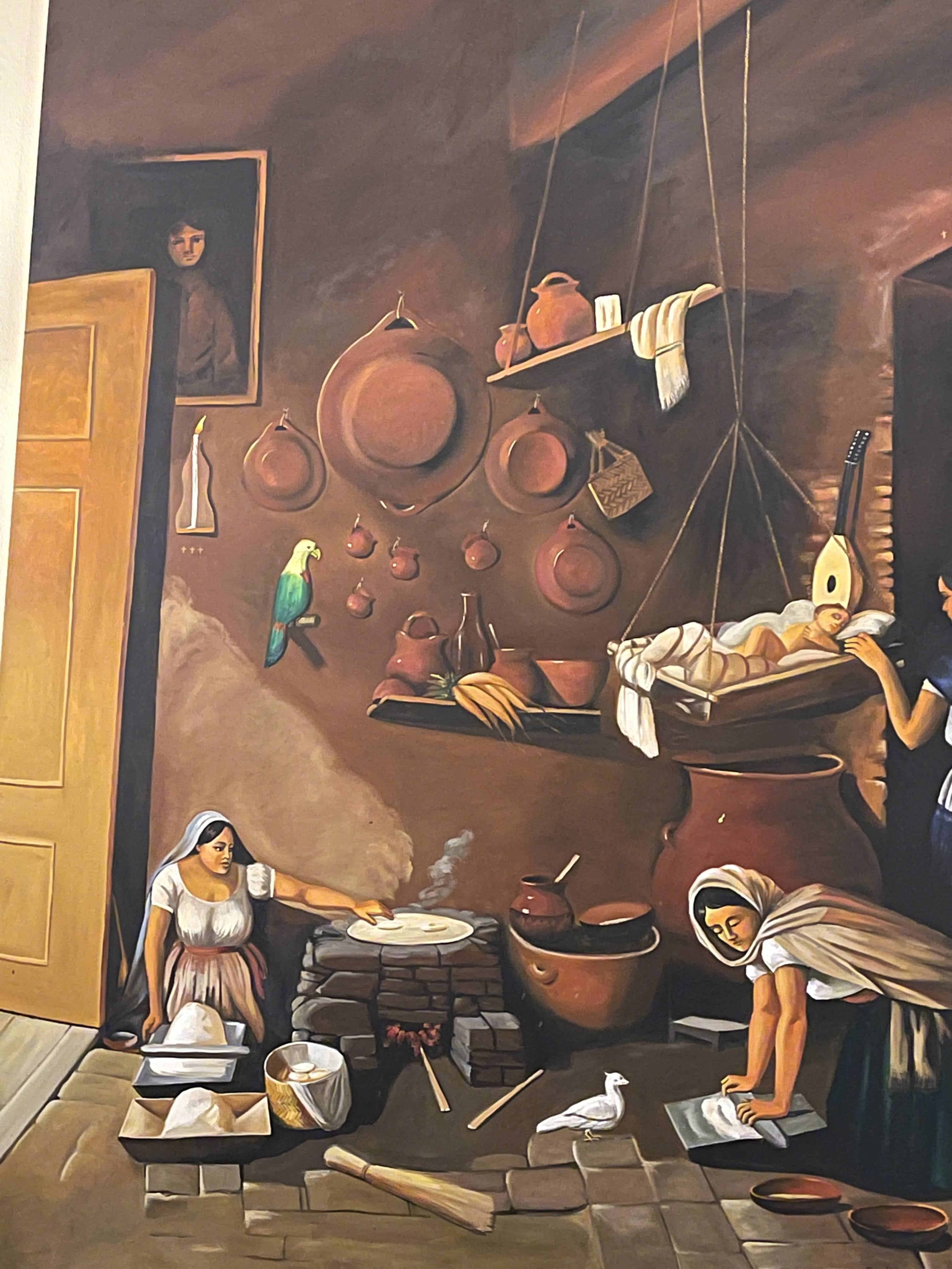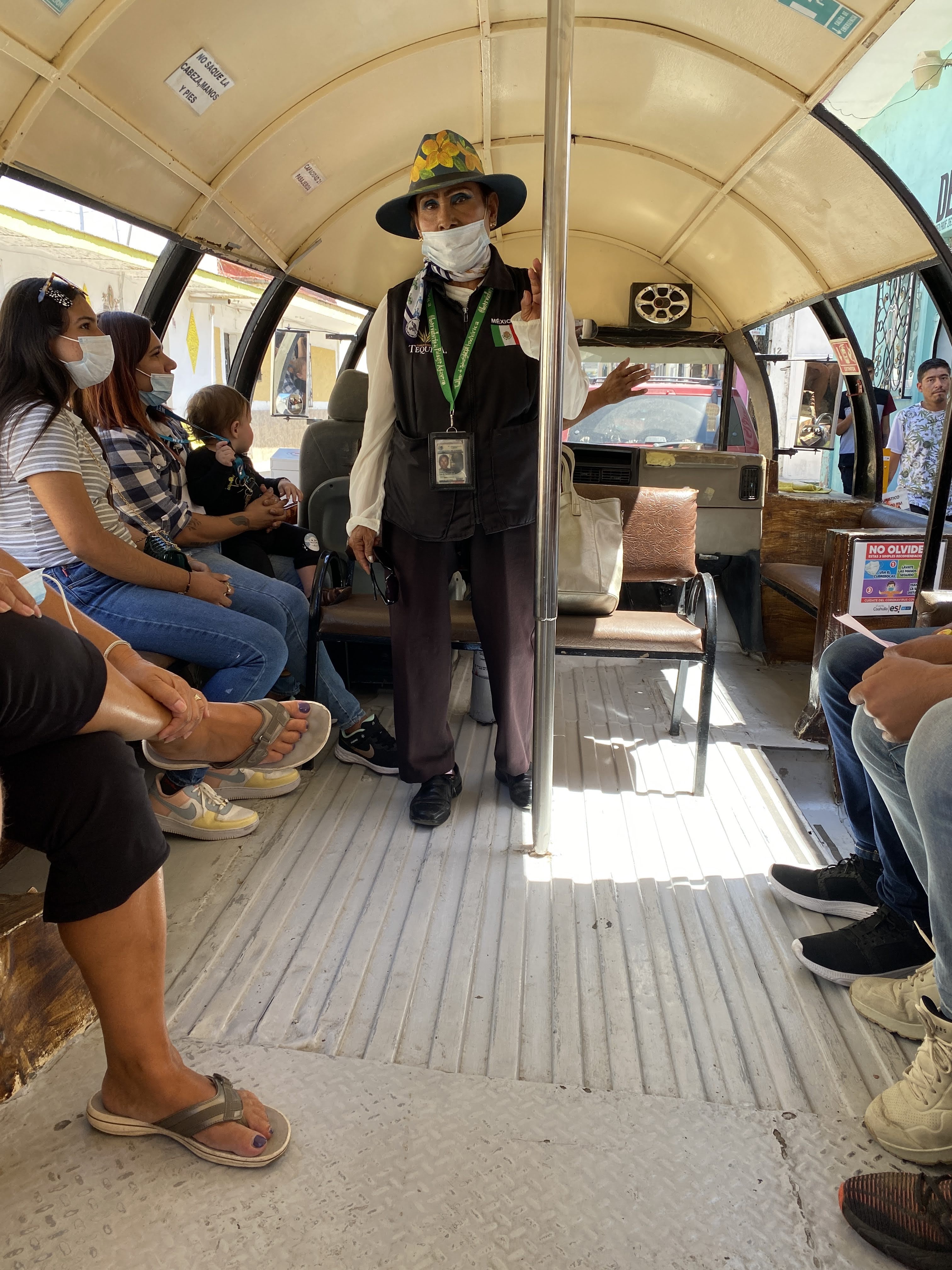 We went to our hotel called Solar de Las Animas. The rooms were not ready so we left the car there and went to the square and found a place to eat. We thought it would be fun to do a tour in a barrel shaped truck around town….It wasn’t. The guide spoke only Spanish and was speaking so fast that even Pogo couldn’t understand. When she wasn’t speaking, the driver was blasting American party music and our middle aged guide was dancing around the pole.…We couldn’t see anything really out of the windows and never had time to take pictures. Our first stop was by a field of agave where you could take a picture sitting on a horse in front of it. There were a few stalls selling knick knacks and tequila.  The second stop was to show us where people used to do their laundry back in the days but I decided to go take a picture of a mural I had spotted instead. Meanwhile the driver stopped twice to go spit. We thought he was puking because he bent down and disappeared in front of the truck. Gross.  We drove quickly by many distilleries and were finally dropped off by the square.  I would not recommend that tour.