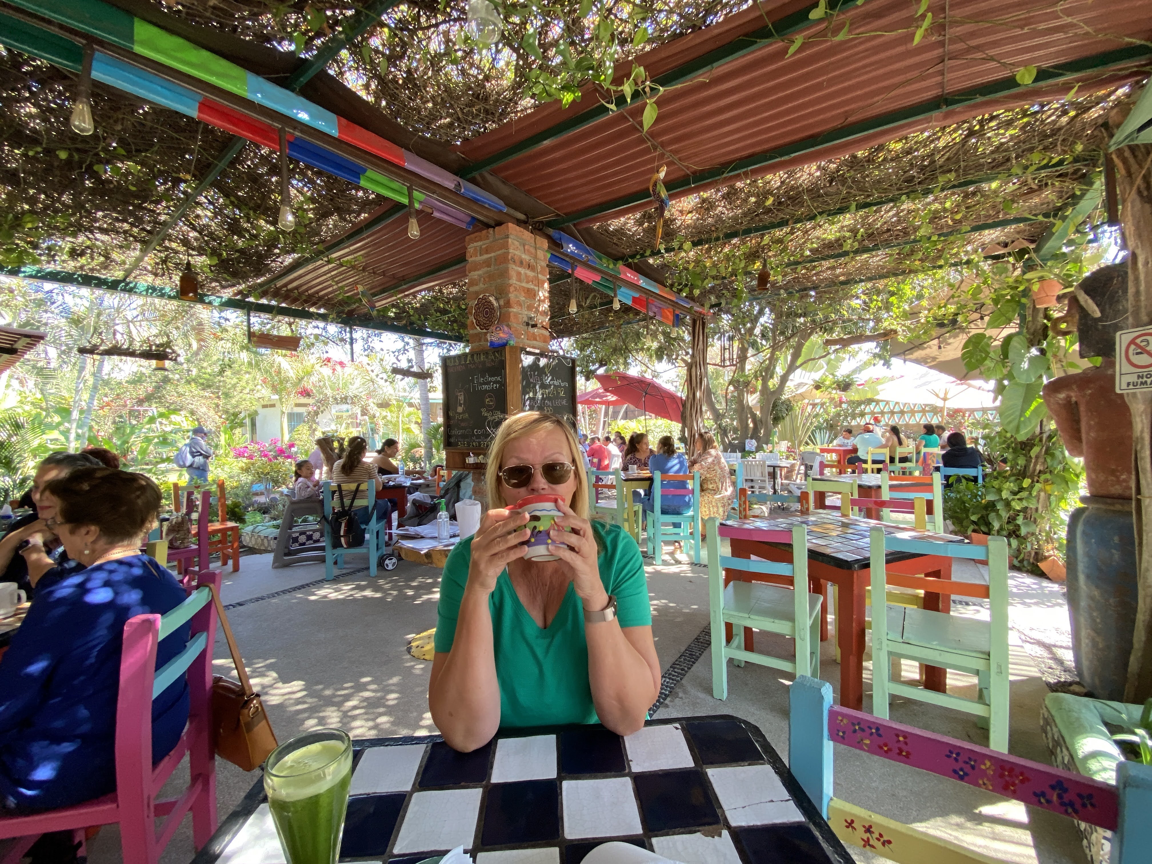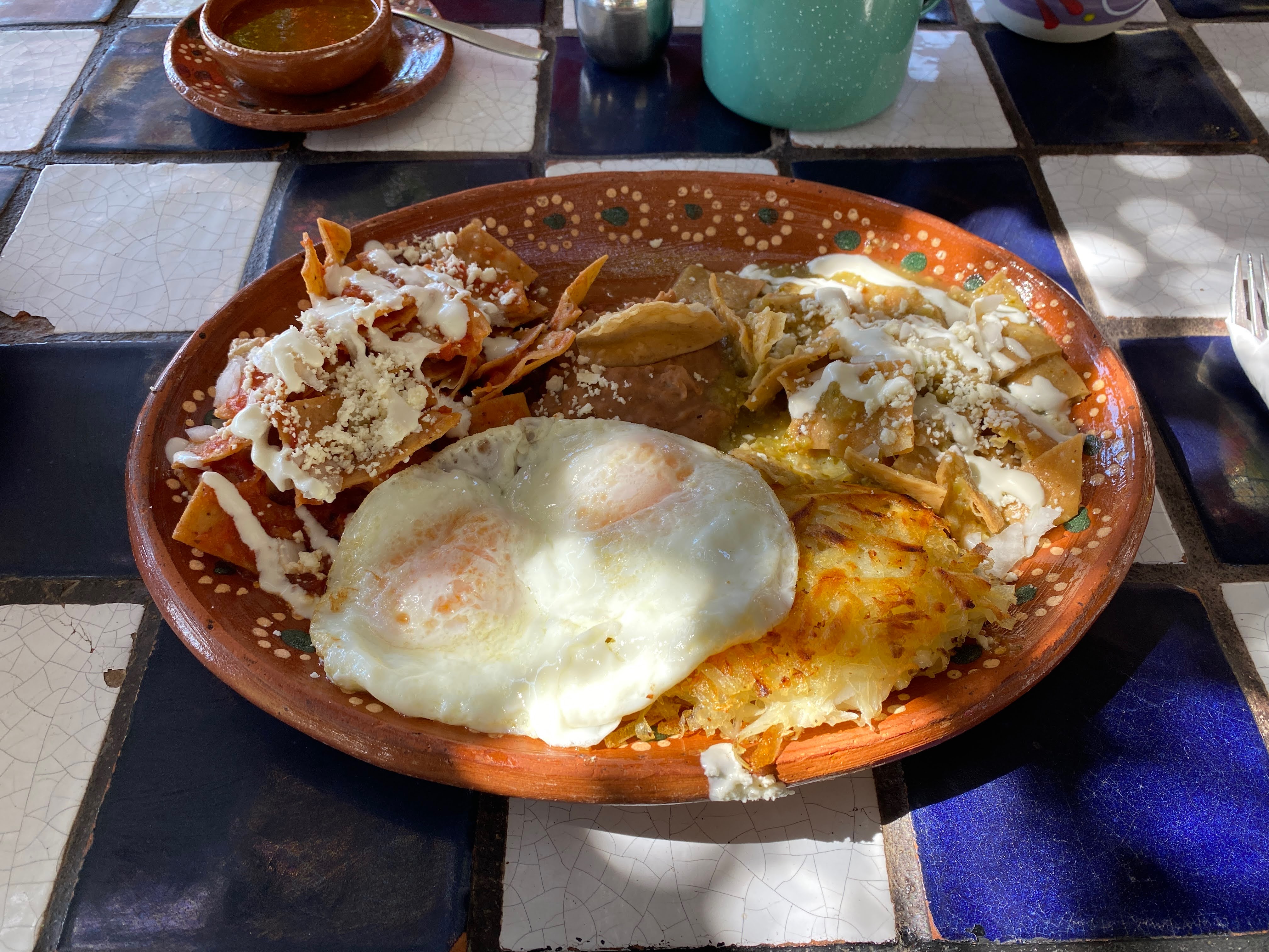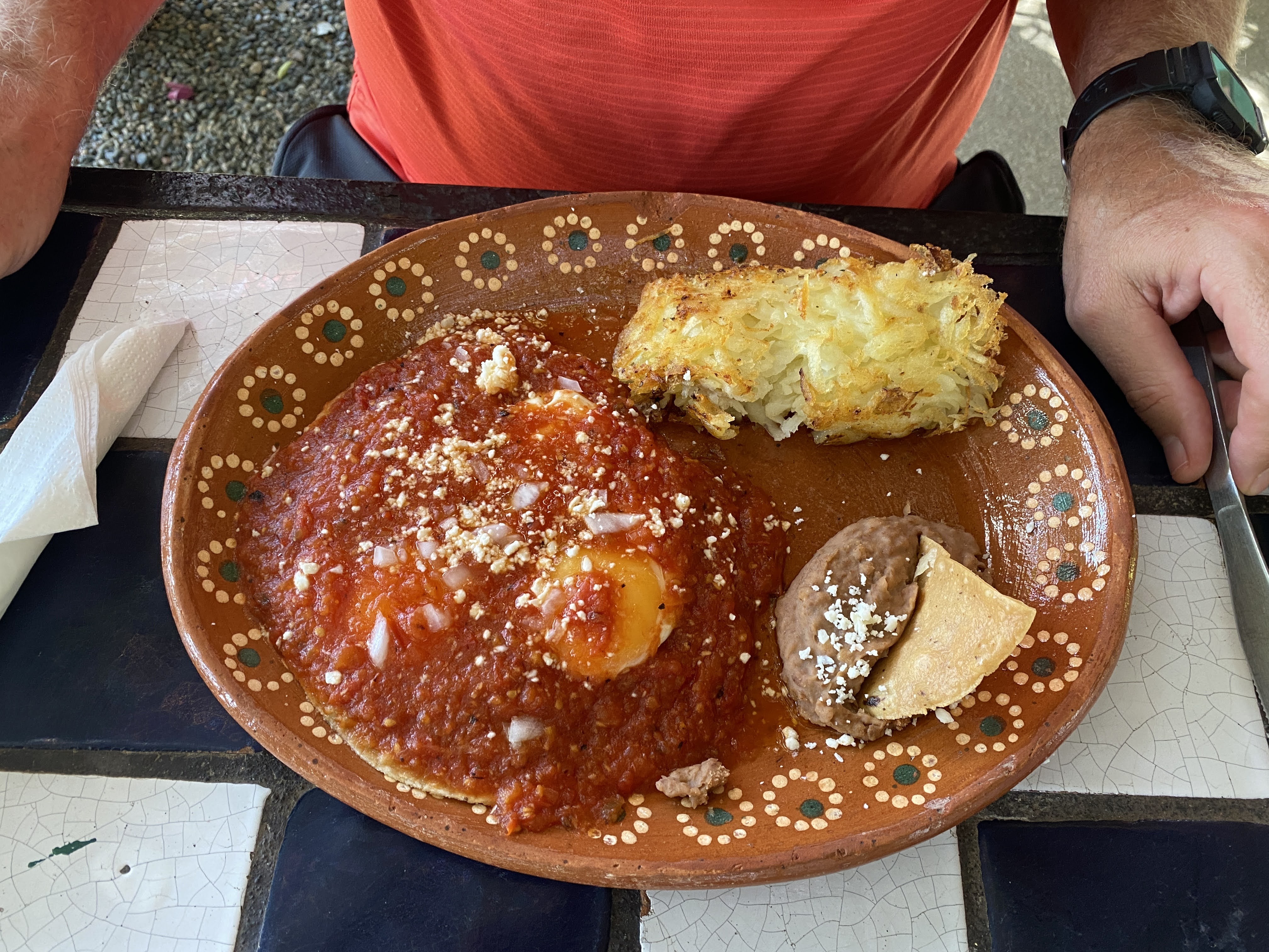 We slept in then stopped at the bank on our way to Mama Nena. We didn’t have any food left in the condo, not even milk for coffee. The place was packed but as usual we were the only tourists. I had Chilaquiles and Pogo had Huevos Rancheros. The orange bougainvilleas had a few hummingbirds flying around all during our breakfast.