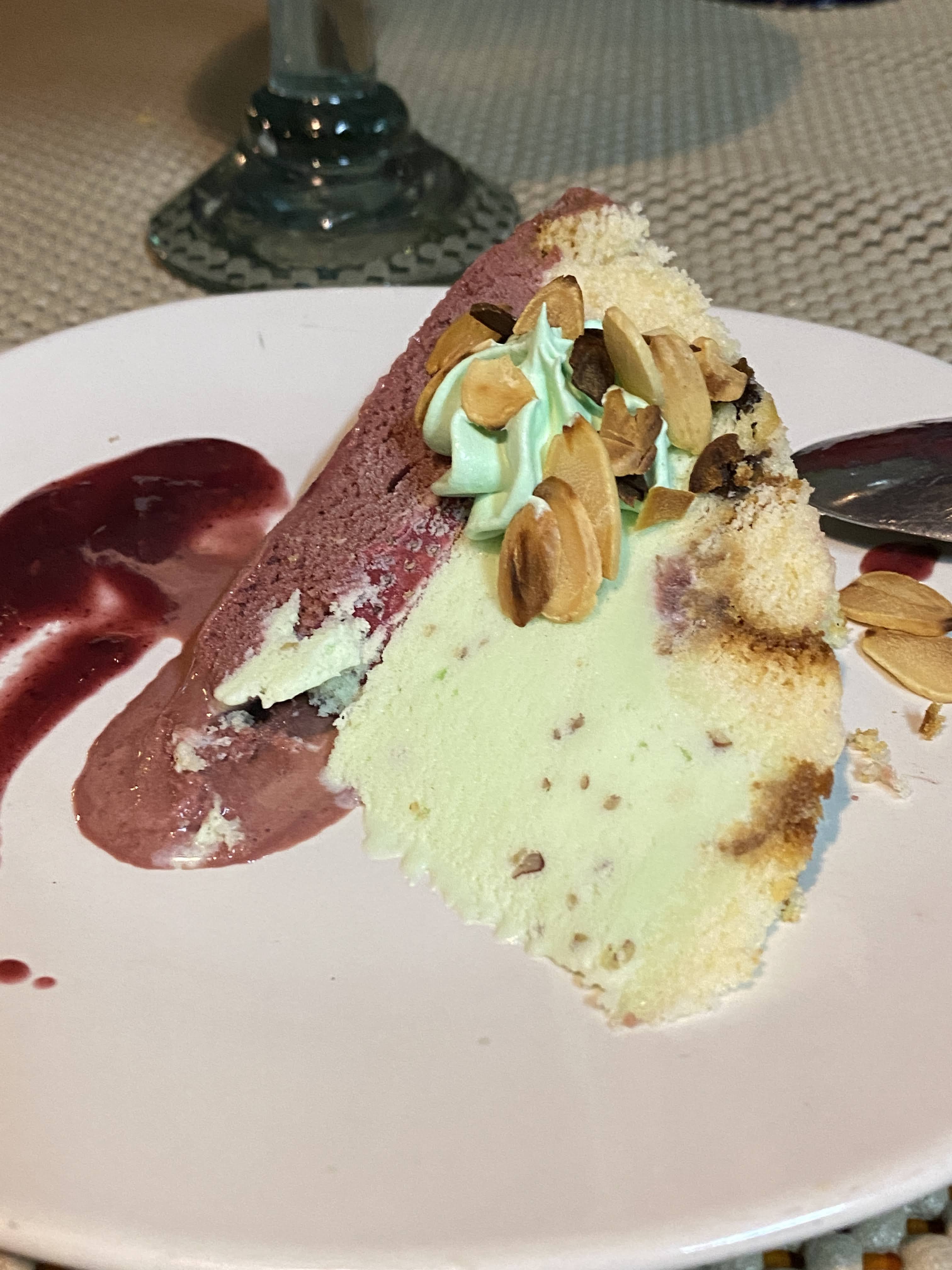 We arrived at La Isla at 6:15pm and the place was already packed with “Leprechauns”. We didn’t know what was on the menu but were agreeably surprised that it was guacamole, pico de gallo and chips, Irish beef stew which was so delicious, bread and cassata (ice cream cake) for dessert.