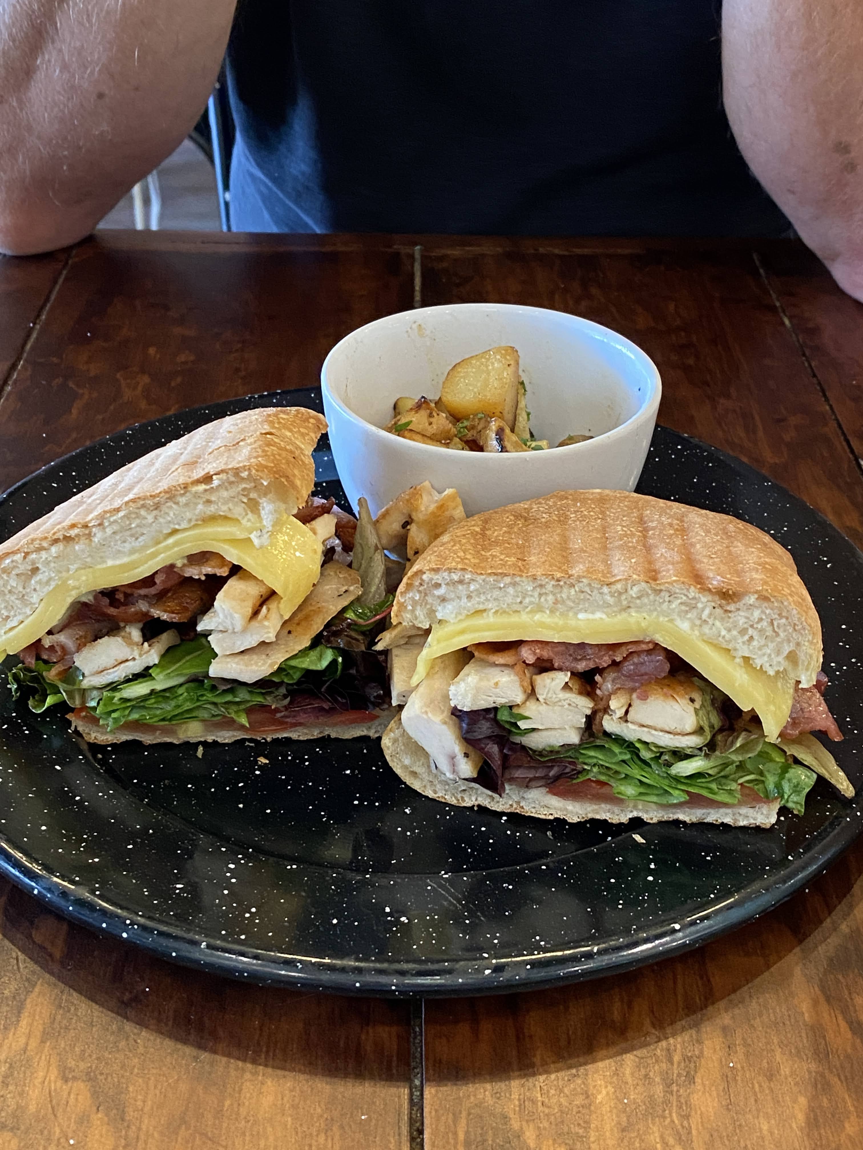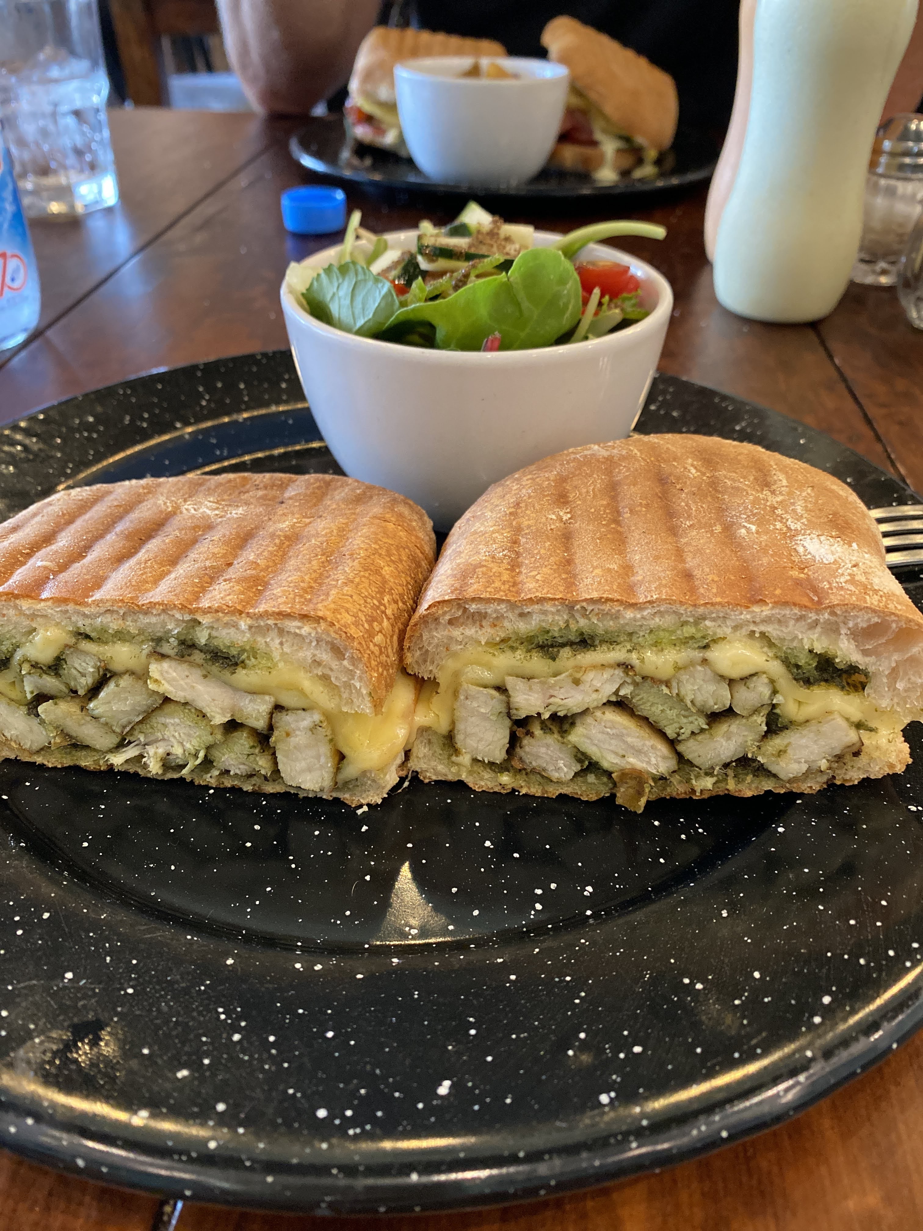 We went to Panino for lunch. The only time we had been there, I had had a pesto chicken sandwich which had been delicious so I ordered it again. It wasn’t as good as before. I realized halfway through that they had not added the sundried tomatoes and the onion jam. So mean!