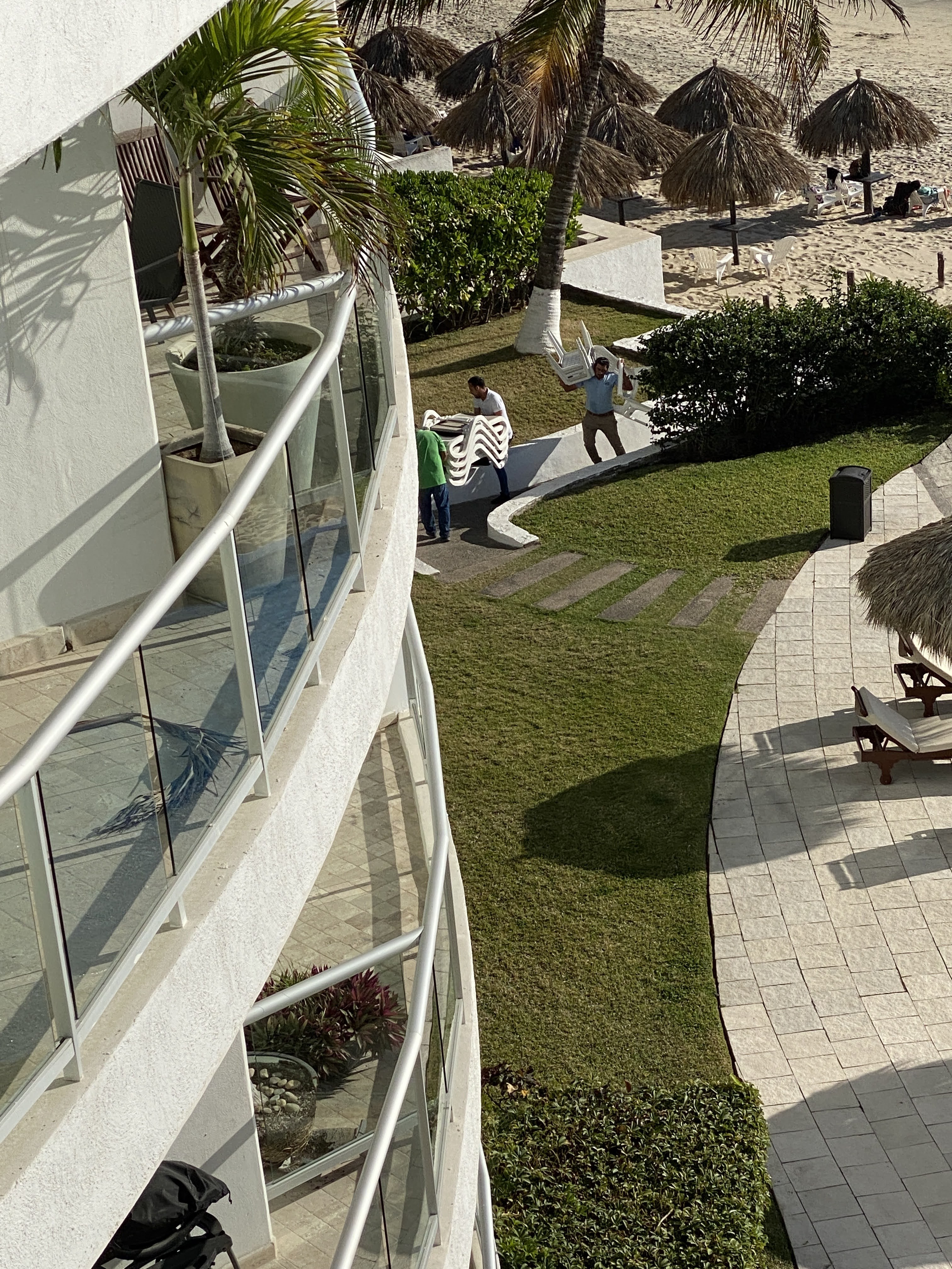 We went next door to La Gaviota for lunch. We noticed that Kites had removed the ropes from the fencing on the beach. Around 5pm they also brought all the chairs and lounge chairs to the grass area by the pool.
