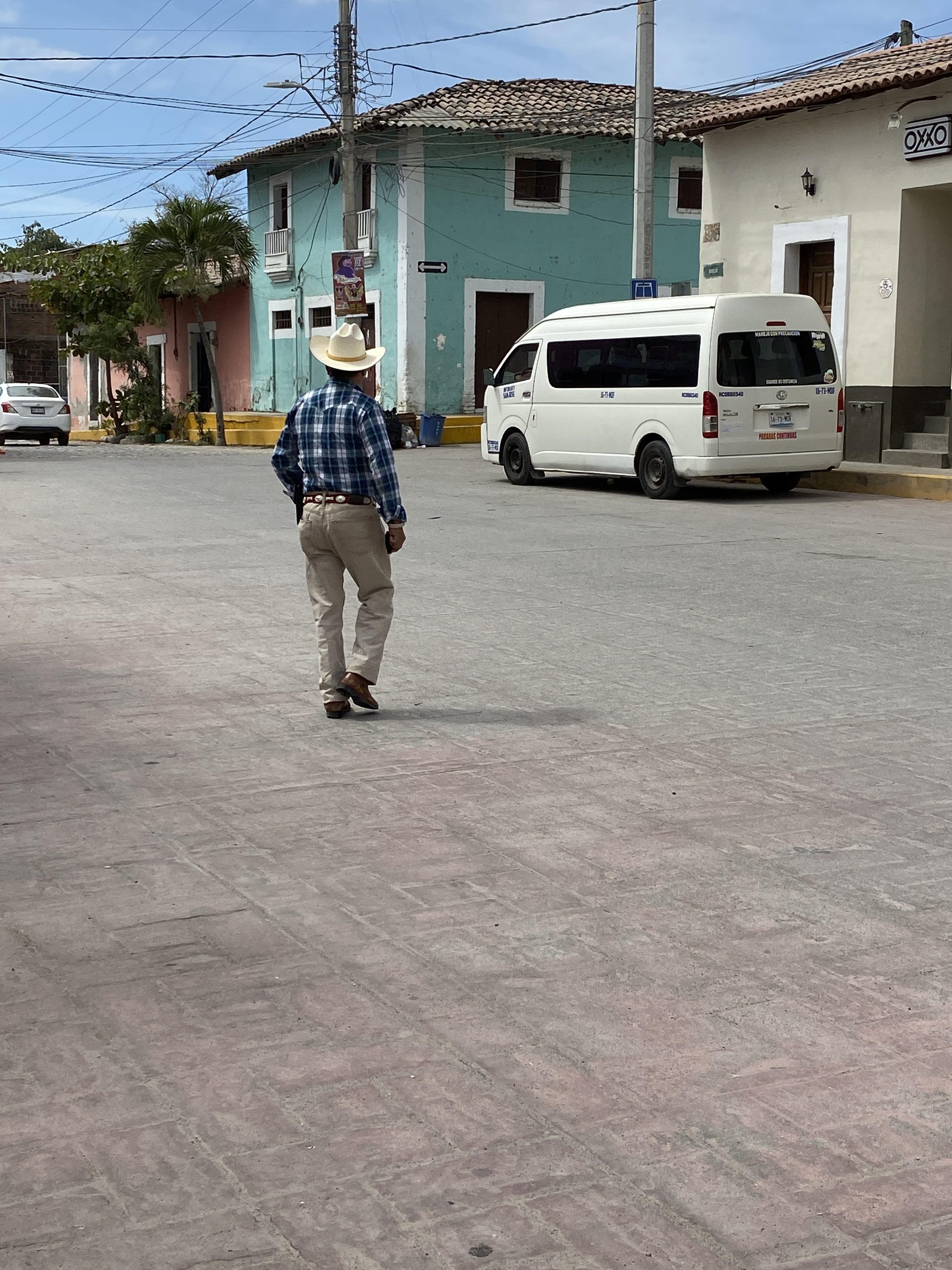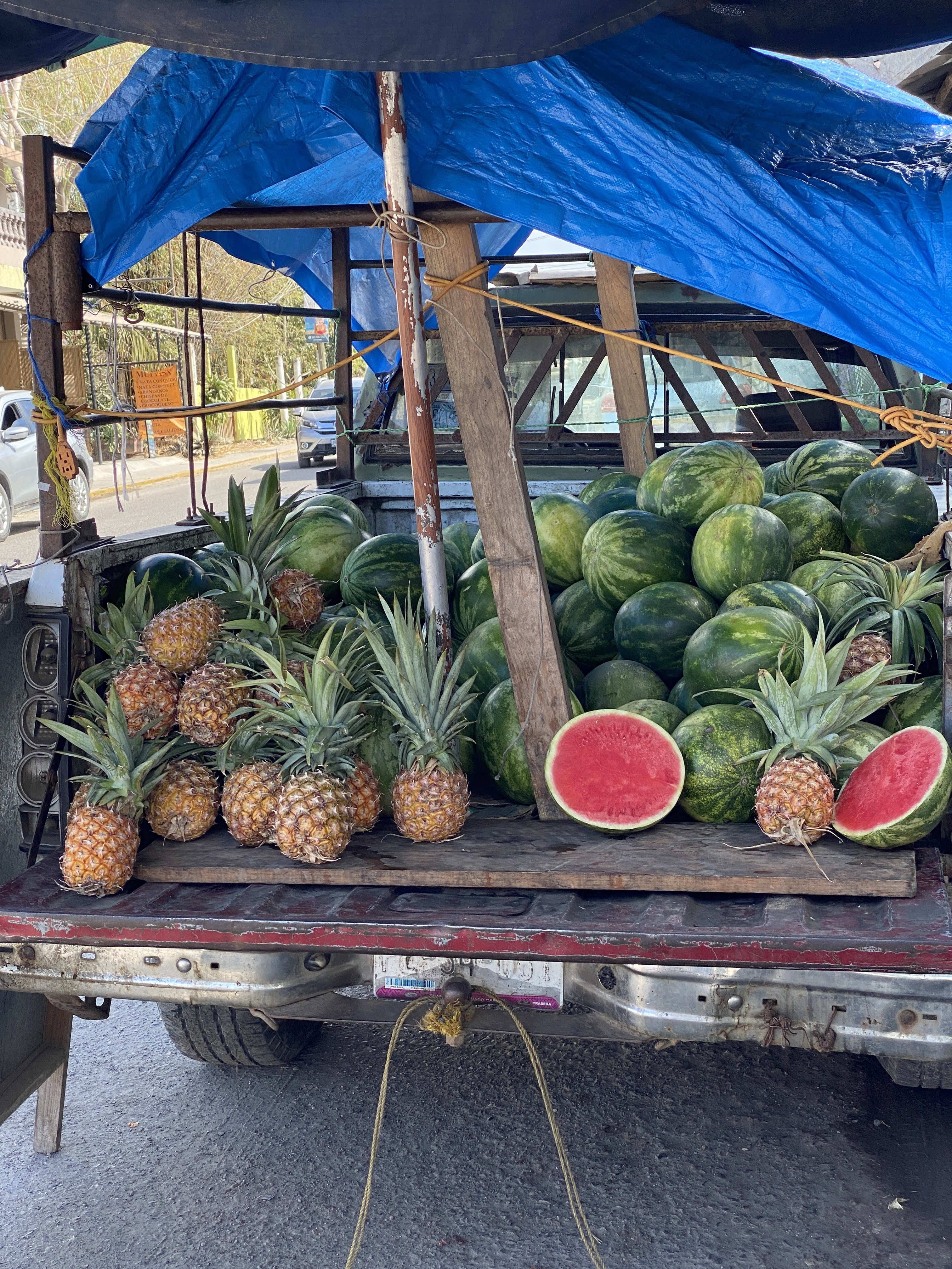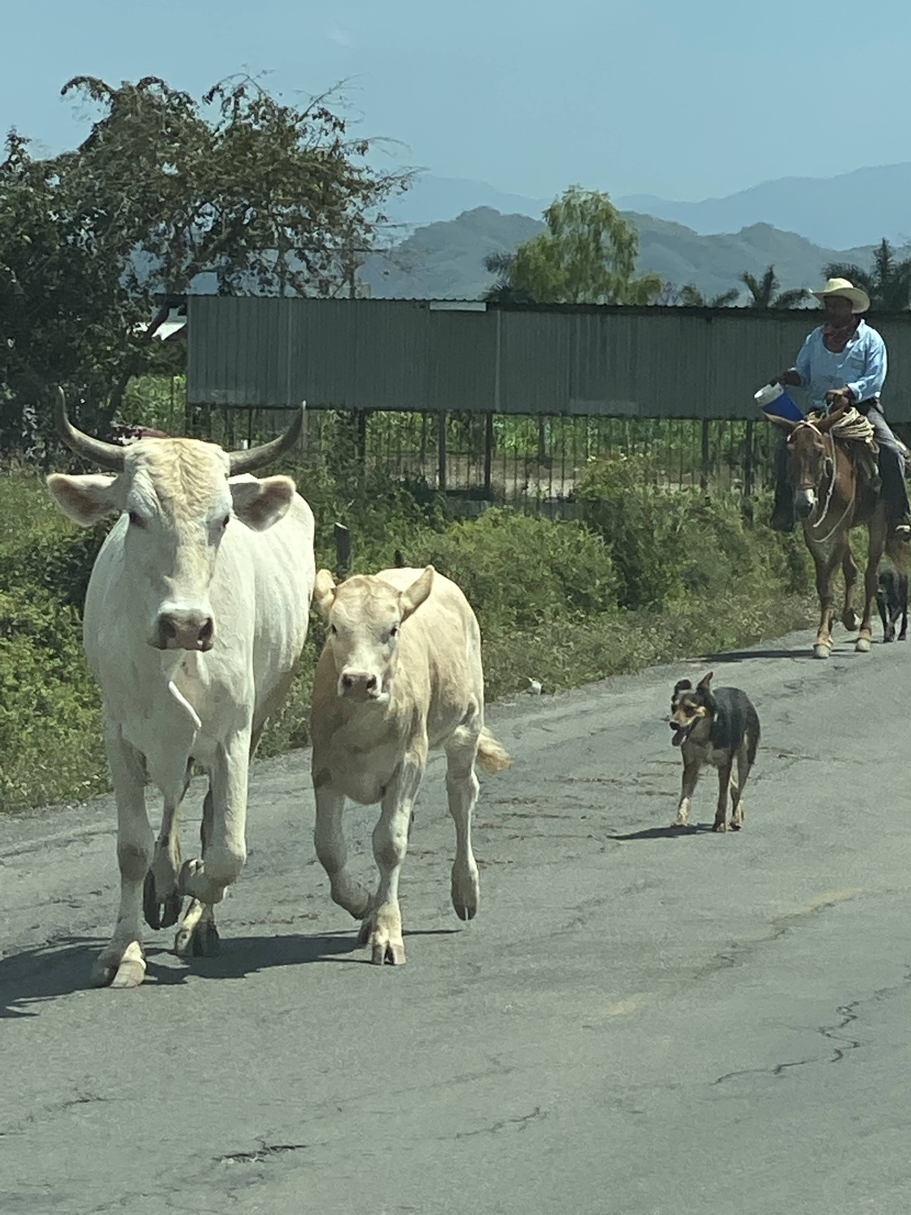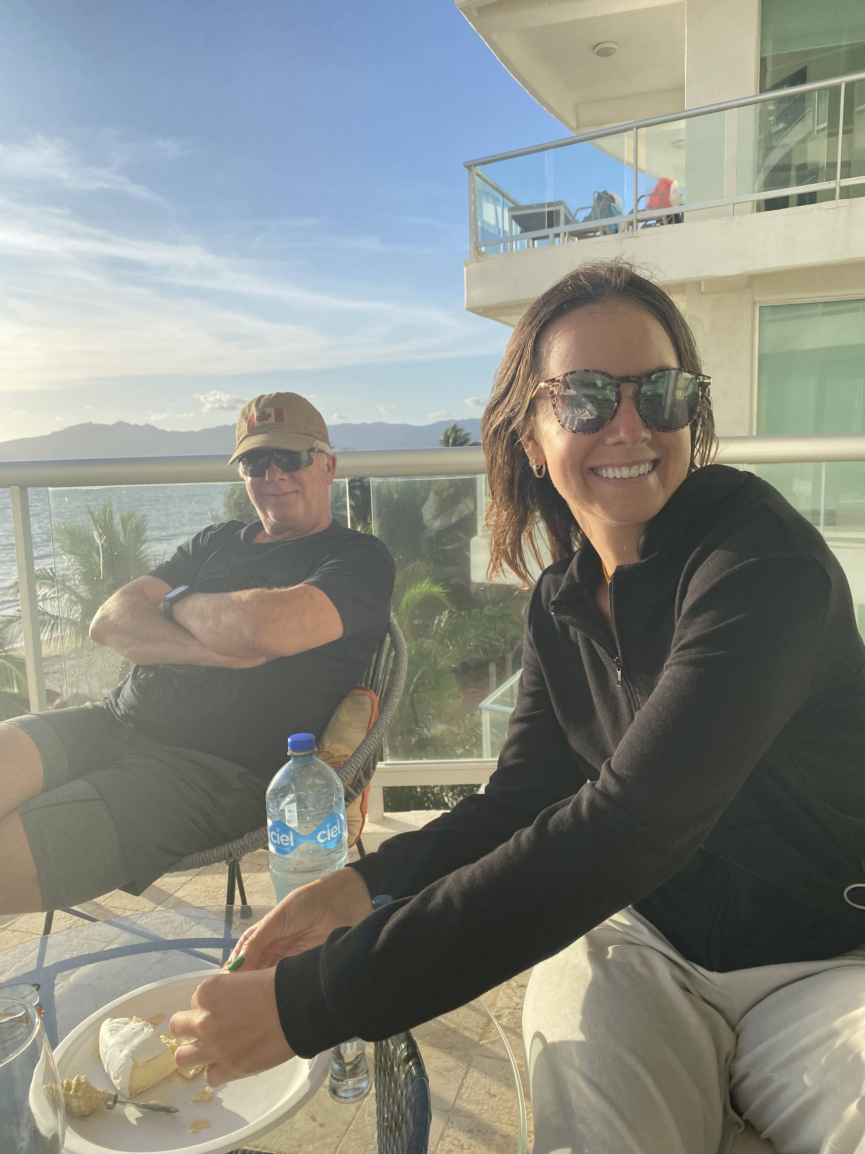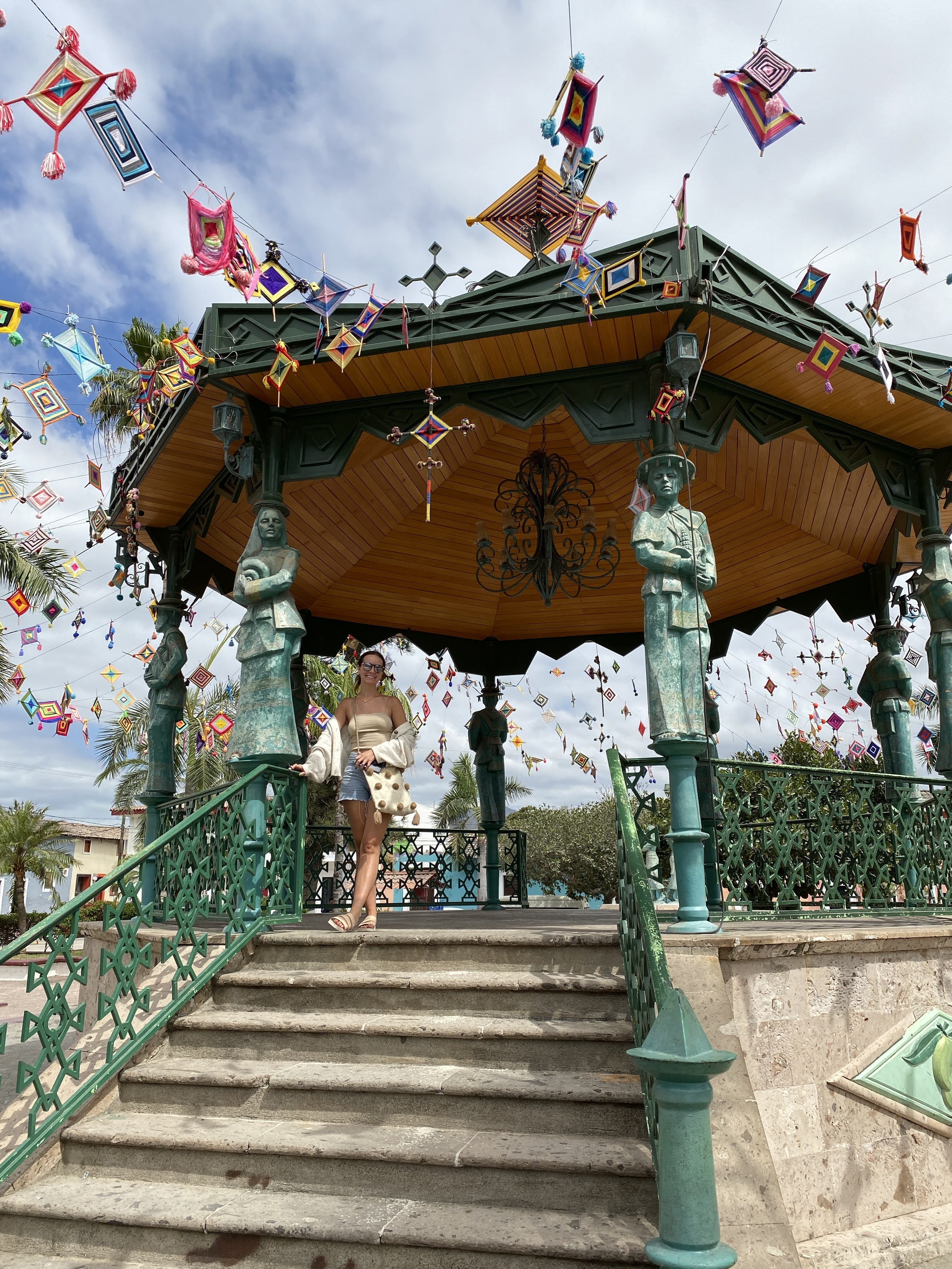 When Grumpy, I mean Max, was ready, we left to go for a drive on a pretty cloudy day. We found a little bakery in Bucerias and got almond croissants. We stopped in Valle de Banderas to take pictures and had carnitas sitting in the plaza.