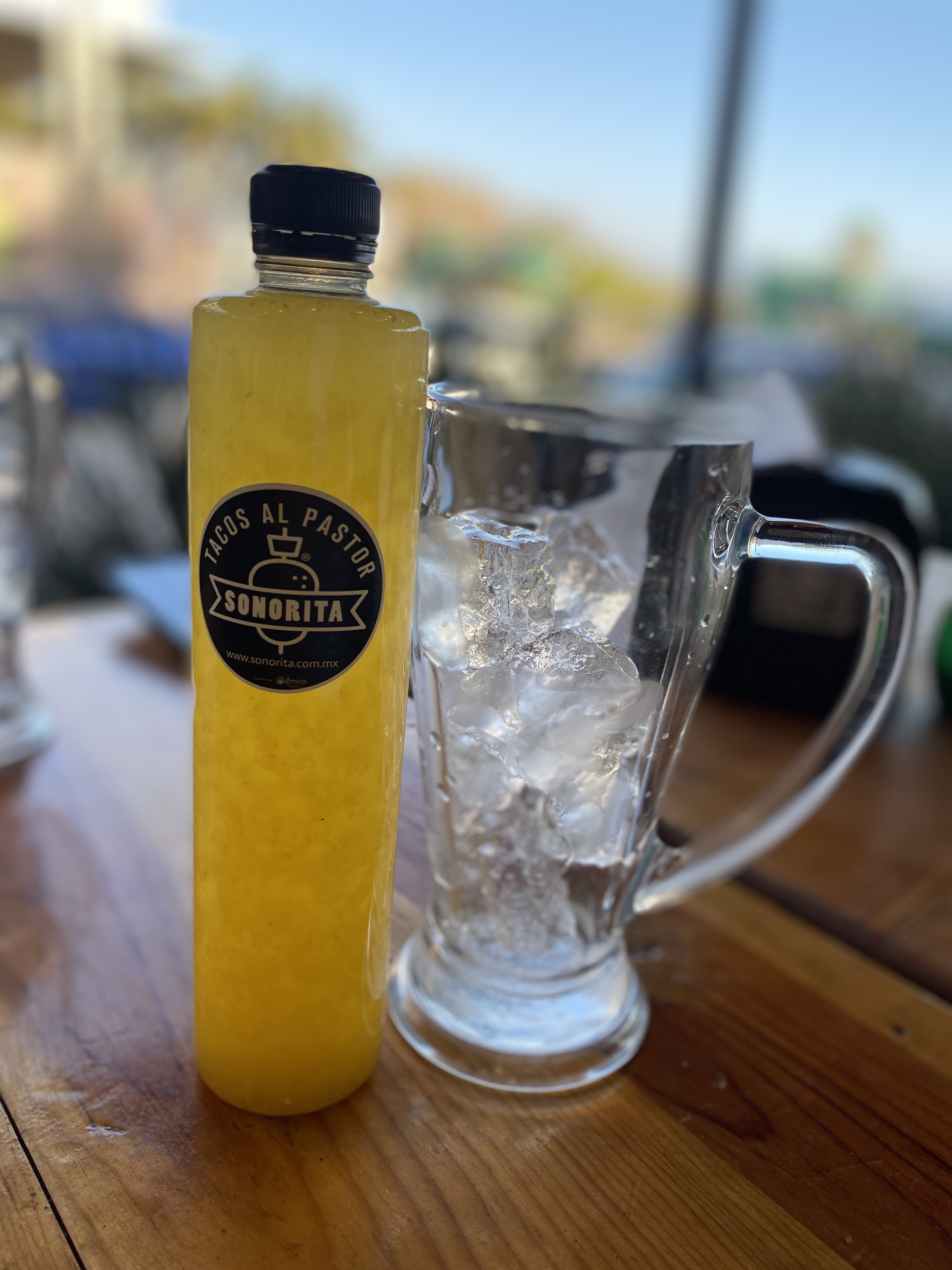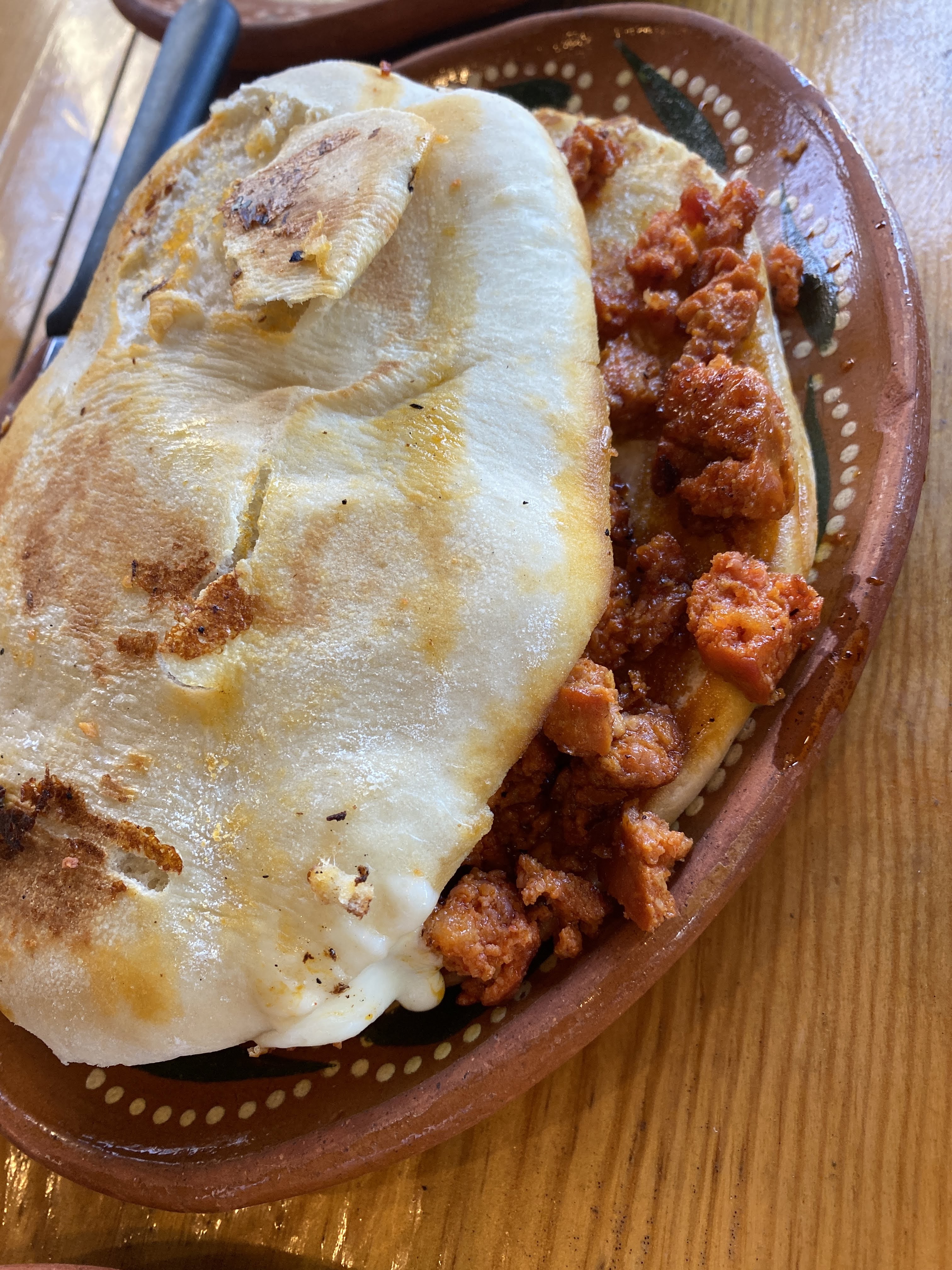 We went for dinner at La Sonorita Al Pastor for, you guessed it, Al Pastor tacos. They had not started warming up the meat on the vertical rotisserie so we decided to share a torta with chorizo while we were waiting. Now I bet we will find tortas all over the place. This one was actually really good. When the meat was done, they brought us our delicious tacos. The whole time we were there, we had a cat begging for food and attention. It kept rolling around our ankles and even sat on the empty chair at our table. The waiter sprayed him with water a few time to shoo him away but he always came back.