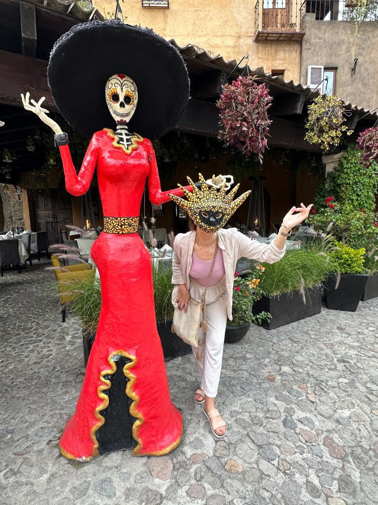 Next we went to a gallery where they had talavera pottery and tiles. Max thought we would be able to see artists working in their studios but no such luck. At some point I asked the price of a beautiful vase and it was only $6000 US…no thanks. 5 minutes walk from there, we arrived at the Ancho Reyes distillery, a favorite liquor of Max. Unfortunately because of COVID, they told us that they were not doing tours anymore. It would have been nice if they had mentioned that on their website. We took an Uber back to our car and drove back to a store we had seen the day before. I bought Max and I cute little talavera calavera (skeleton) statue.