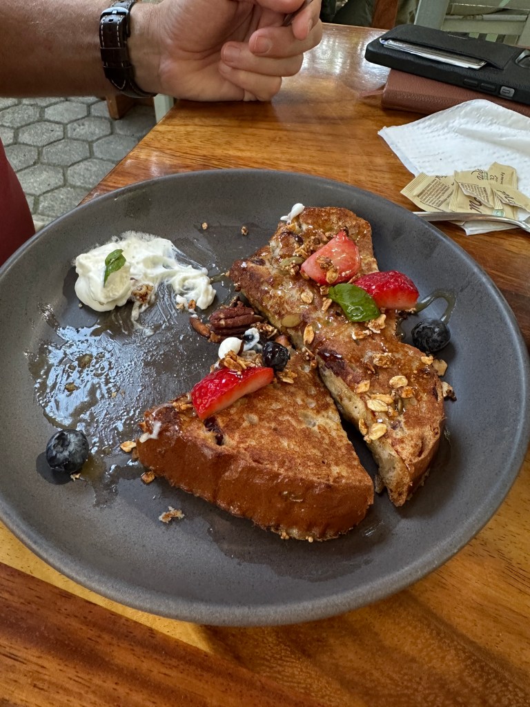 I spent part of the morning writing yesterday’s blog then Pogo and I went for breakfast. Max had not slept well so she caught up on sleep.  We went back to Chepiche café. Pogo had French toasts and I had avocado toasts.