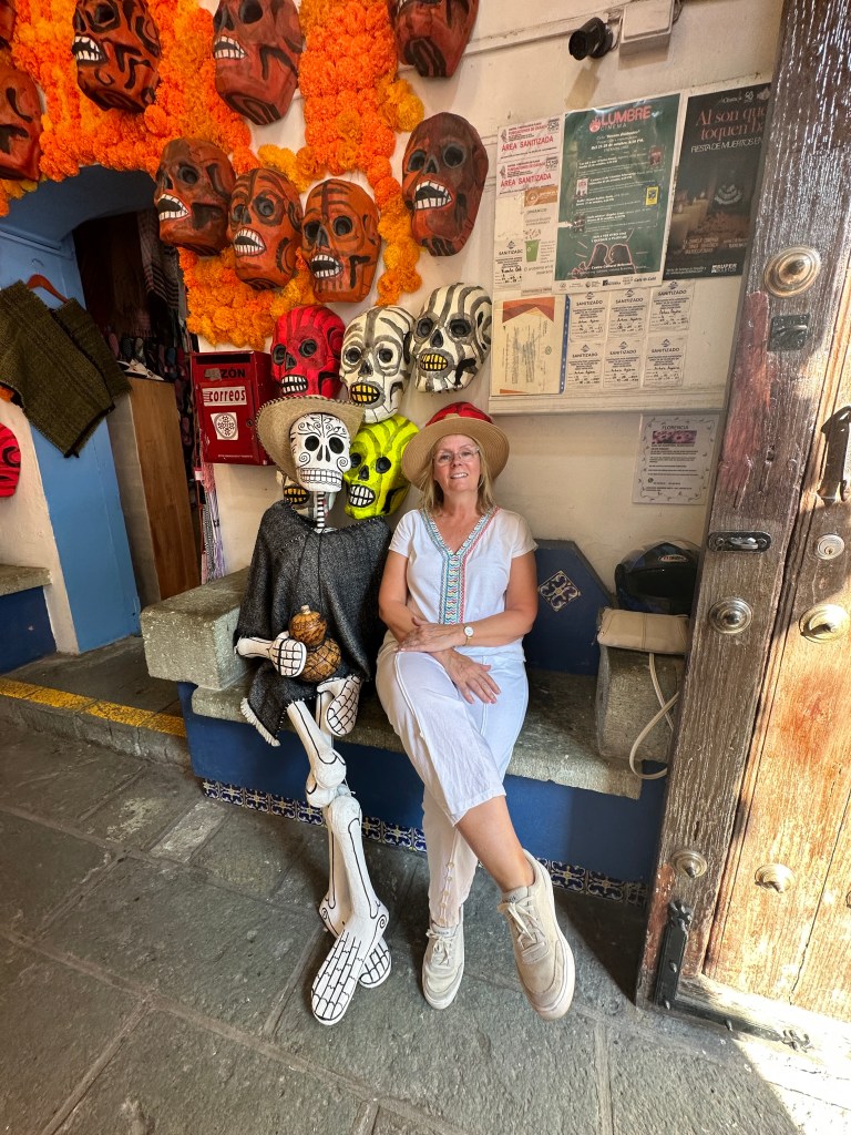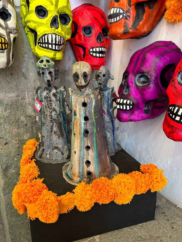 We went back to the house to pick Max up and we walked downtown to do a little shopping. She bought a few tops and a beautiful bag. Everywhere I looked was picture perfect! Marigolds (cempasuchil) and Catrinas were everywhere!  Max is so obsessed with Tiliches that I am becoming as well.  I  bought us both a little statue of one and got gorgeous Tiliches earrings for Max.