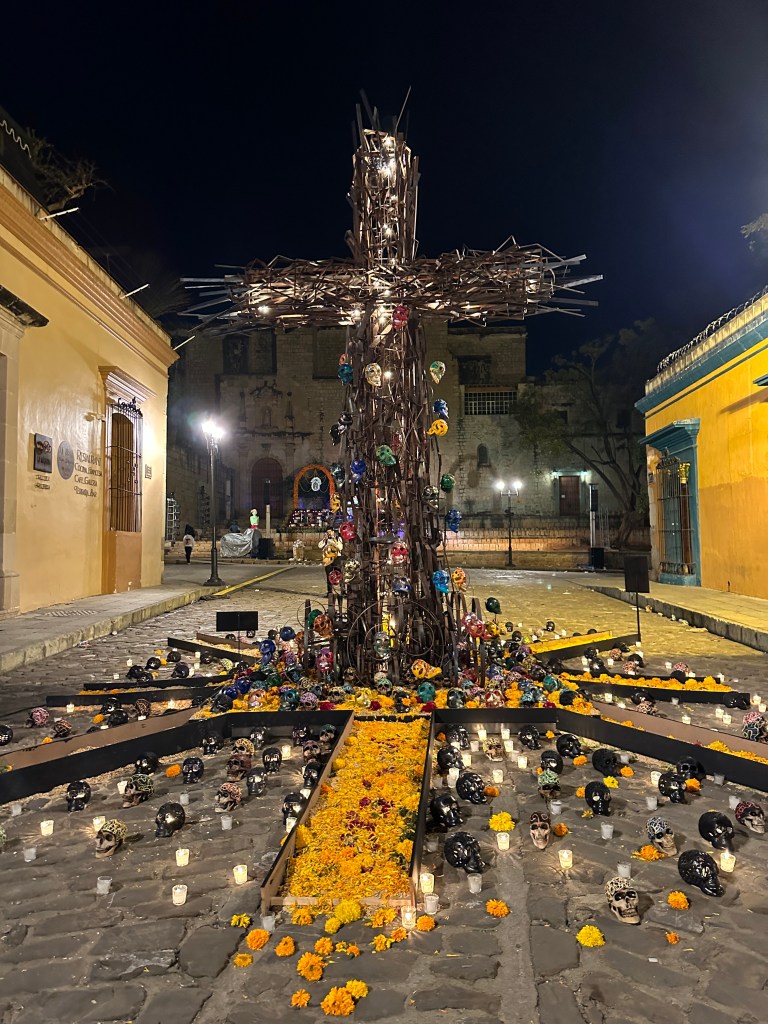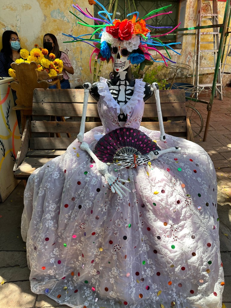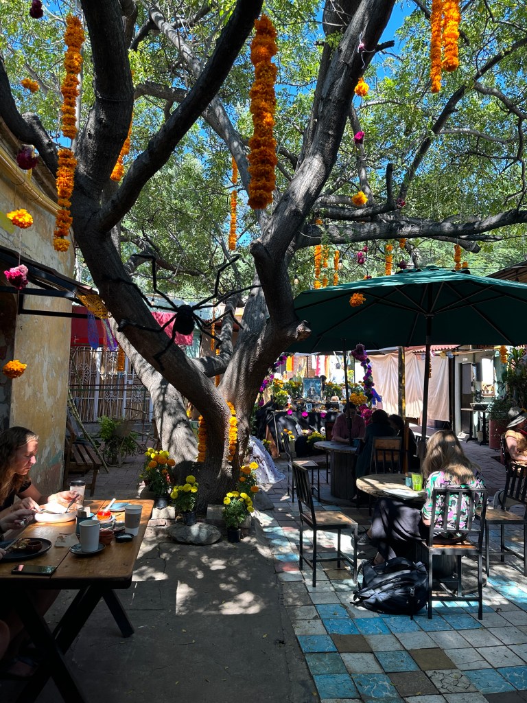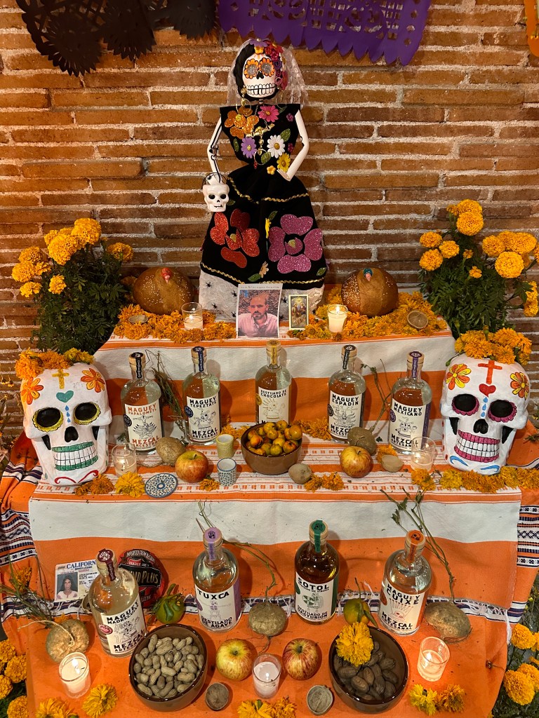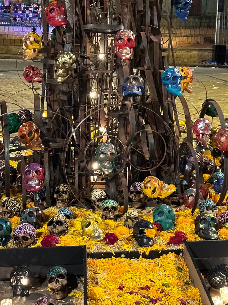 After that, we had a mezcal and mole tasting about 20 minutes by car from our place, in a new section of town but at the end of a dark alley. Someone came to open the gate and we walked up to the 2nd floor of an unfinished building. Once inside, the venue was really nice. We tasted 7 mezcals and 7 moles. I really love all the moles and we bought our 2 favorites to bring home. We thought it was a dinner but since it wasn’t, we stopped at a fair on the way to visit a cemetery, and had memelas. The cemetery was closed so we went to another one further out of town.