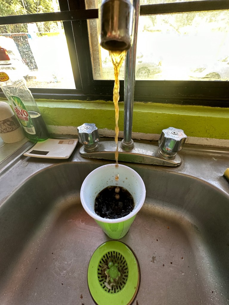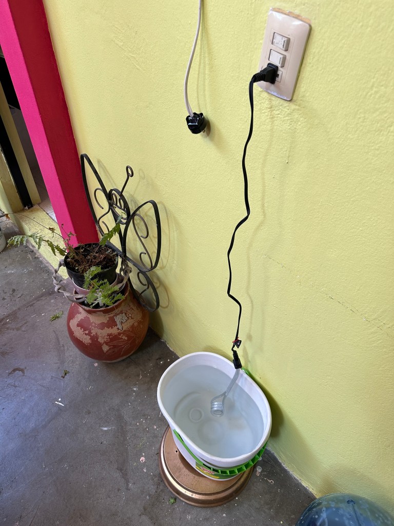 We came back to the house at 12:30pm and we still had no water!! They arrived at 2:30pm to make sure there was indeed no water in the tank…we already had told the owner. The water trunk arrived at 3pm. One guy on the rooftop had to pull the hose from the other guy standing on top of the truck. They finally filled the tank but the pressure of the water being dropped in, disturbed the sediment at the bottom, at least we assumed, so dark brown water started coming out of the tap. What the freaking heck! Max and Hernan went to get big jugs of water and a water heater so we could wash ourselves. What an ordeal. Pogo and I were thinking of getting an hotel for our last few nights. Max was told by the evil owner ( I have a few other choice words I would call her but I wouldn’t want to hurt anyone’s feeling Mom!) that by tomorrow the water should be clear and that they will come to install a filter but at this point, it’s probably another lie. A plumber came to look in the tank and he said it was disgusting and that the tank should be cleaned up before putting a filter. At least we can flush the toilets. The taps from all sinks are blocked, probably from the sediment.
