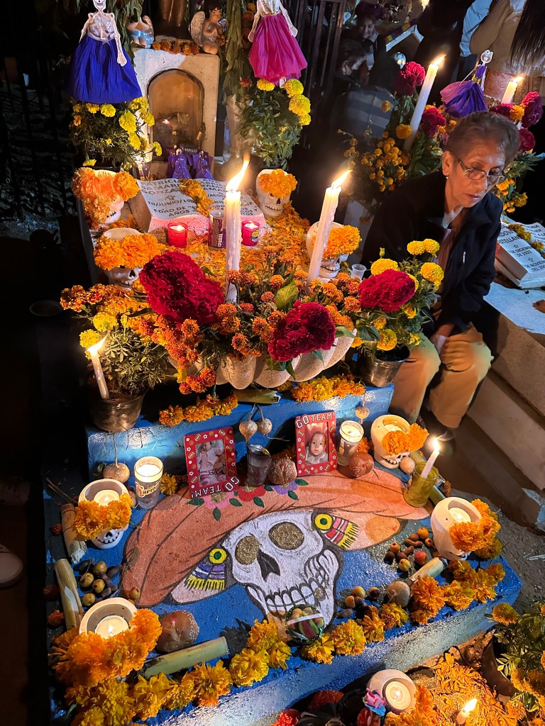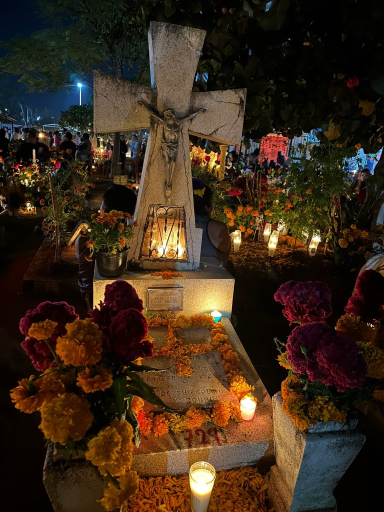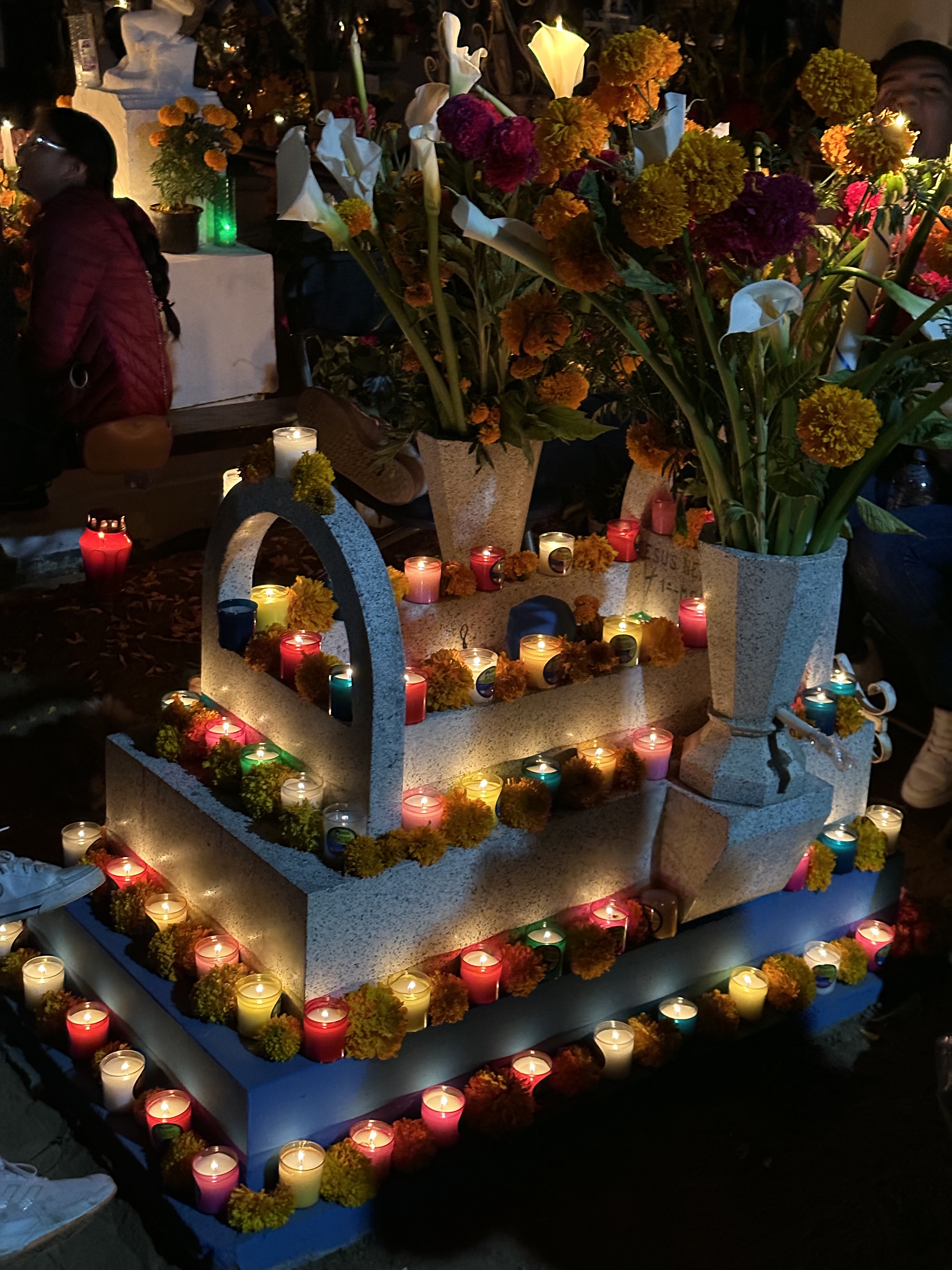 The place was so busy! There were buses full of people parked everywhere. The cemetery was so crowded, you could hardly walk. It felt so intrusive going around people sitting at the site of their deceased family members. I guess they are used to it and apparently it brings good money for the community with all the stalls of food and other stuff all over the streets. It was also very beautiful with all the flowers and the candles.