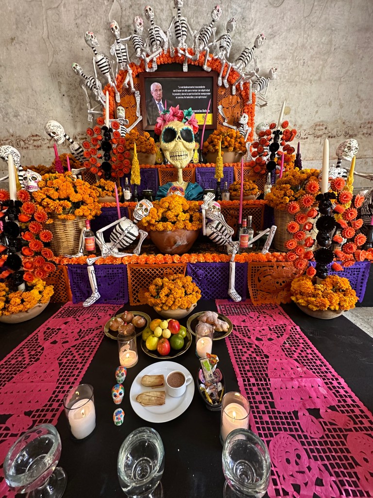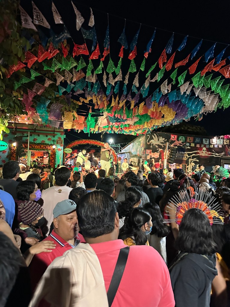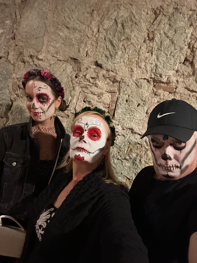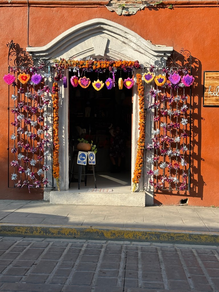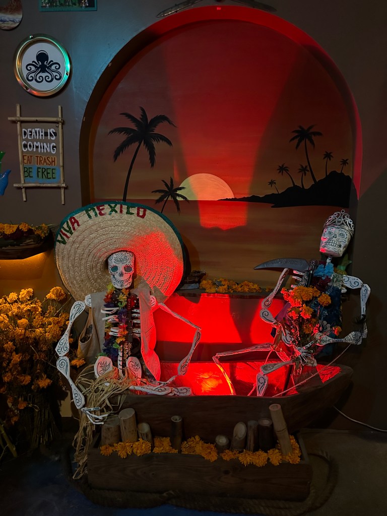 We went to get a bite to eat and shared tacos and queso fundido. We walked around town to see more decorations and the streets were full of pop up makeup stands. We had decided to have our face painted and since our hotel was offering it, we had made appointments for 5:30pm. I had started to have a cough and had to constantly drink water to avoid coughing while doing my makeup.