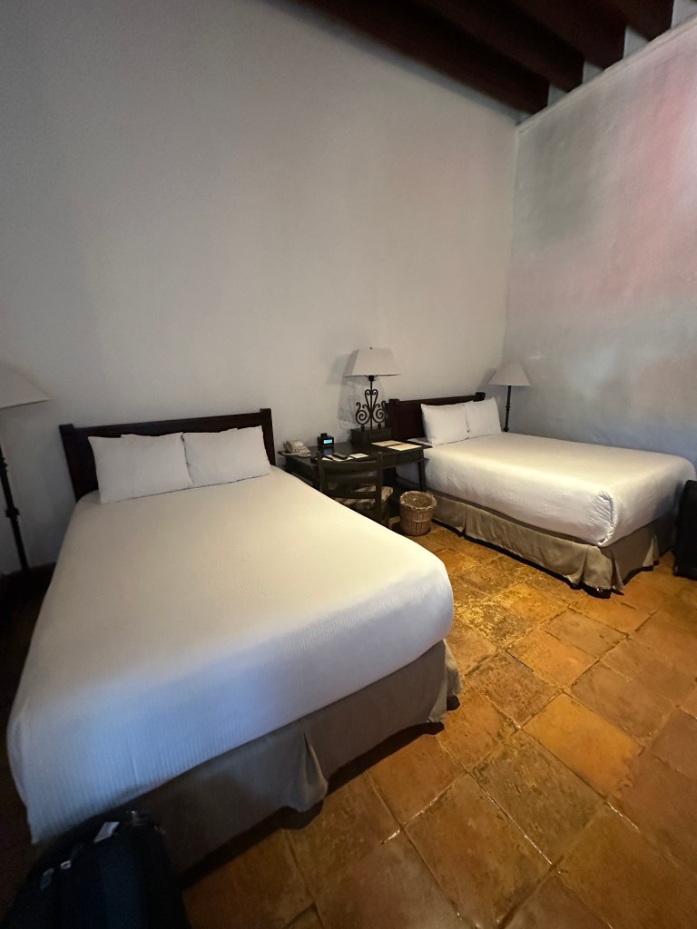 Meanwhile, Pogo and I had decided to move to an hotel for our last 3 nights so we packed all our stuff. We arrived at the Quinta Real around 2:30pm. It is quite a beautiful old hotel right in Centro, with a beautiful courtyard and even a pool. The room was stark looking but the shower worked great!