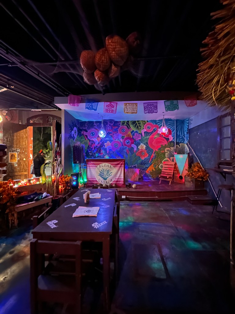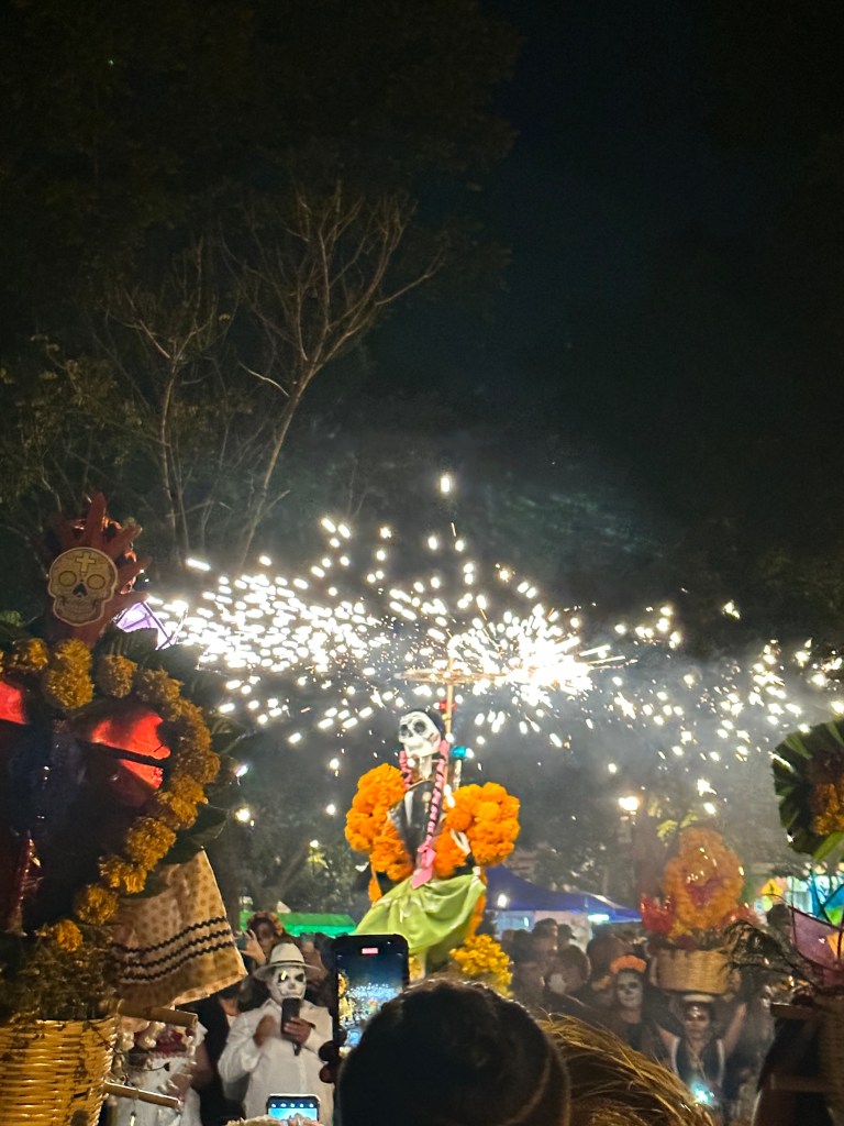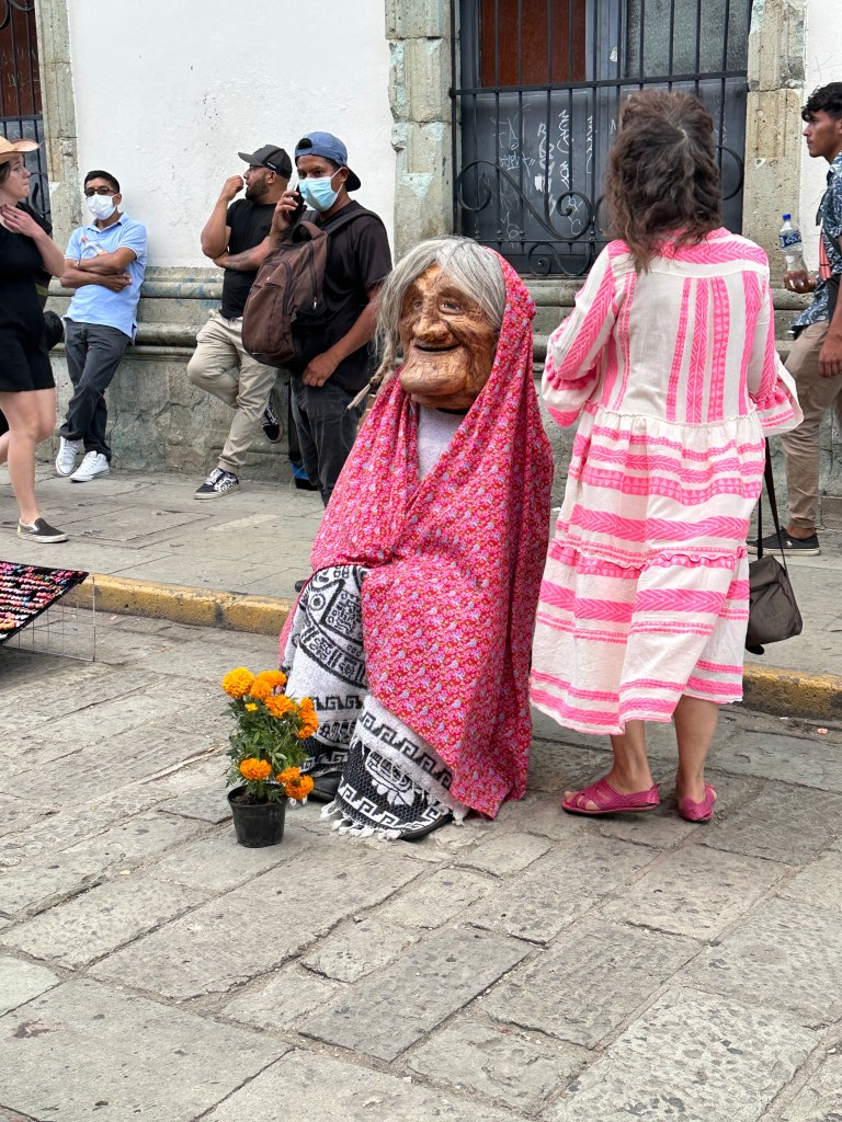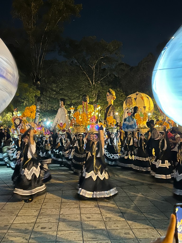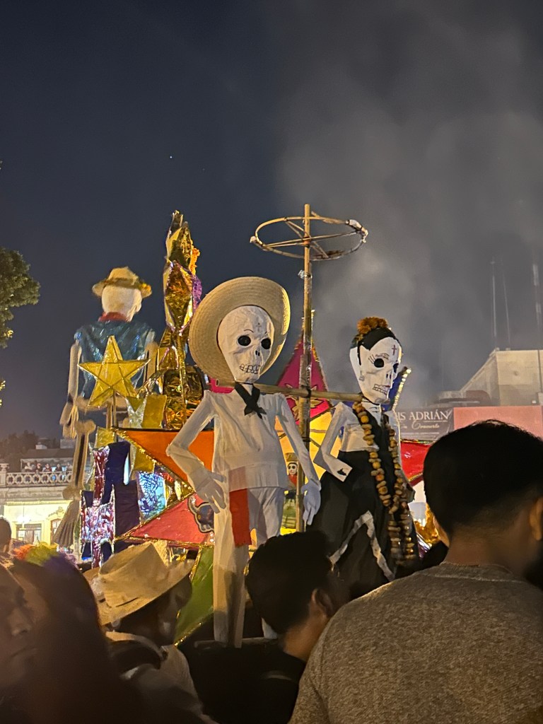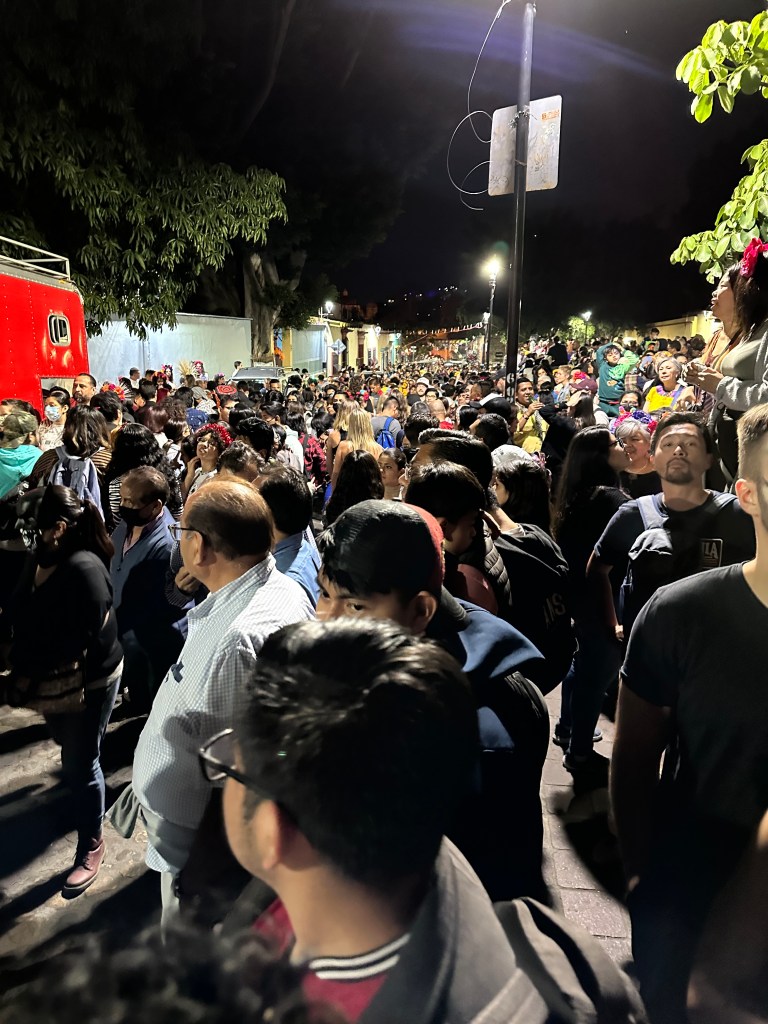 When we were ready, we walked to Jalatlaco to see a parade. It wasn’t going to start for another 30 minutes and the streets were so crowded with people and we were all thinking of what had happened in South Korea so we decided to leave the craziness to try to catch it somewhere less busy. We ended up at a little outdoor restaurant and had a burger. It wasn’t very good so I didn’t eat much. The parade wasn’t great or at least what we saw of it. We walked to the park and found another celebration that was way more fun with a lot less people.